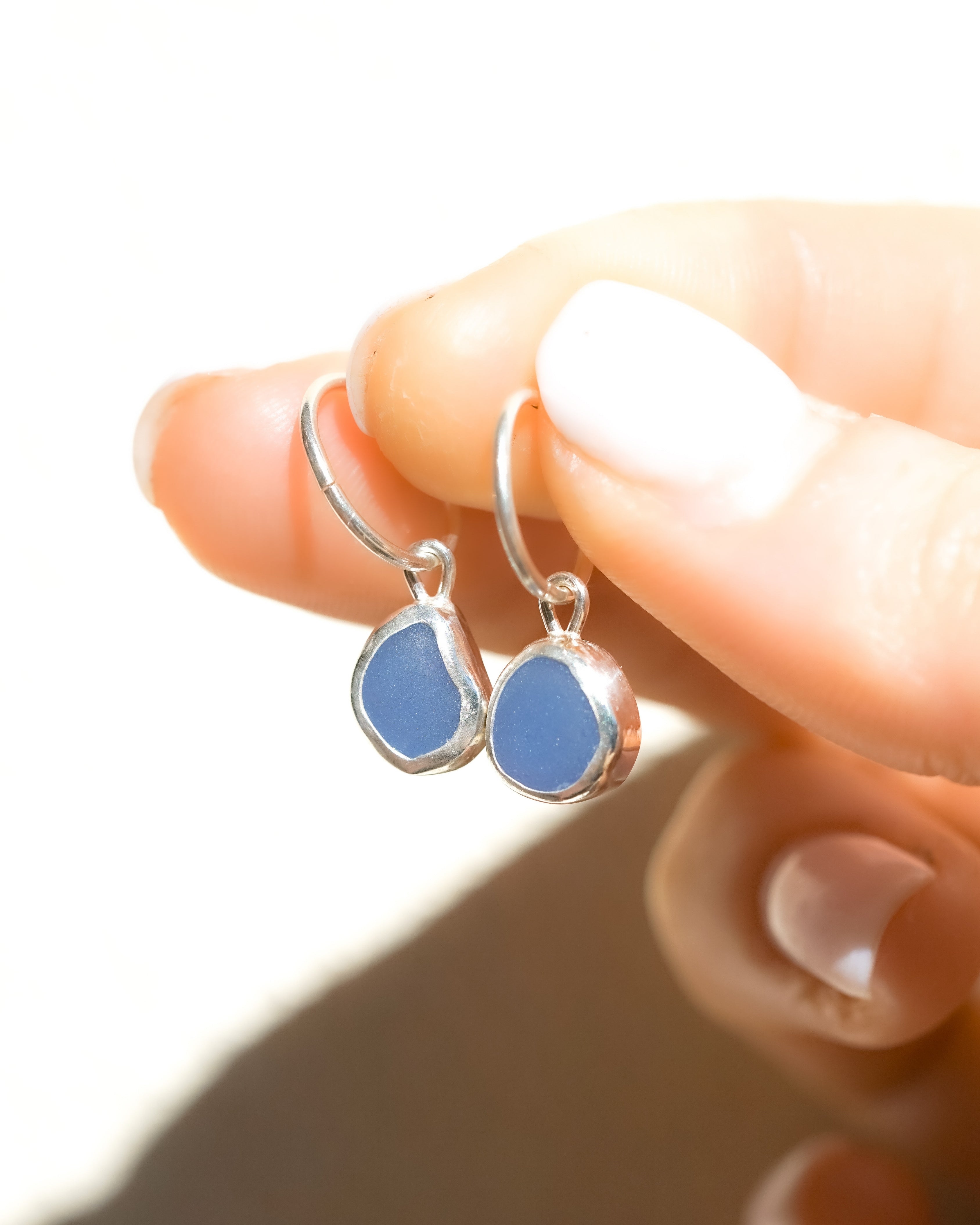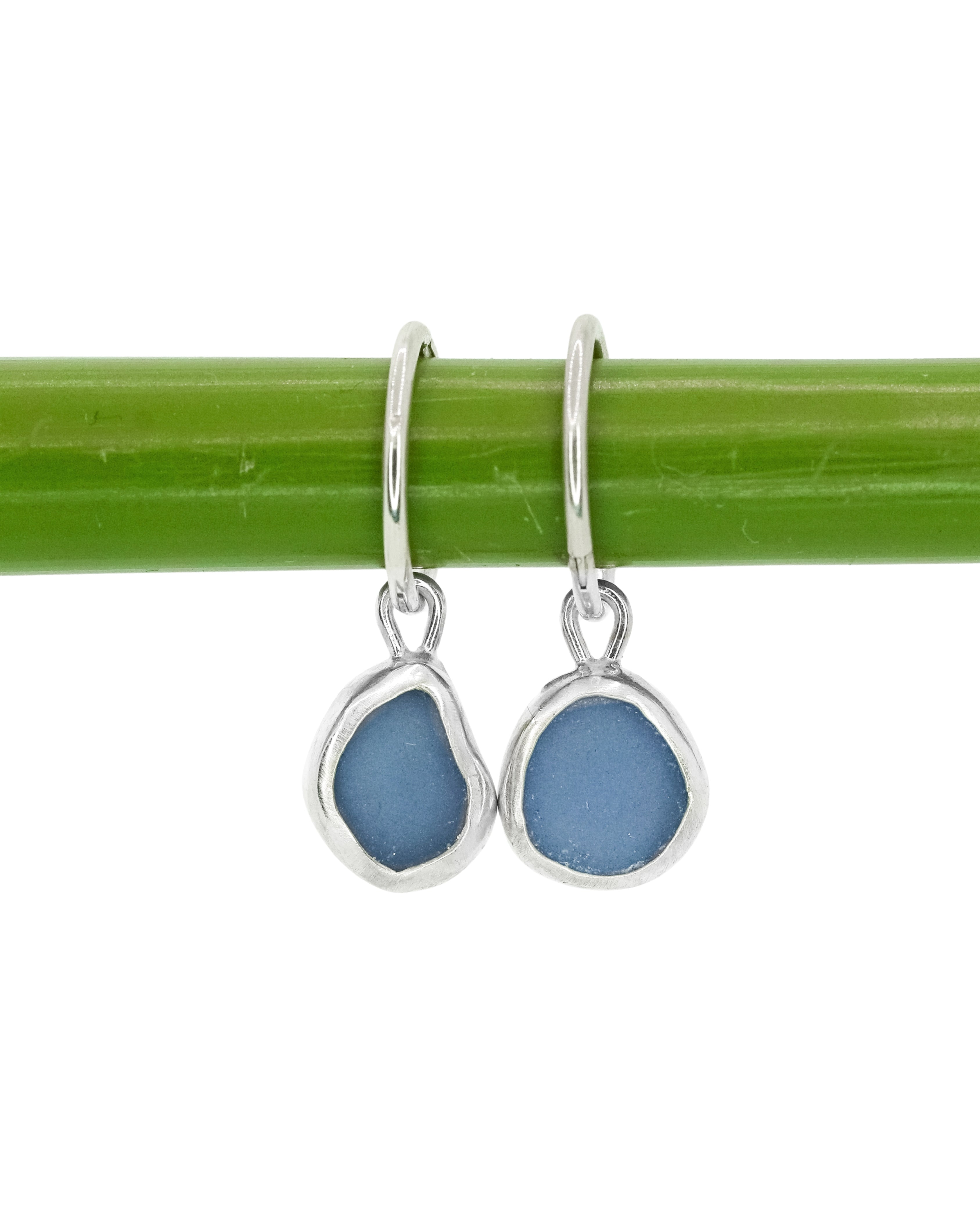 Blue Sea Glass Hoops - Handmade from 925 sterling silver