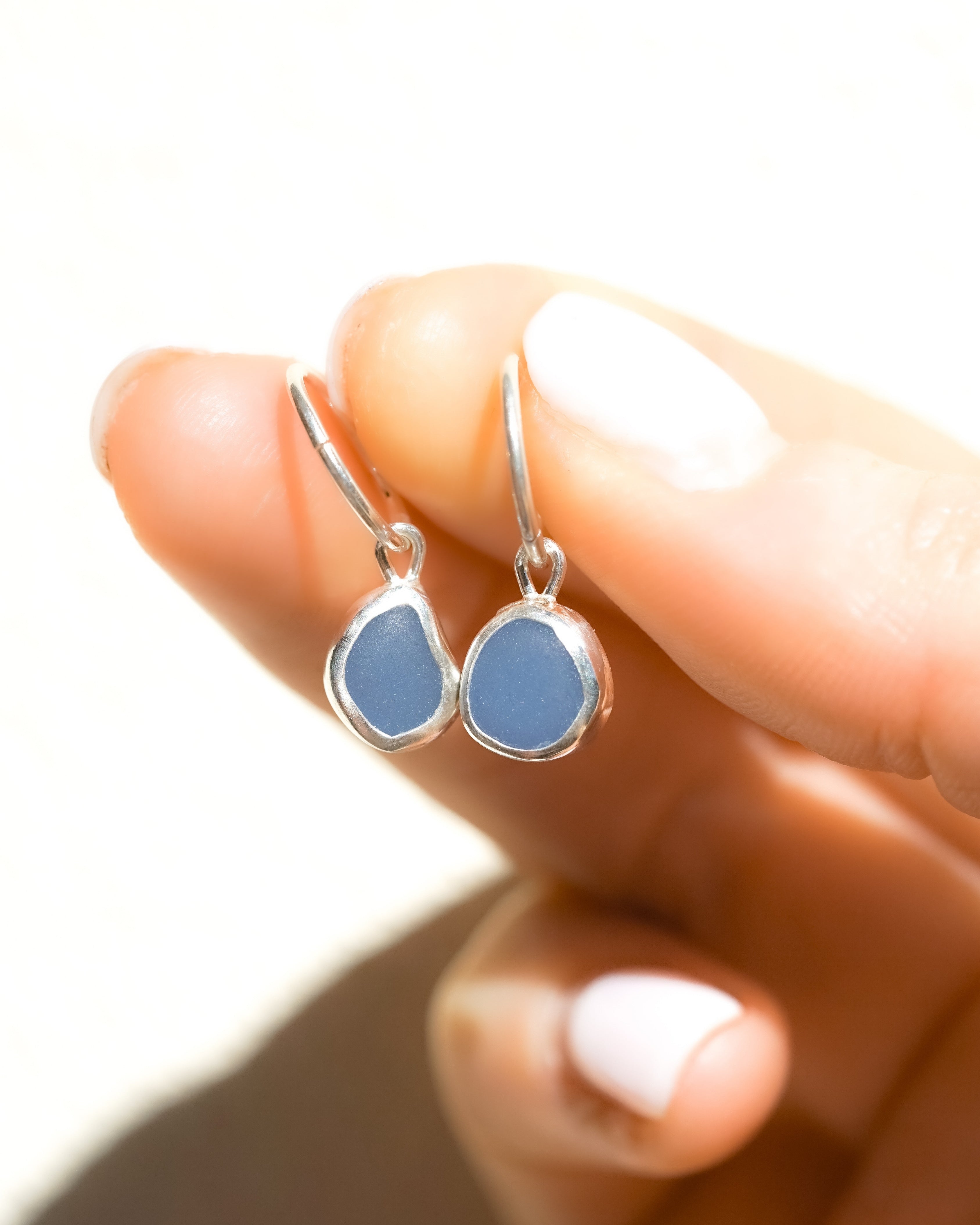 Sea Glass Jewellery (Closed Back Designs) - Closed back sea glass pieces should be kept out of water whenever possible. As the glass is transparent, moisture may affect the colouring due to the silver underneath, mainly the lighter shades. To help preserve their beauty, we recommend removing them before showering or swimming.