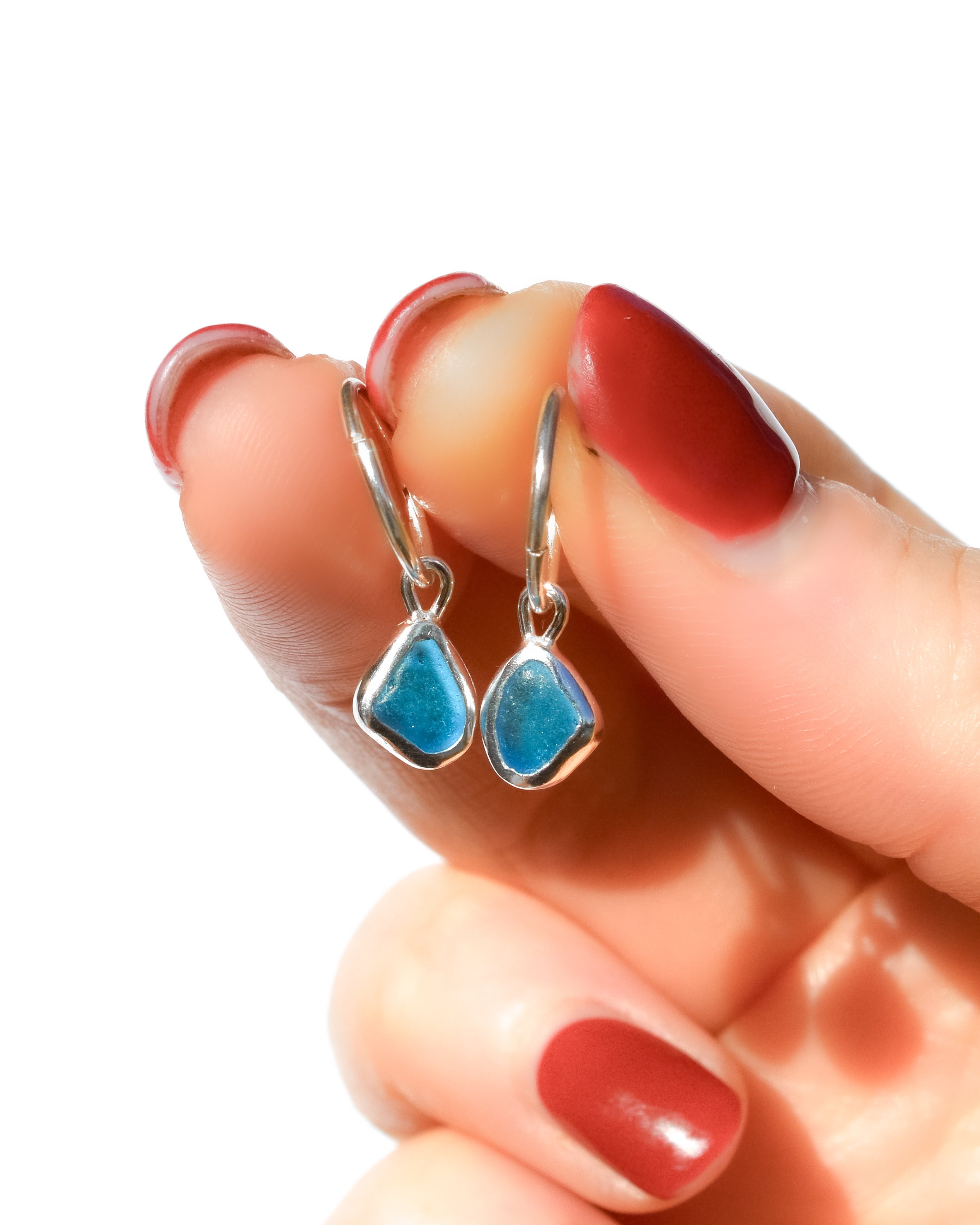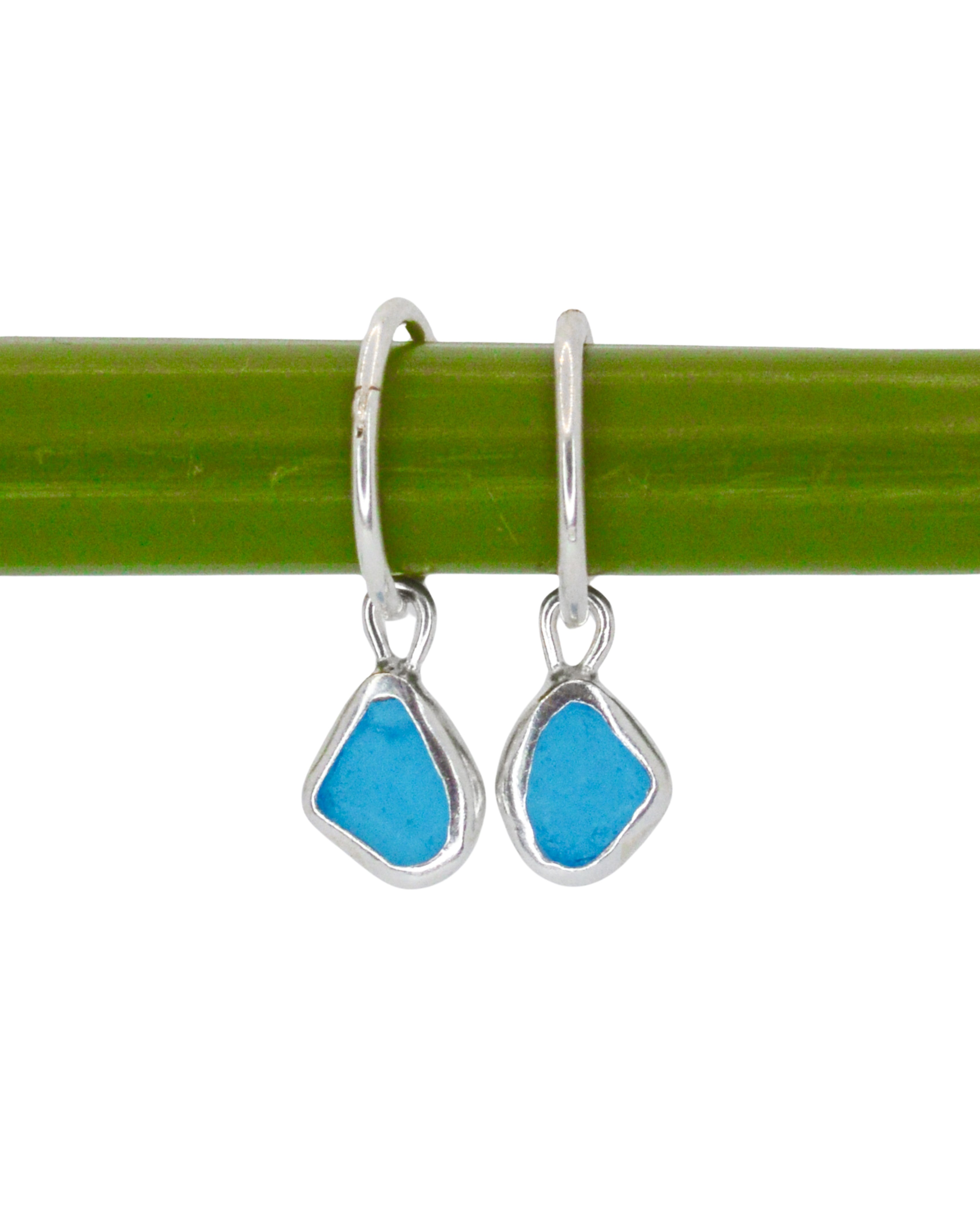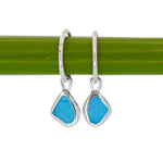 Blue Sea Glass Hoops - Handmade from 925 sterling silver