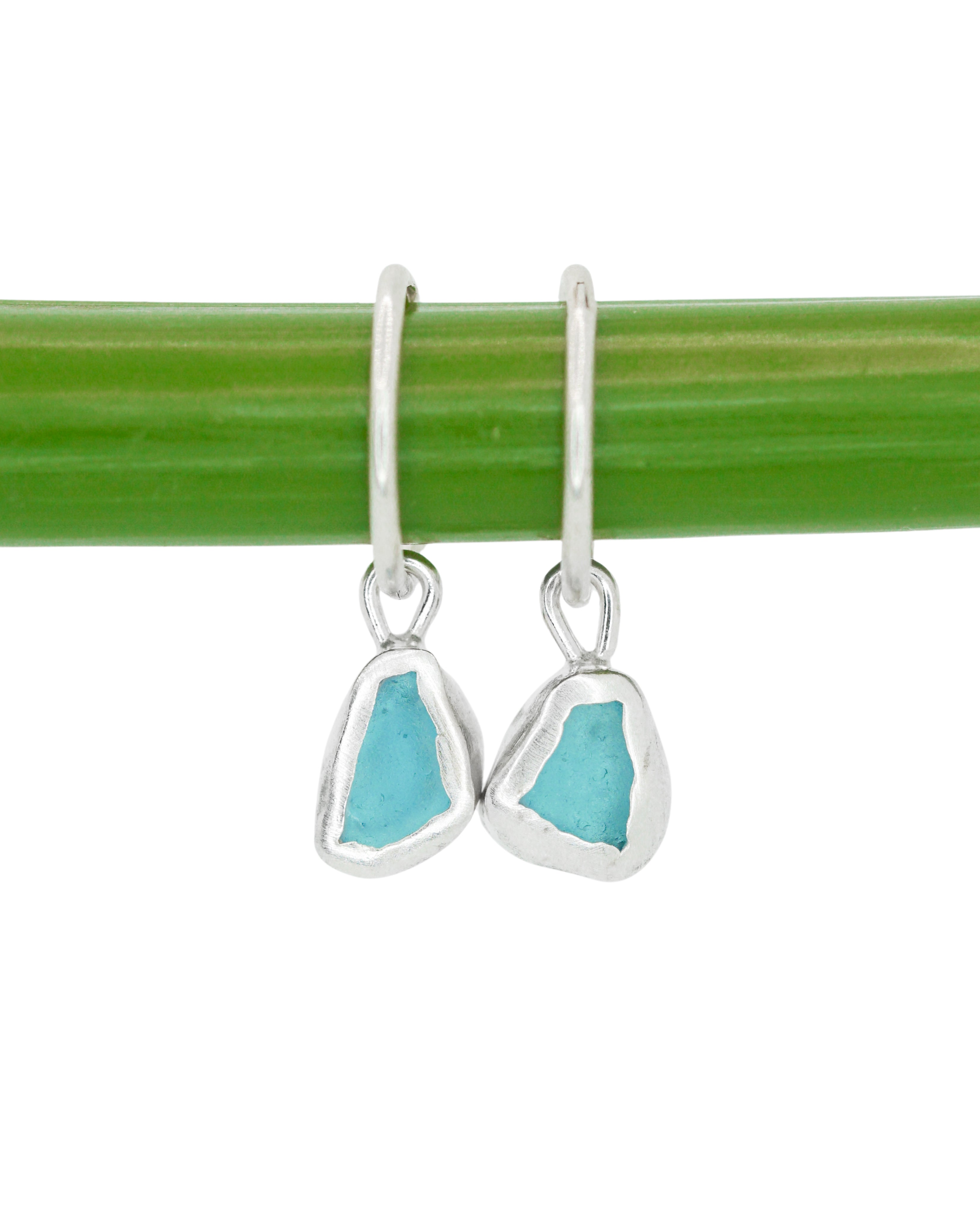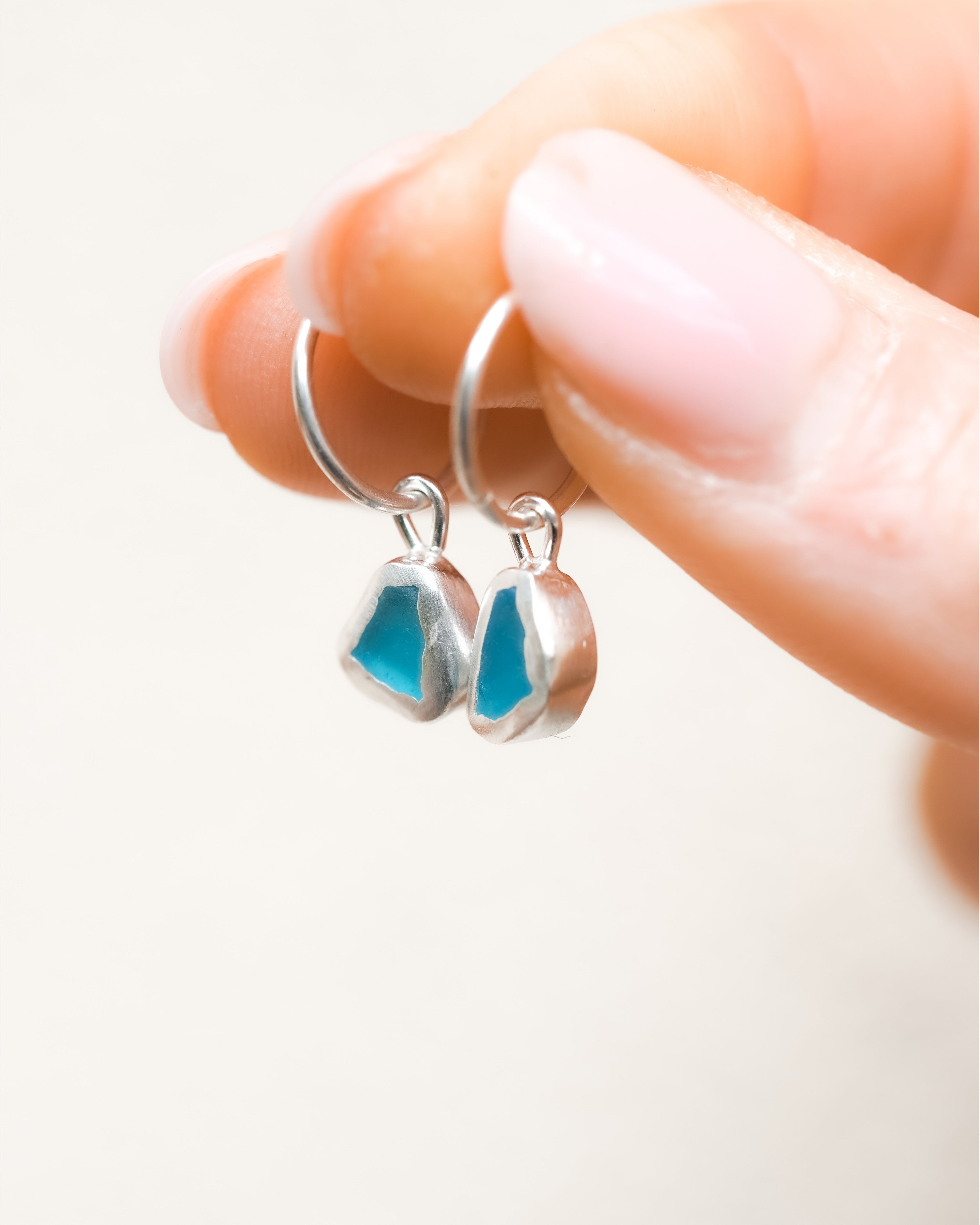 Blue Sea Glass Hoops - Handmade from 925 sterling silver