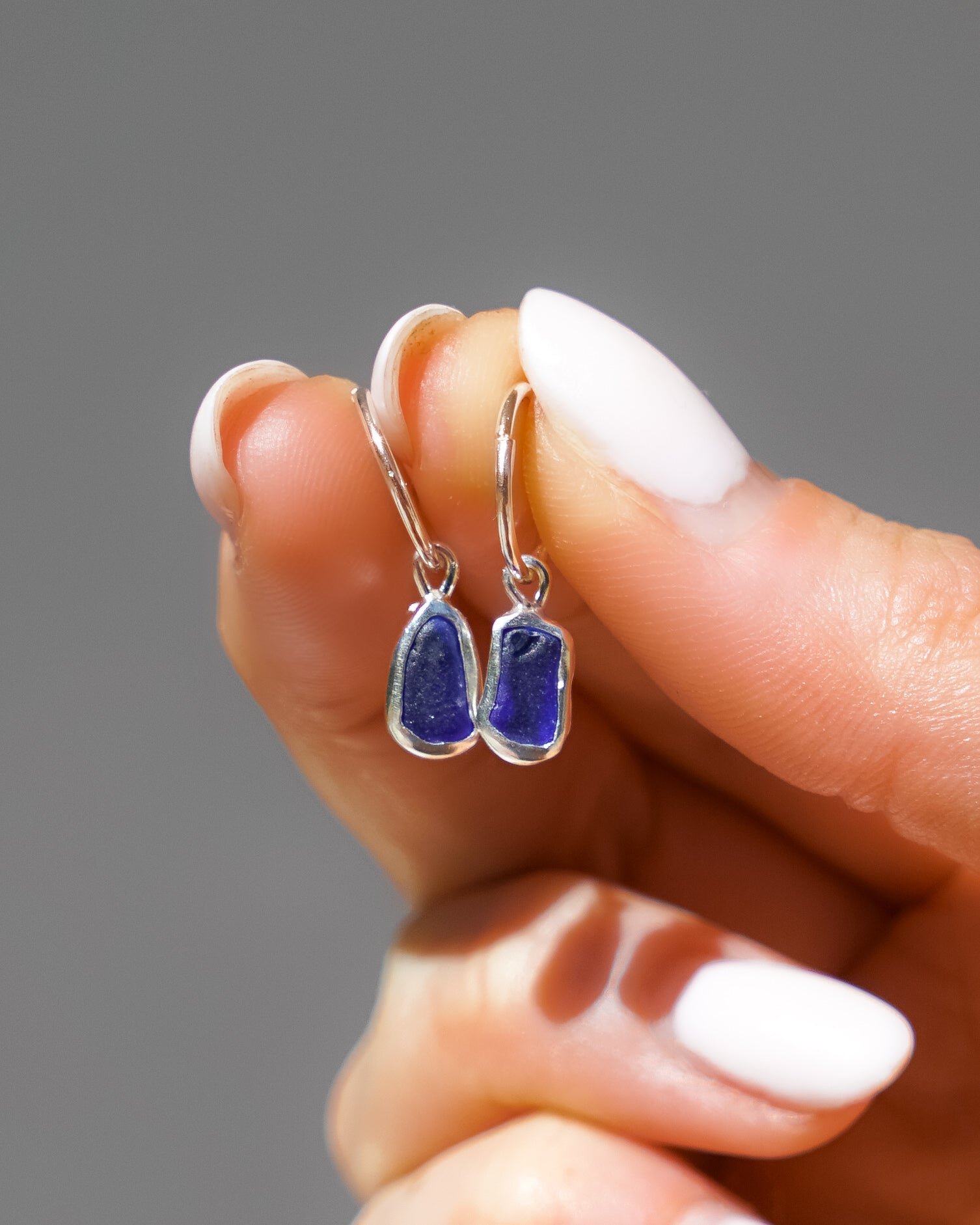 Sea Glass Jewellery (Closed Back Designs) - Closed back sea glass pieces should be kept out of water whenever possible. As the glass is transparent, moisture may affect the colouring due to the silver underneath, mainly the lighter shades. To help preserve their beauty, we recommend removing them before showering or swimming.