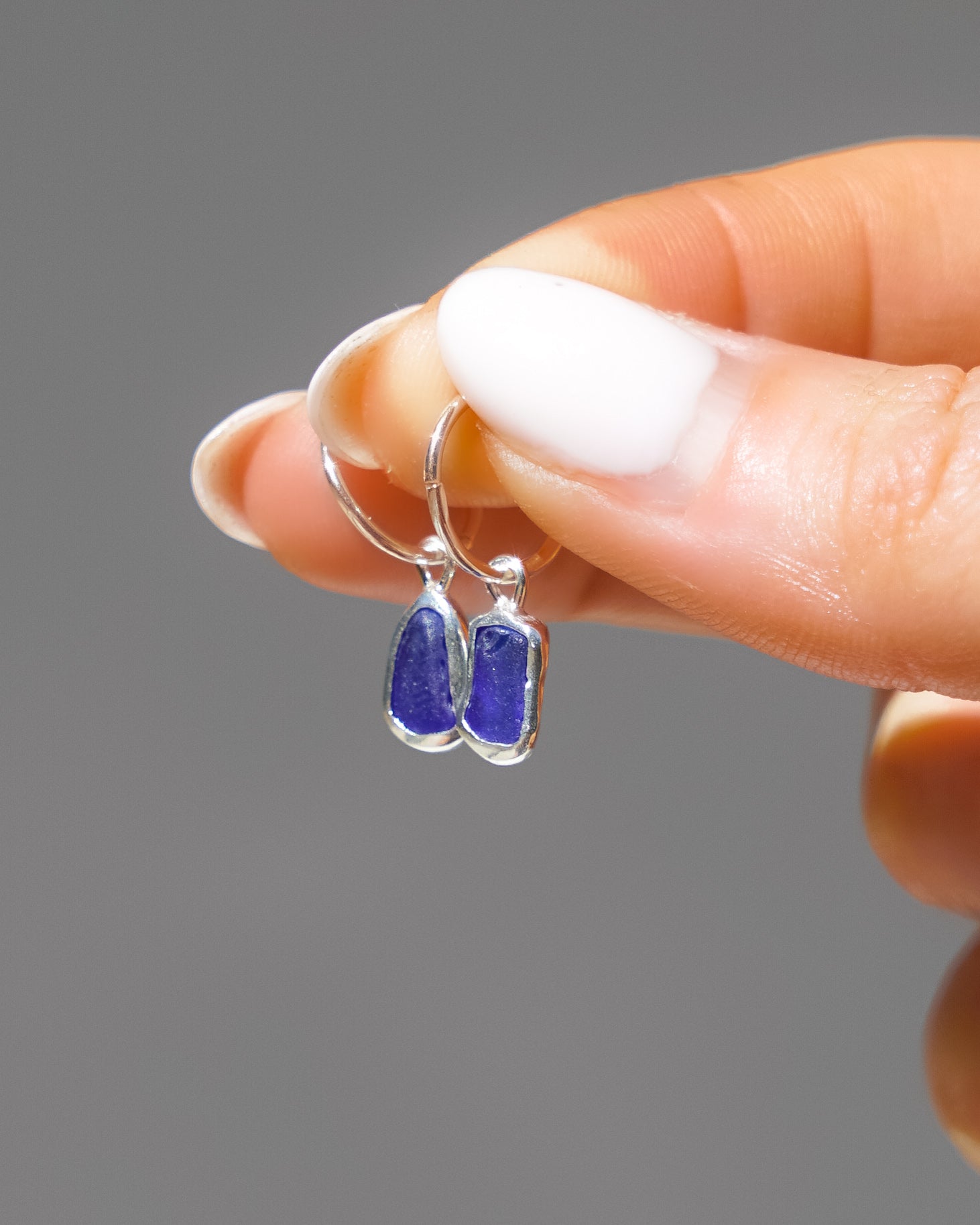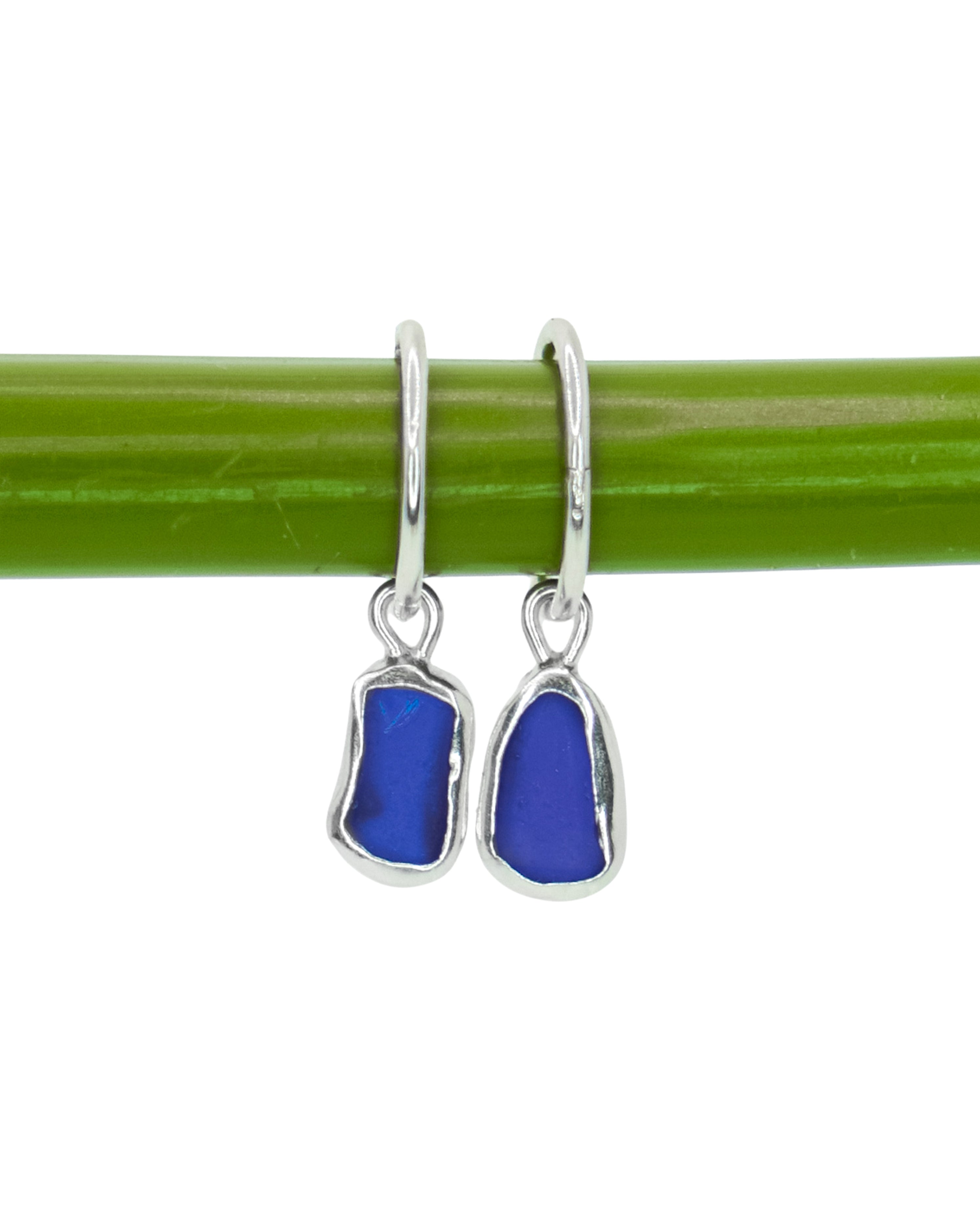 Blue Sea Glass Hoops - Handmade from 925 sterling silver