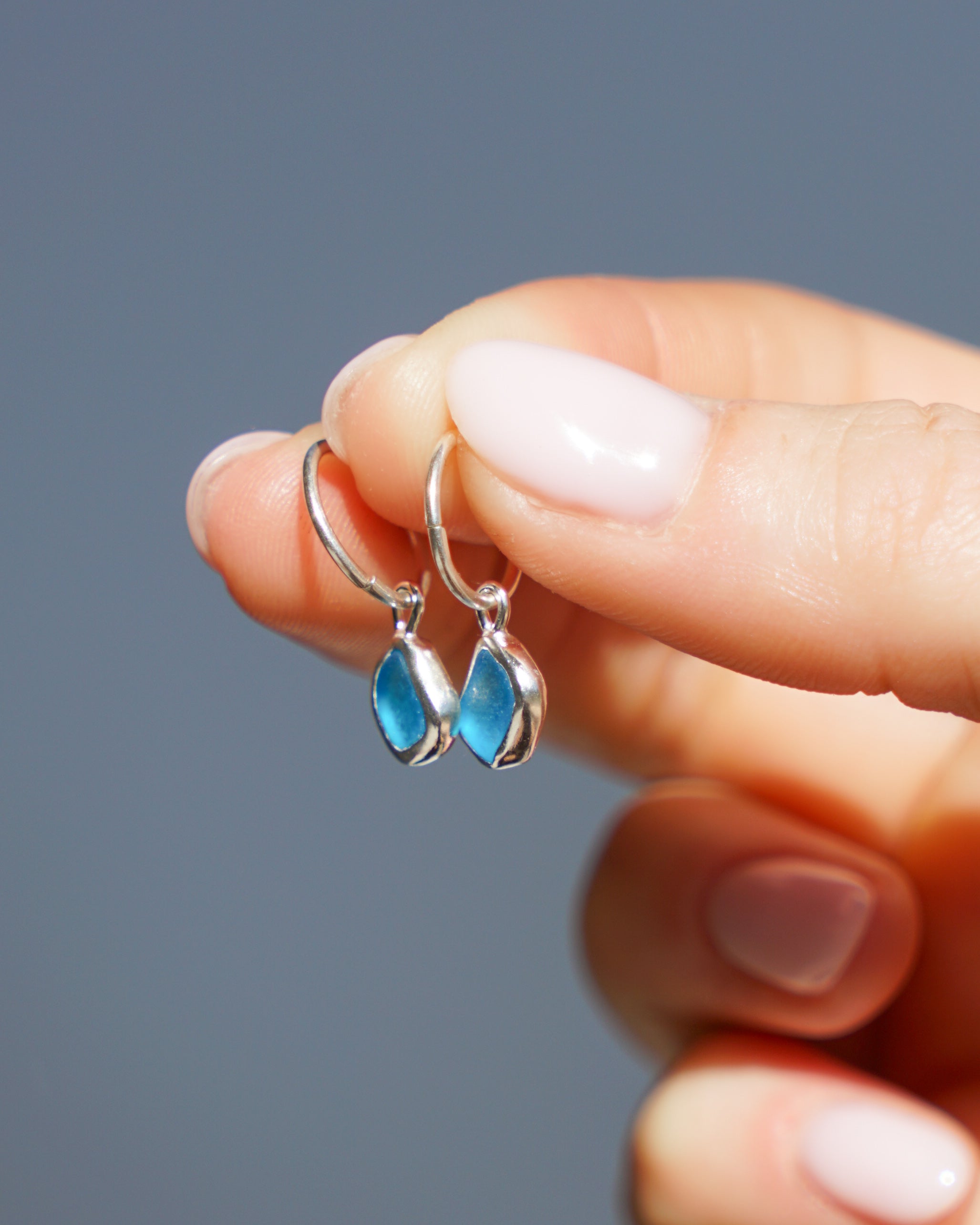 Blue Sea Glass Hoops