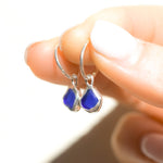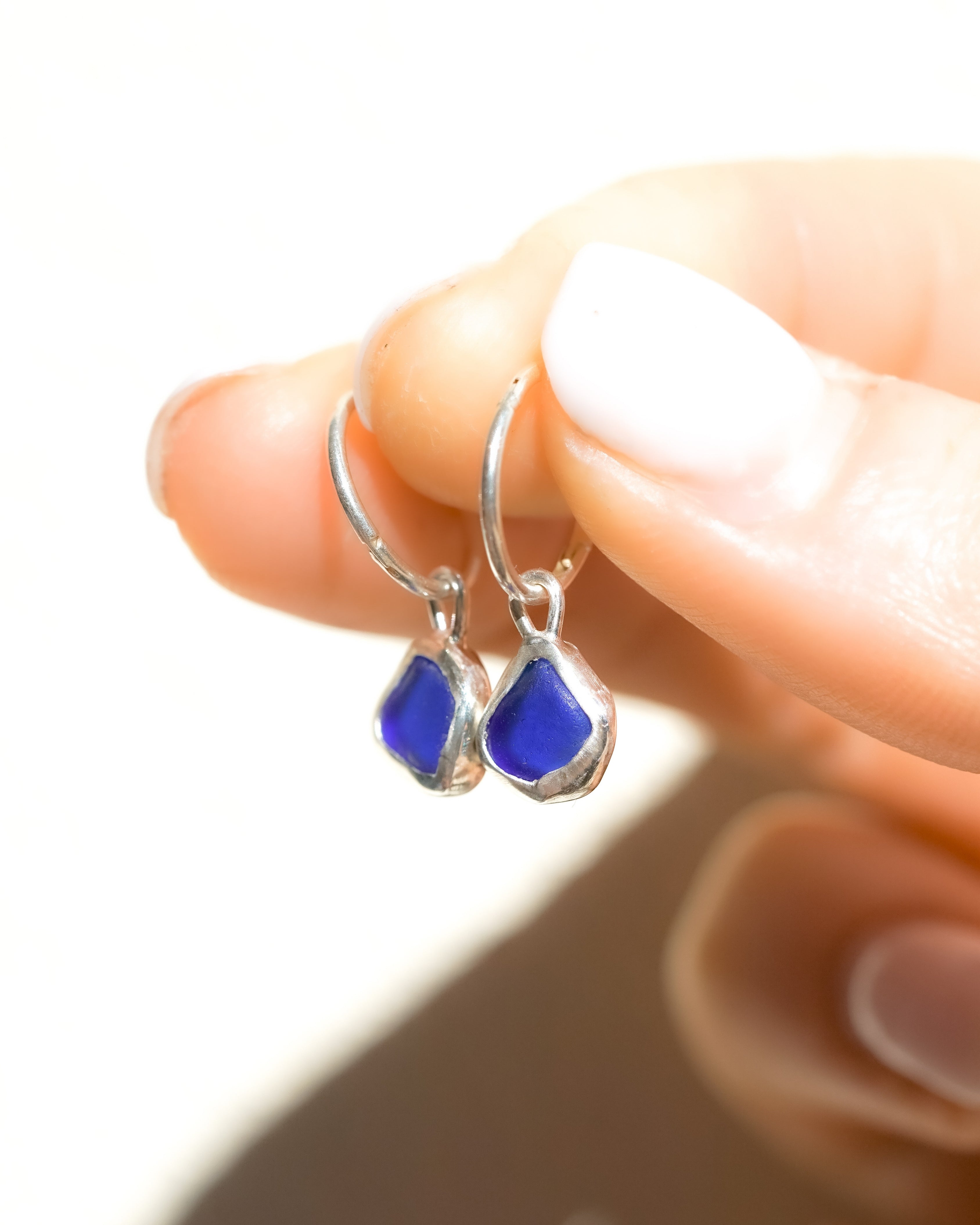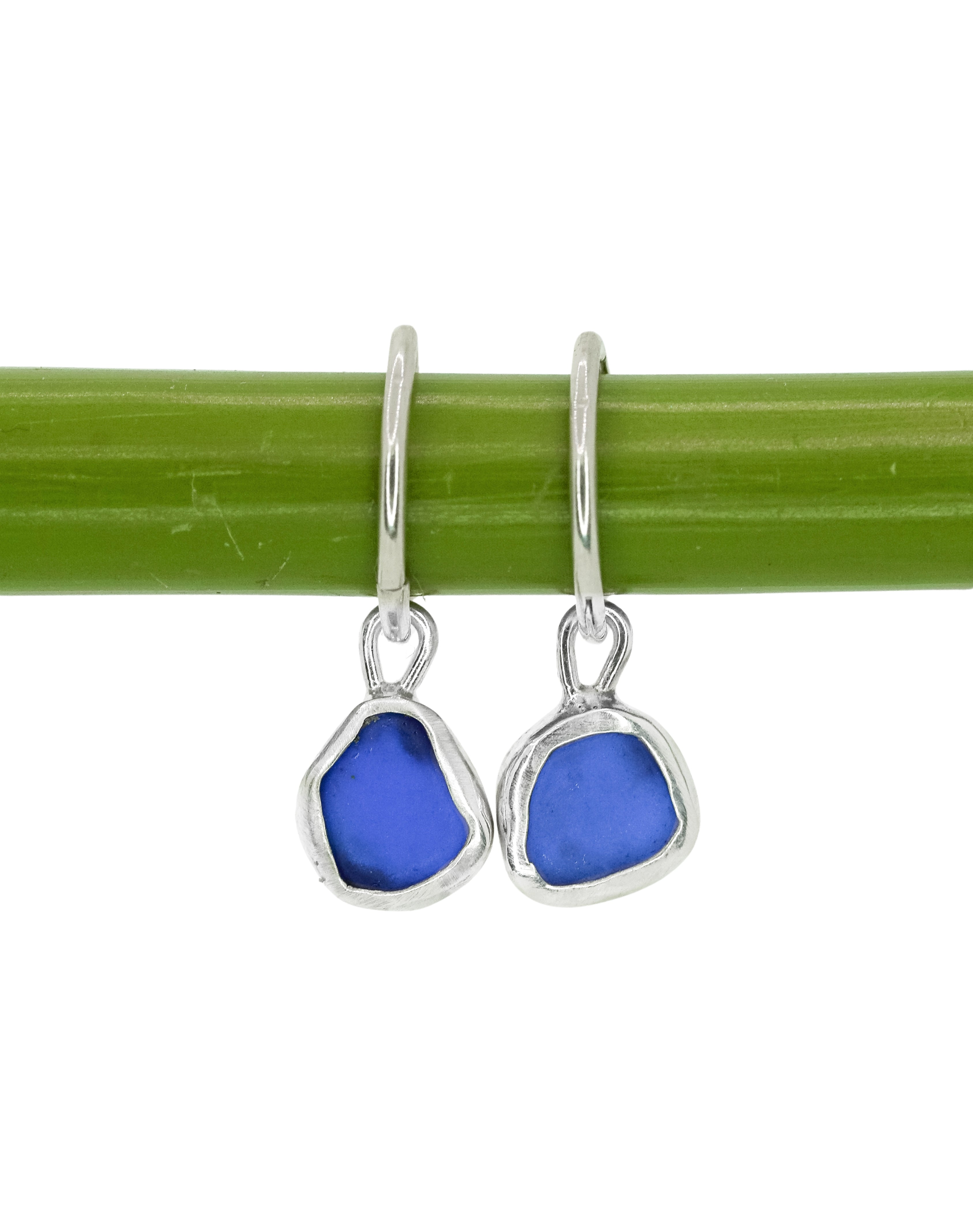 Blue Sea Glass Hoops - Handmade from 925 sterling silver
