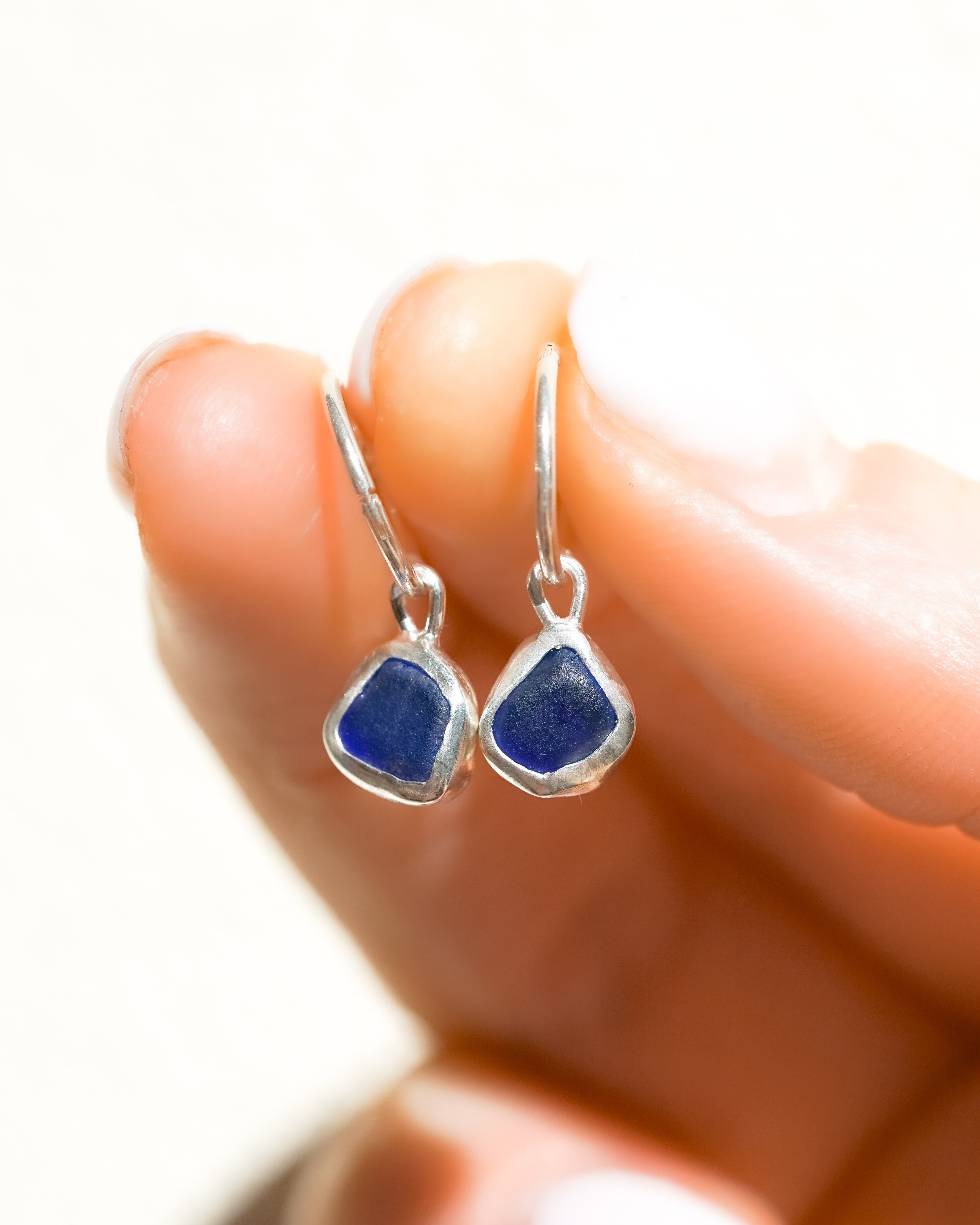 Sea Glass Jewellery (Closed Back Designs) - Closed back sea glass pieces should be kept out of water whenever possible. As the glass is transparent, moisture may affect the colouring due to the silver underneath, mainly the lighter shades. To help preserve their beauty, we recommend removing them before showering or swimming.