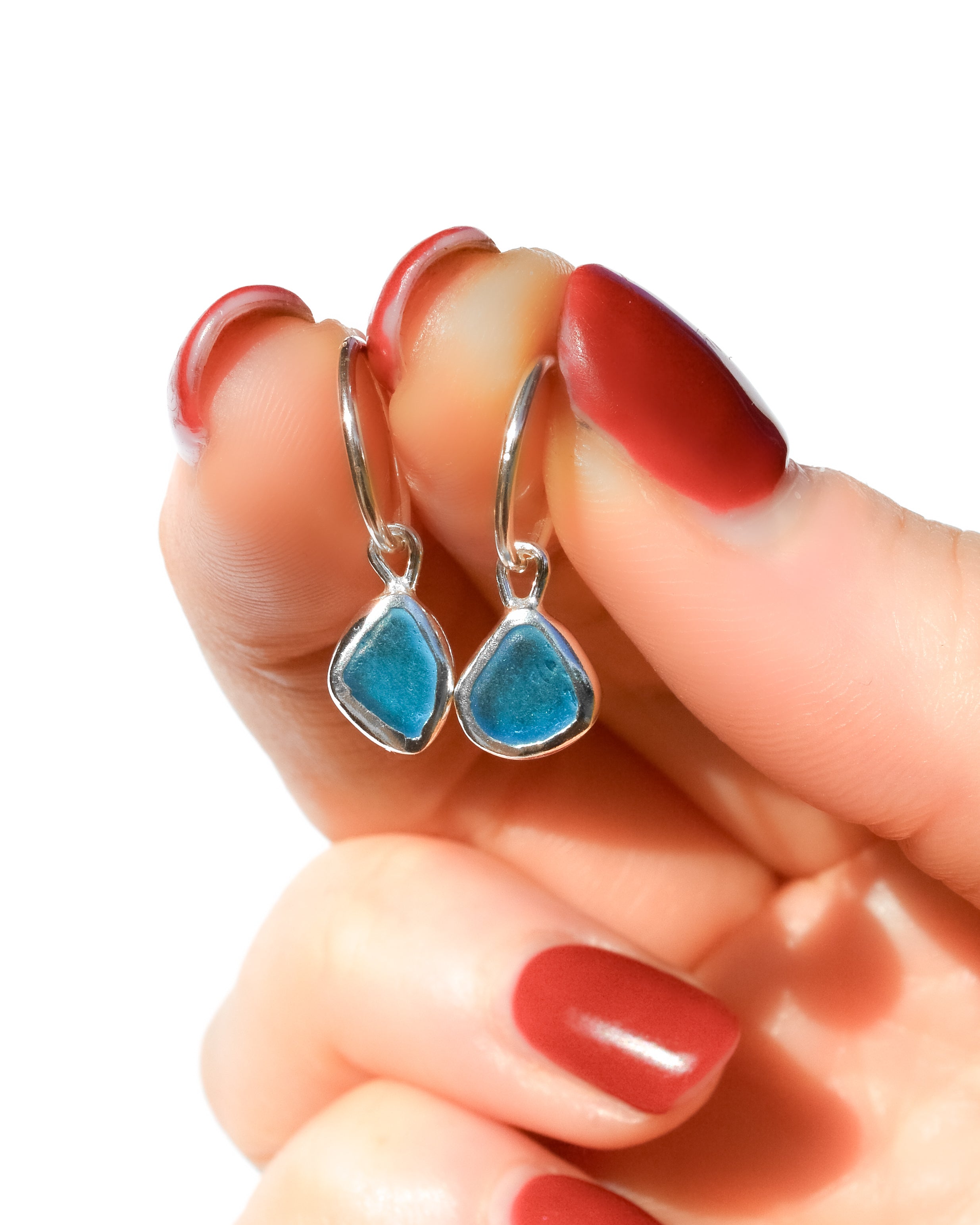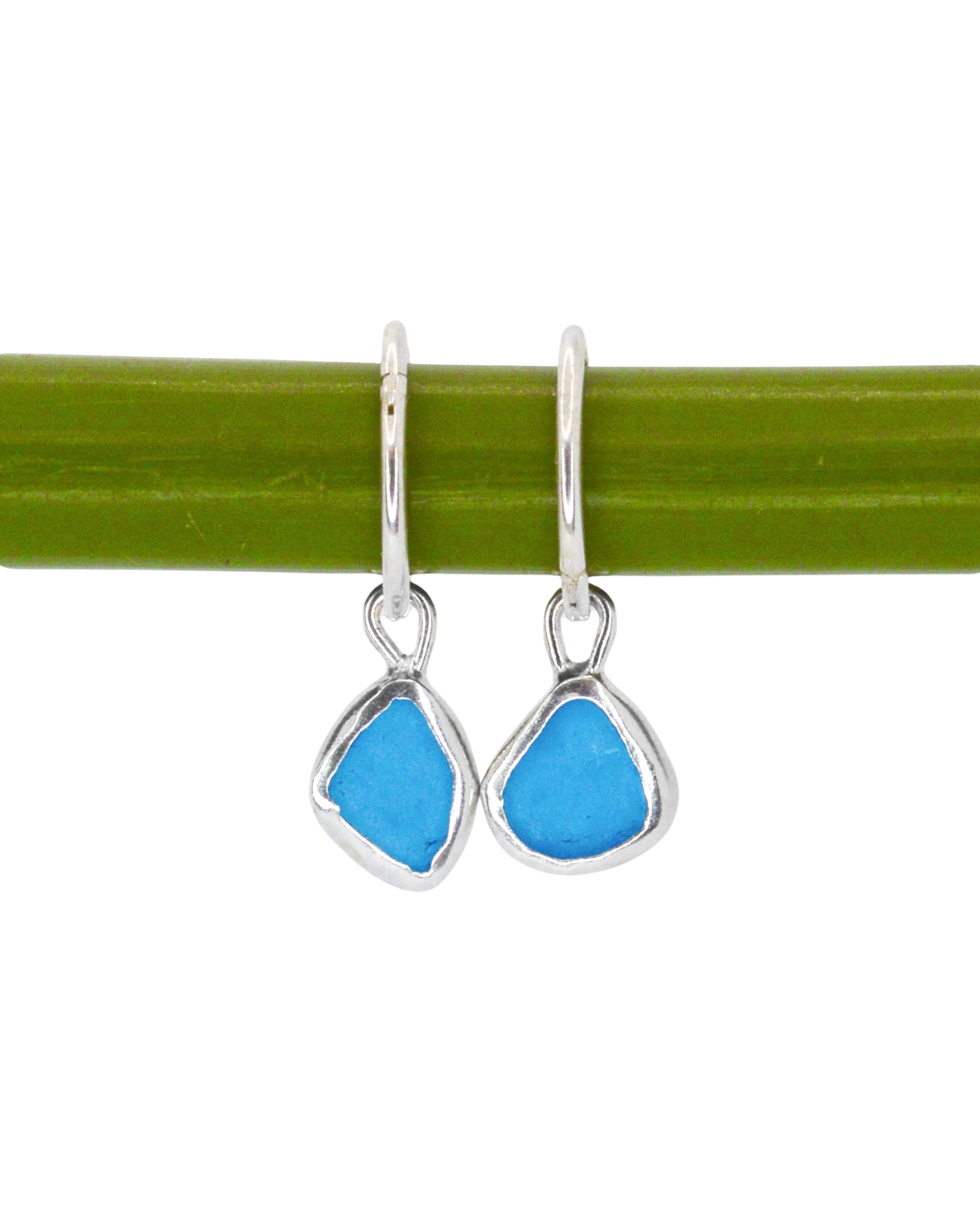 Blue Sea Glass Hoops - Handmade from 925 sterling silver