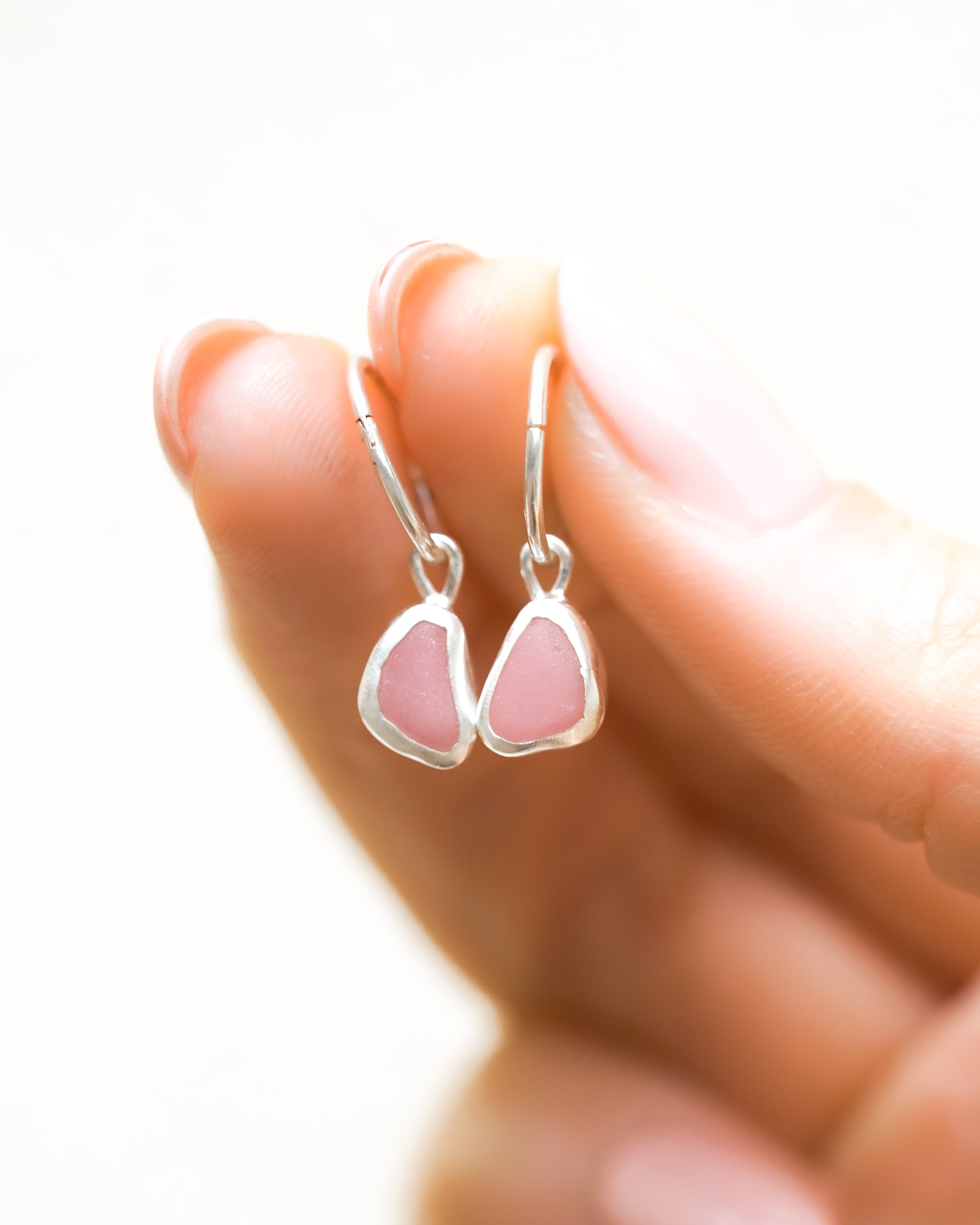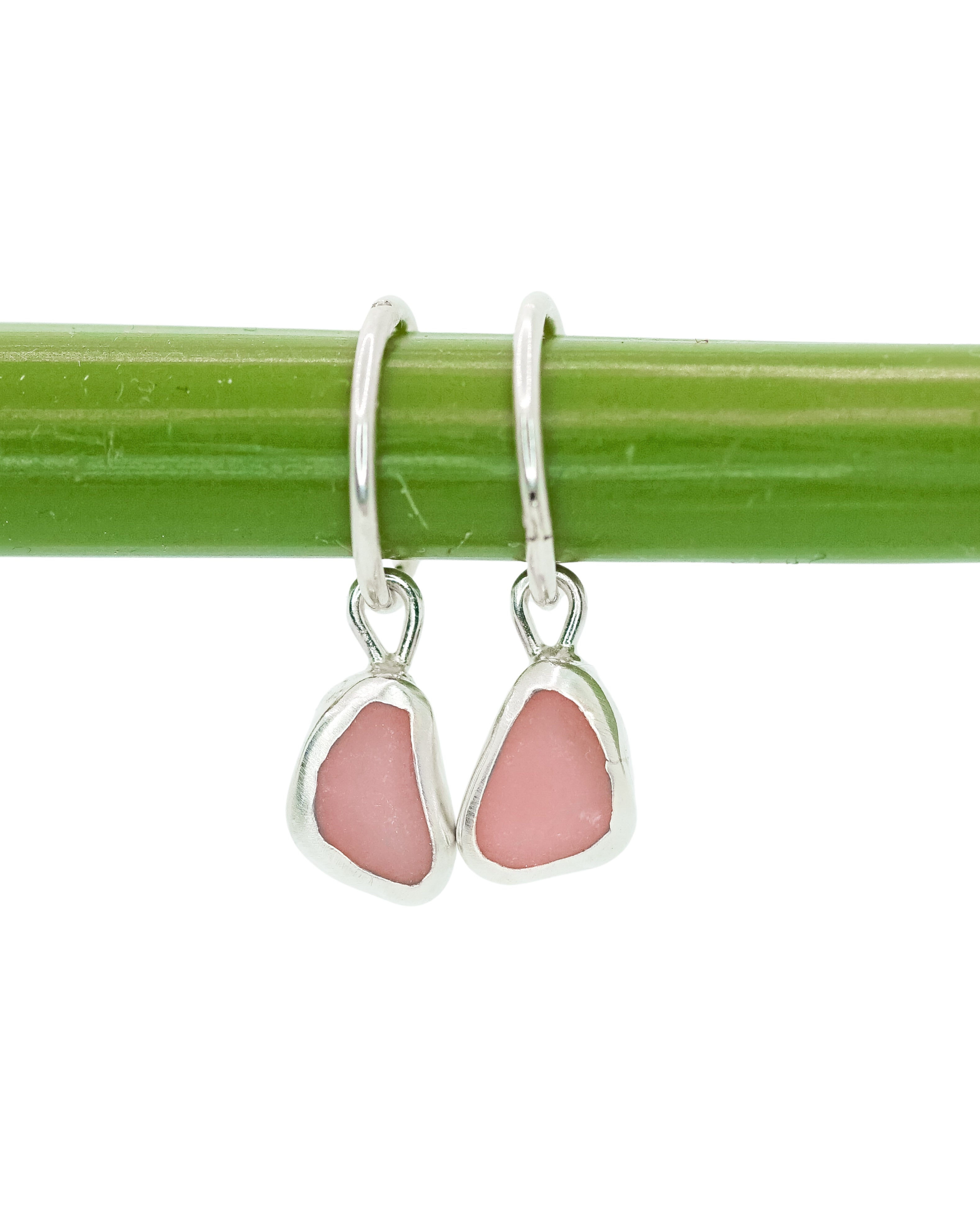 Pink Sea Glass Hoops - Handmade from 925 sterling silver