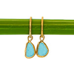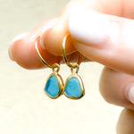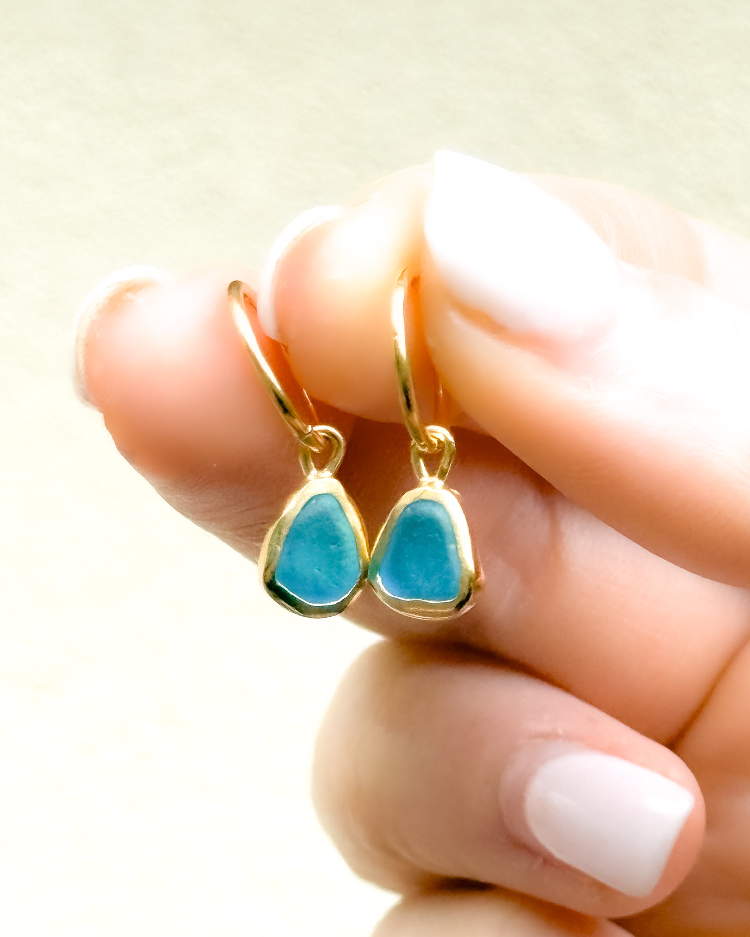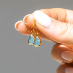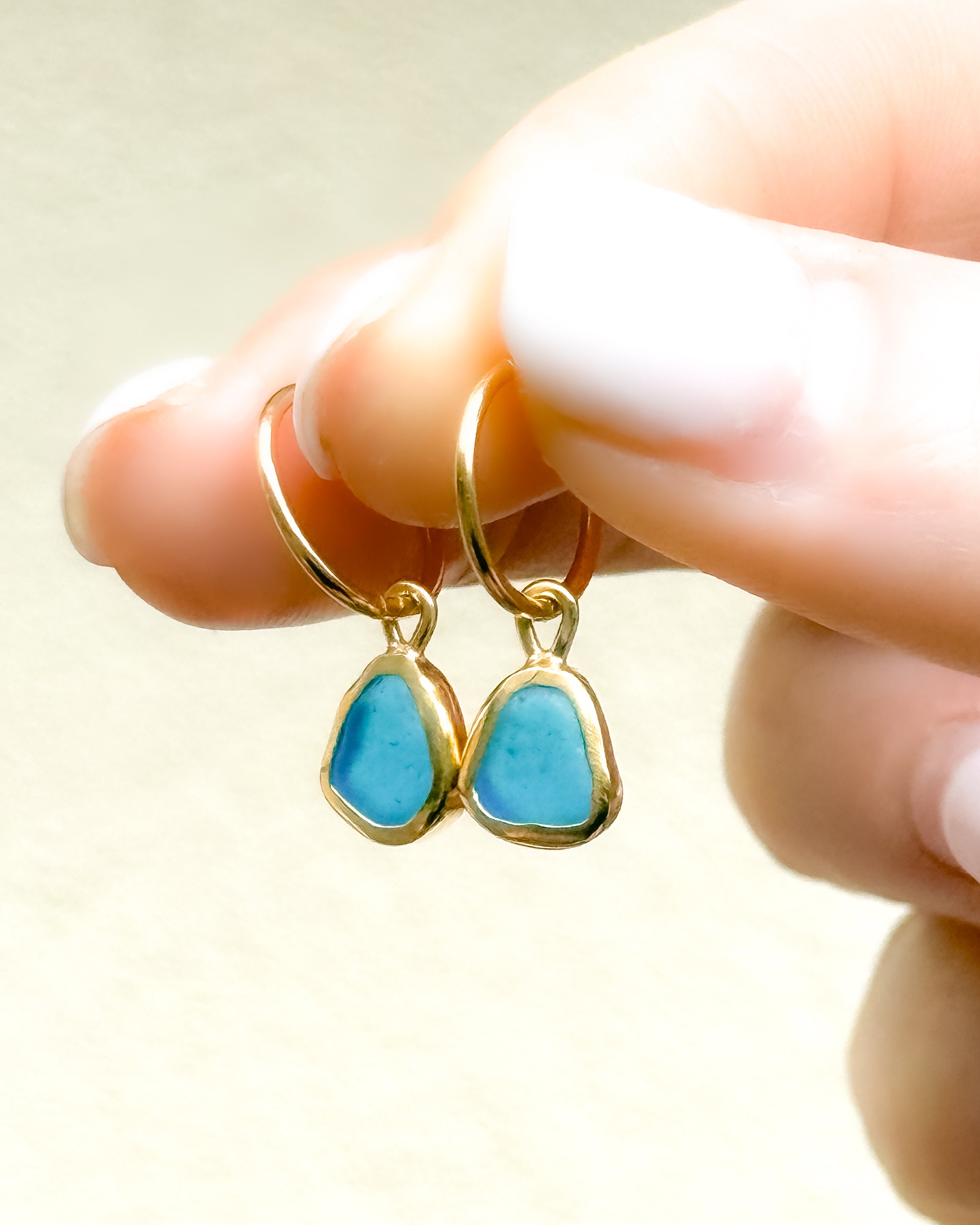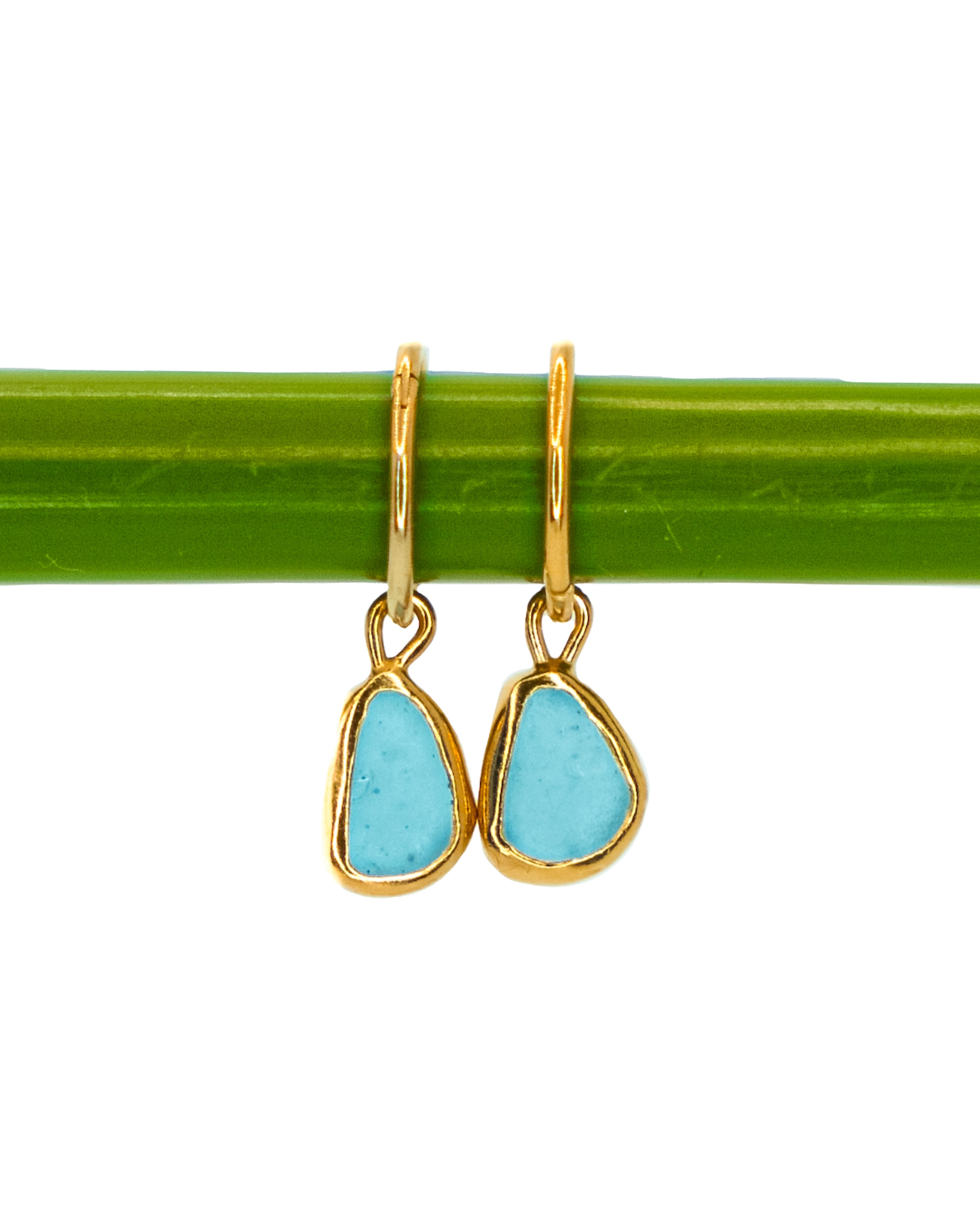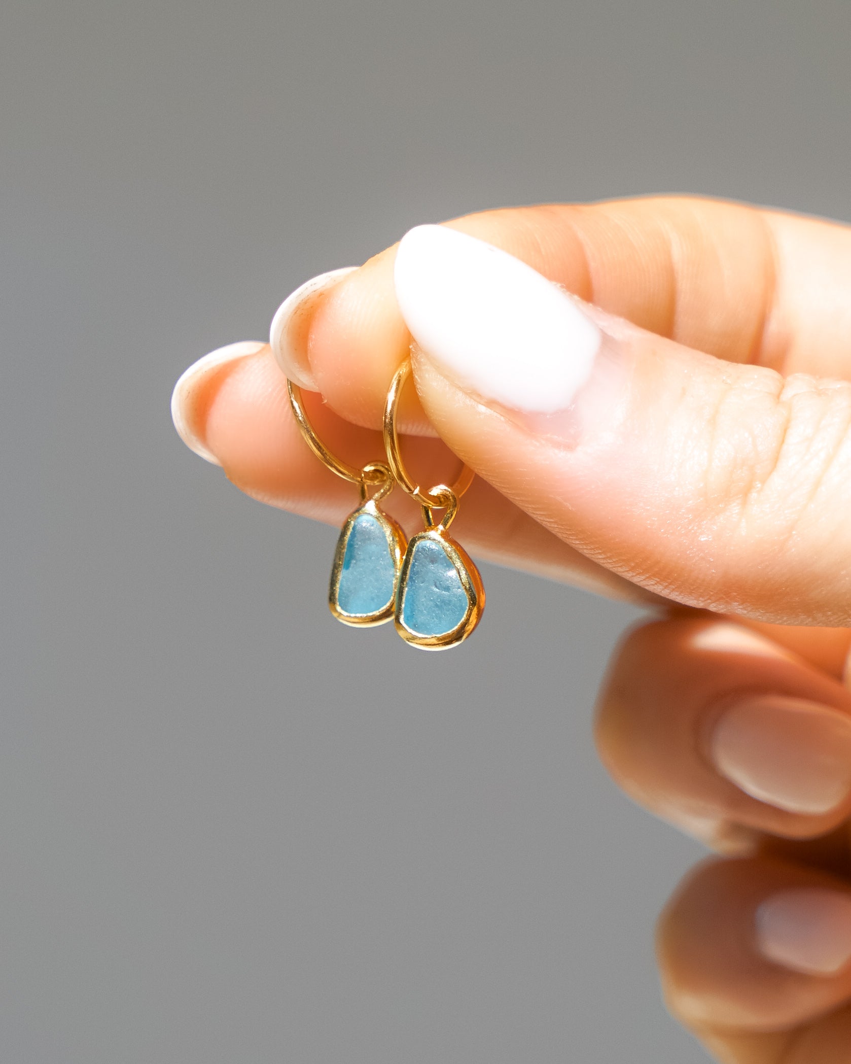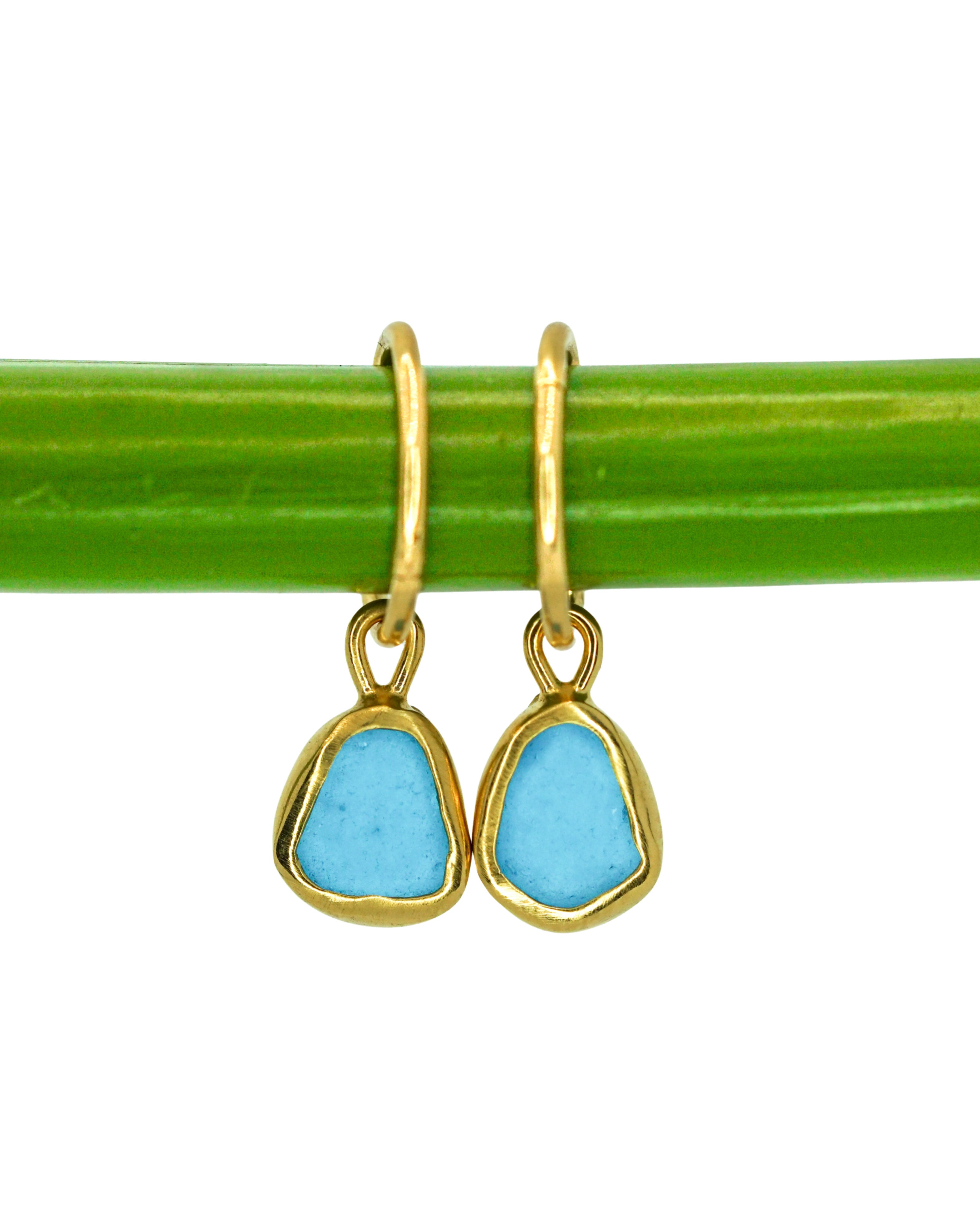 Blue Sea Glass Hoops - Handmade from 925 Sterling Silver plated with a 10 micron thick and hard layer of 24K (Gold Vermeil)