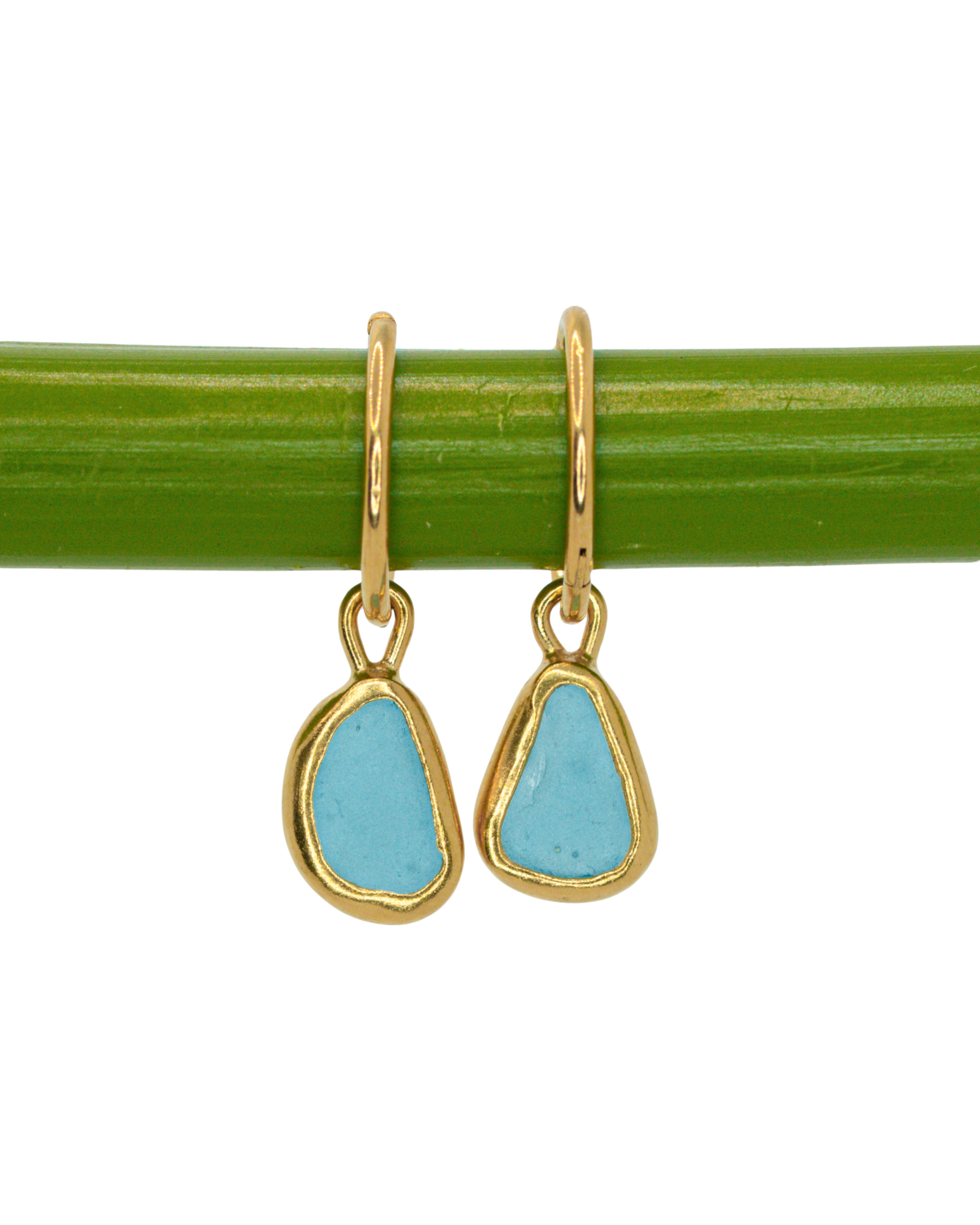 Our open-back designs highlight the true colour and natural beauty of the sea glass. The open setting allows light to shine through and makes these pieces suitable for wear in water.