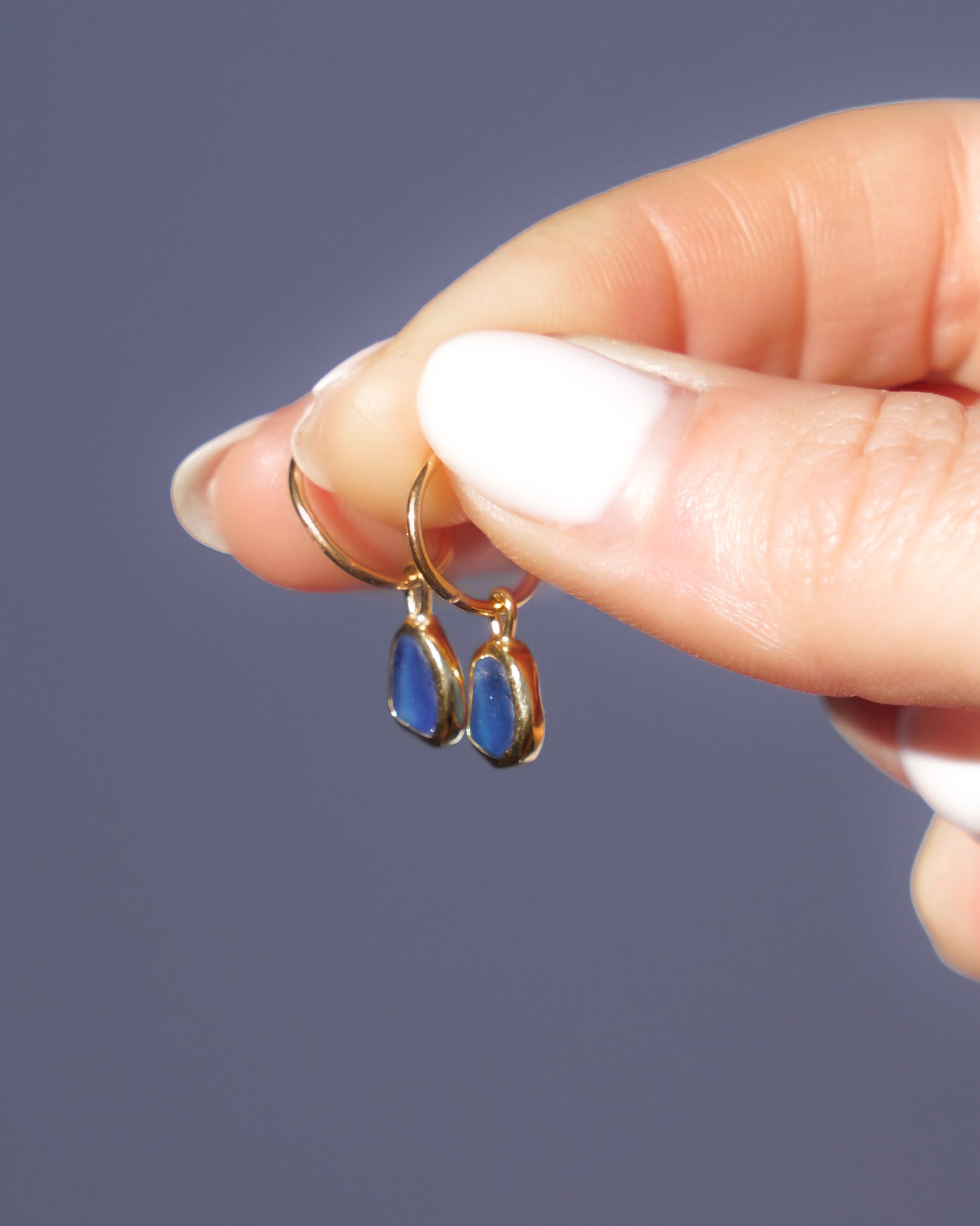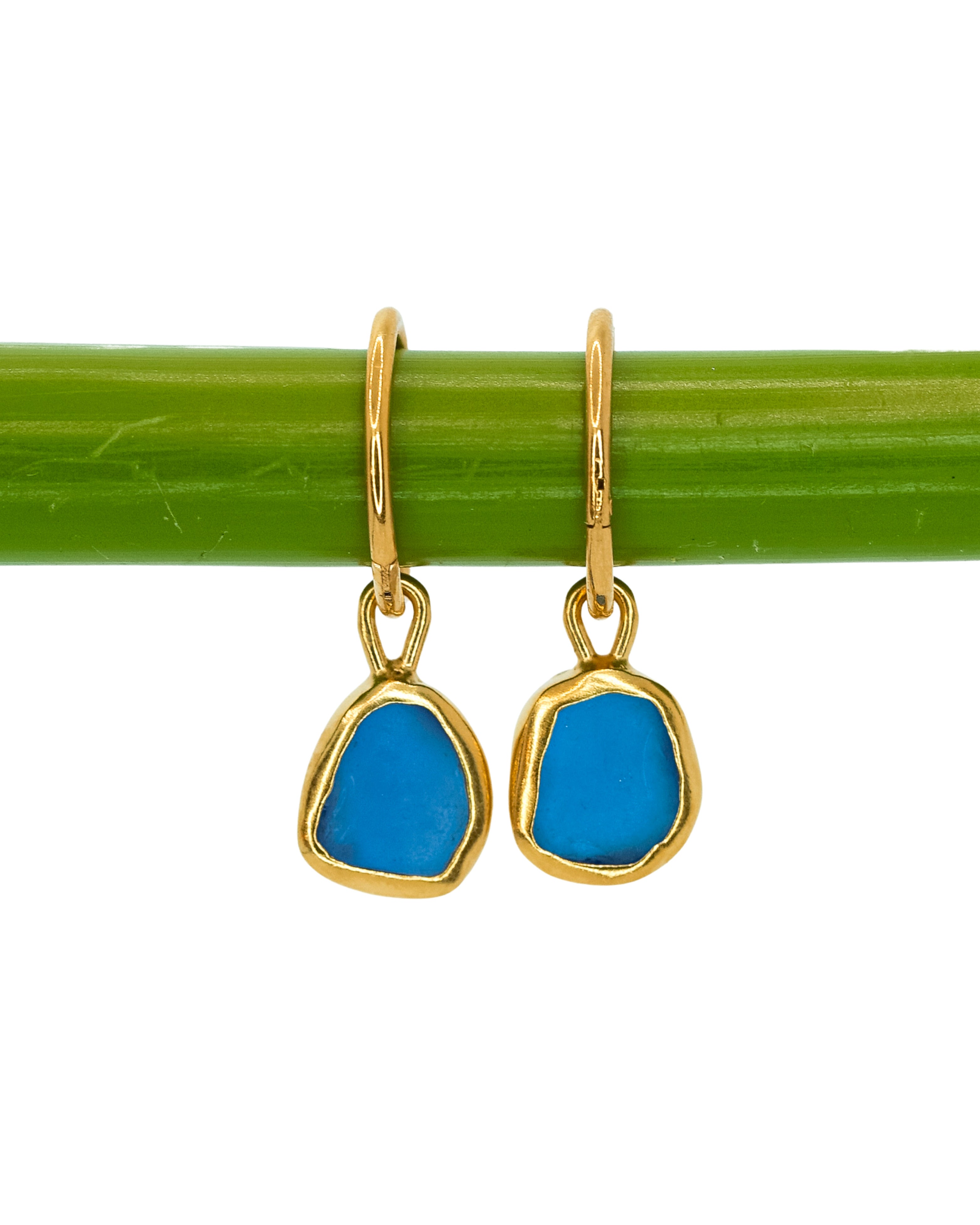 Blue Sea Glass Hoops - Handmade from 925 Sterling Silver plated with a 10 micron thick and hard layer of 24K (Gold Vermeil)