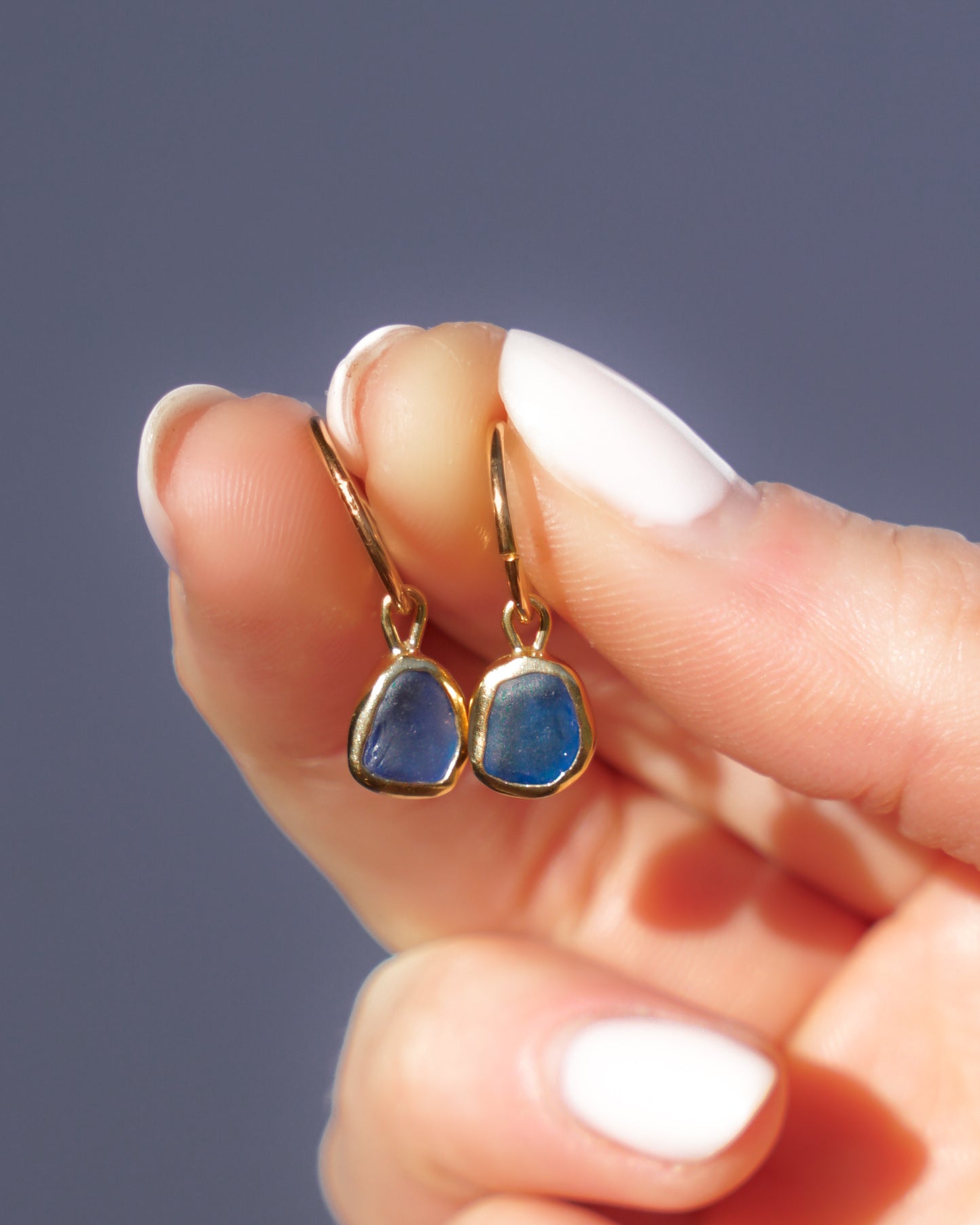 Our new open back design! These earrings have been designed with an open back which means the metal has been placed just around the glass, not behind (making them waterproof). This allows light to shine though the glass showing its true colours 🤍
