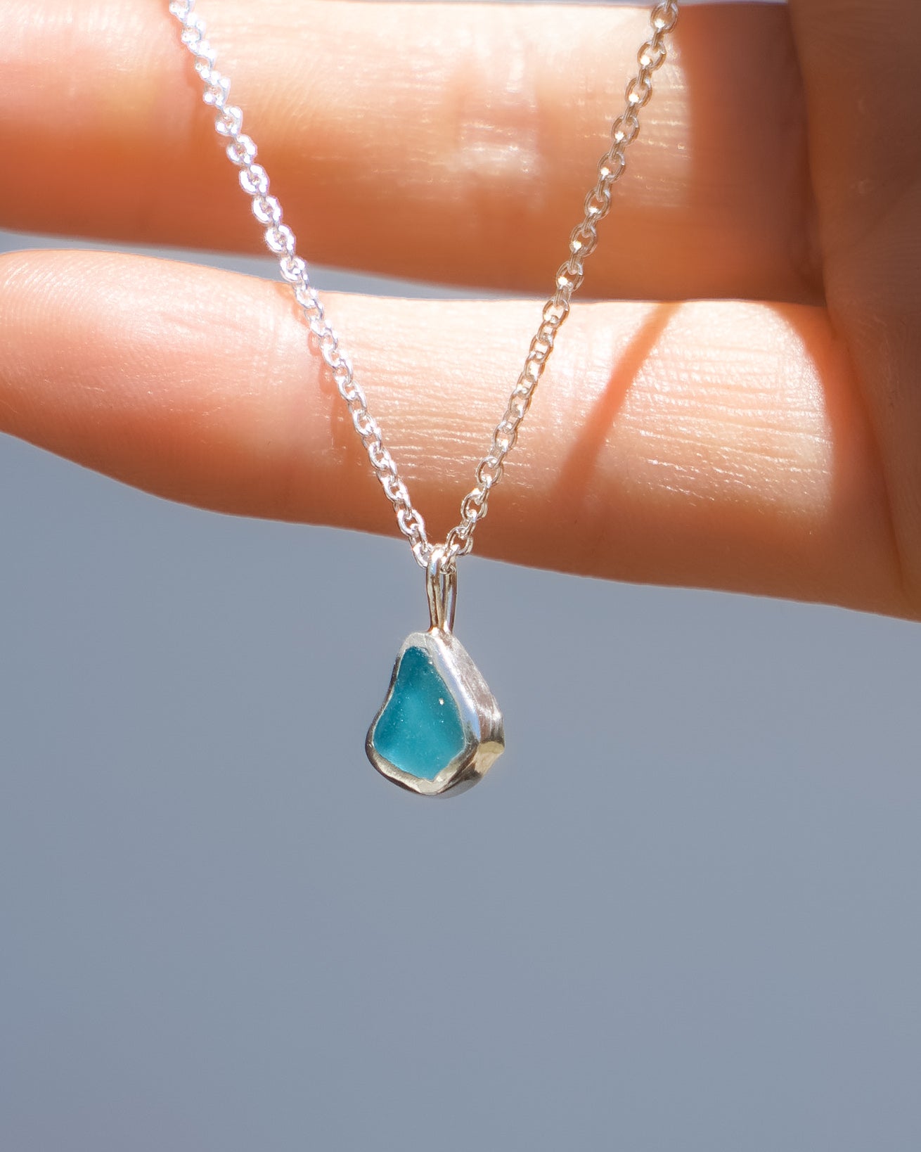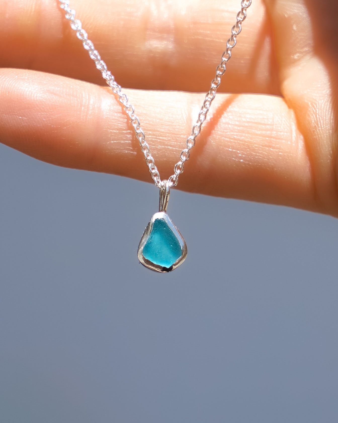Blue Sea Glass Necklace - Handmade from 925 sterling silver