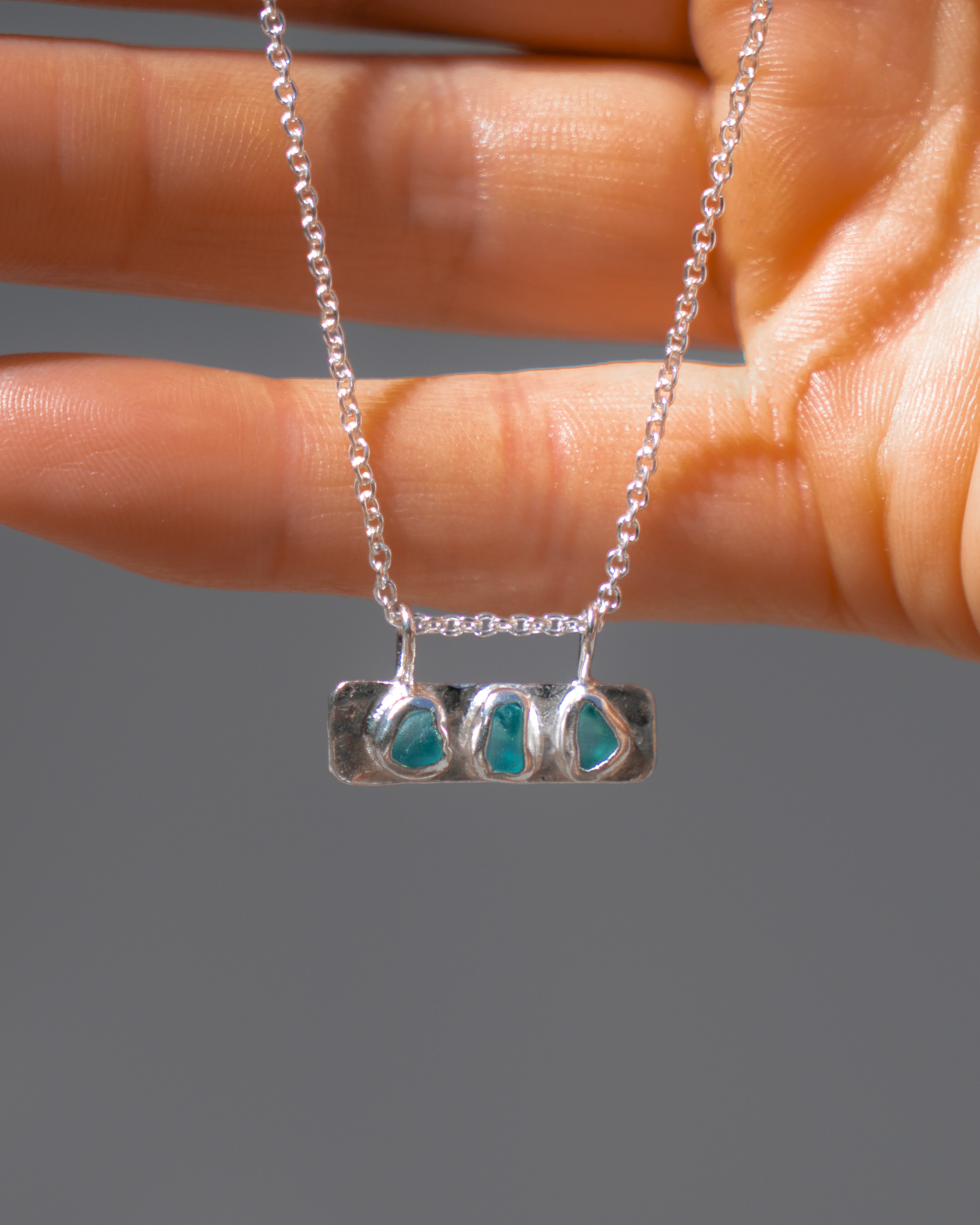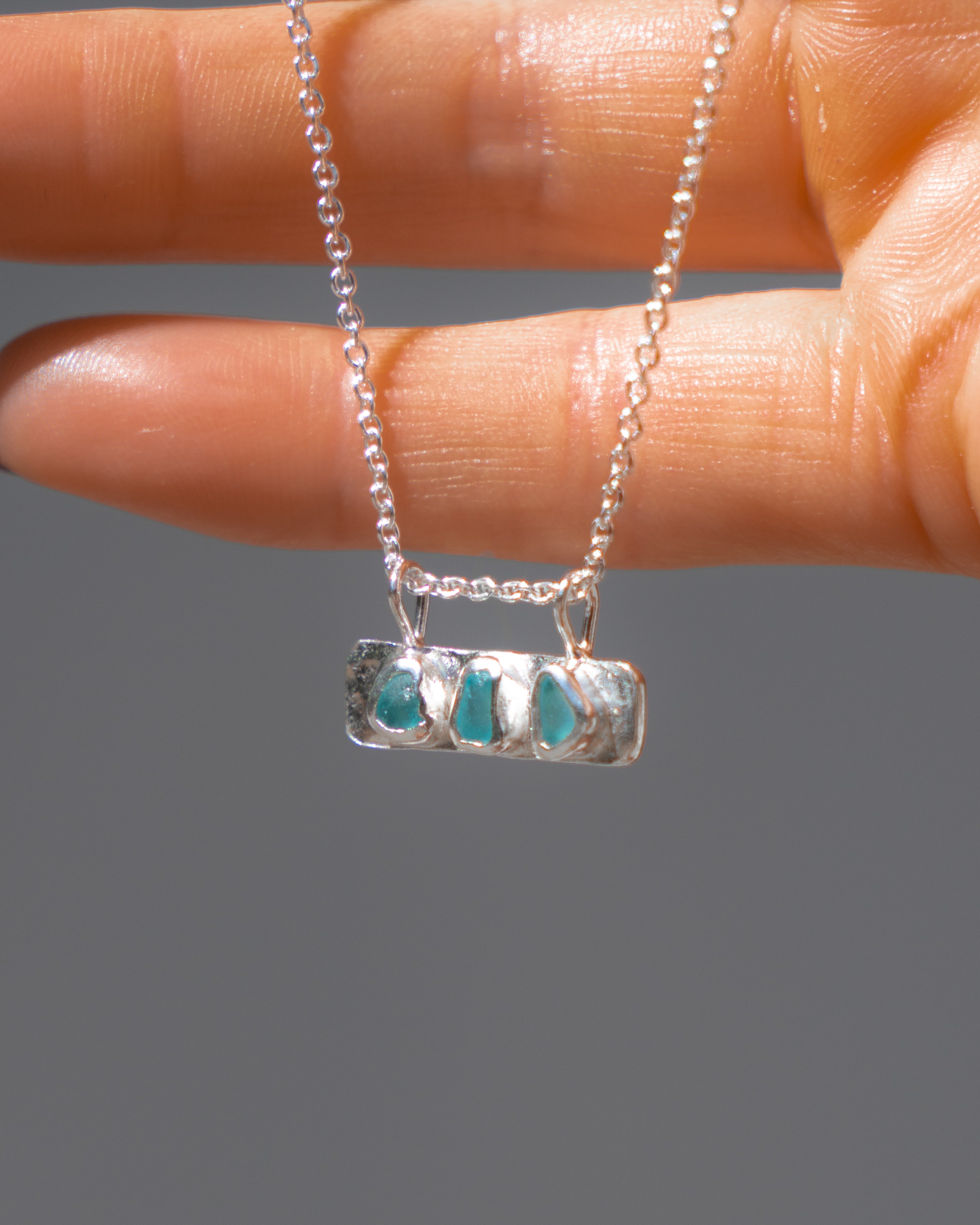 Each piece of sea glass jewellery is naturally shaped by the ocean and carefully set by hand. Every piece of glass has its own unique shape, tone and texture, making each design truly one of a kind.