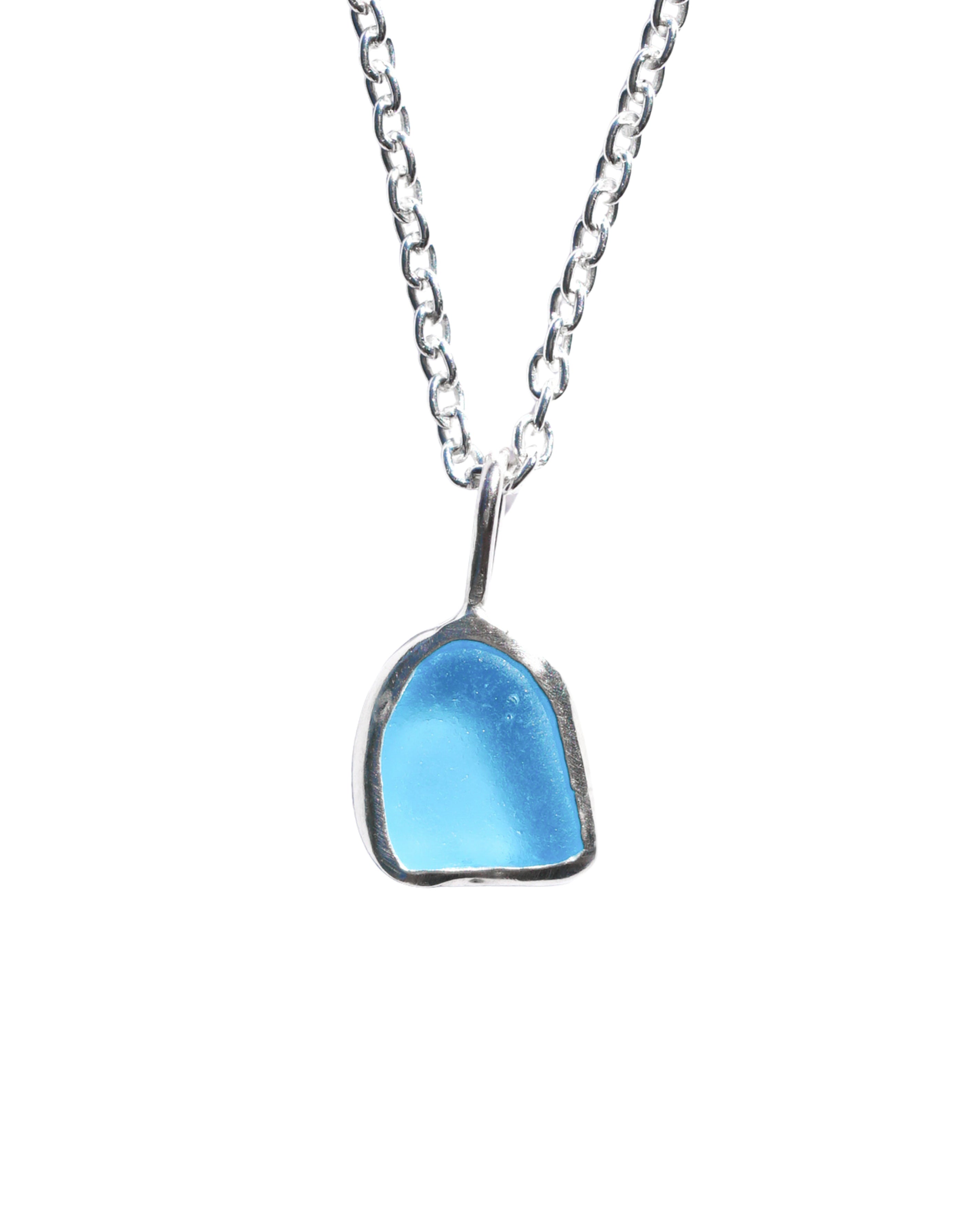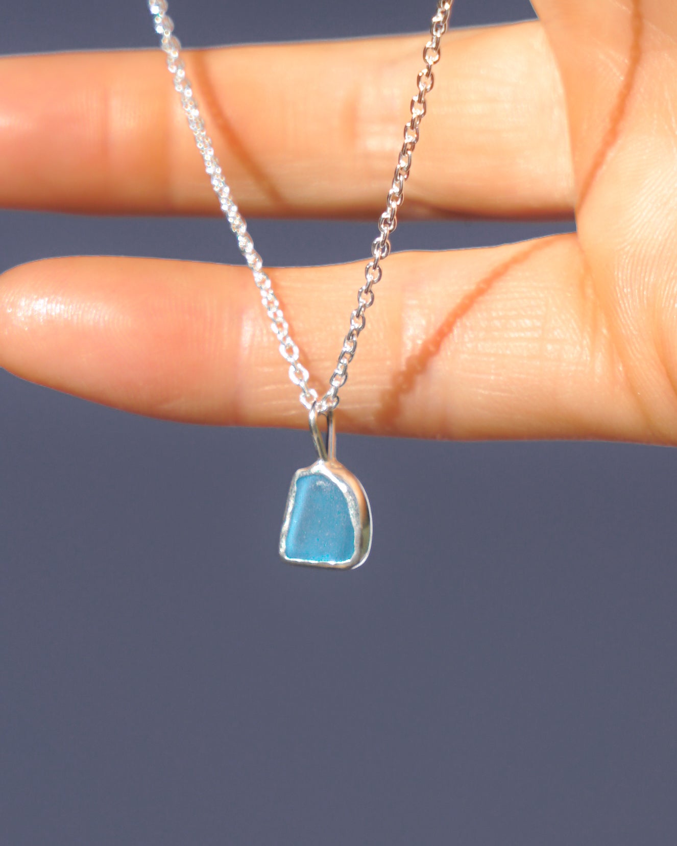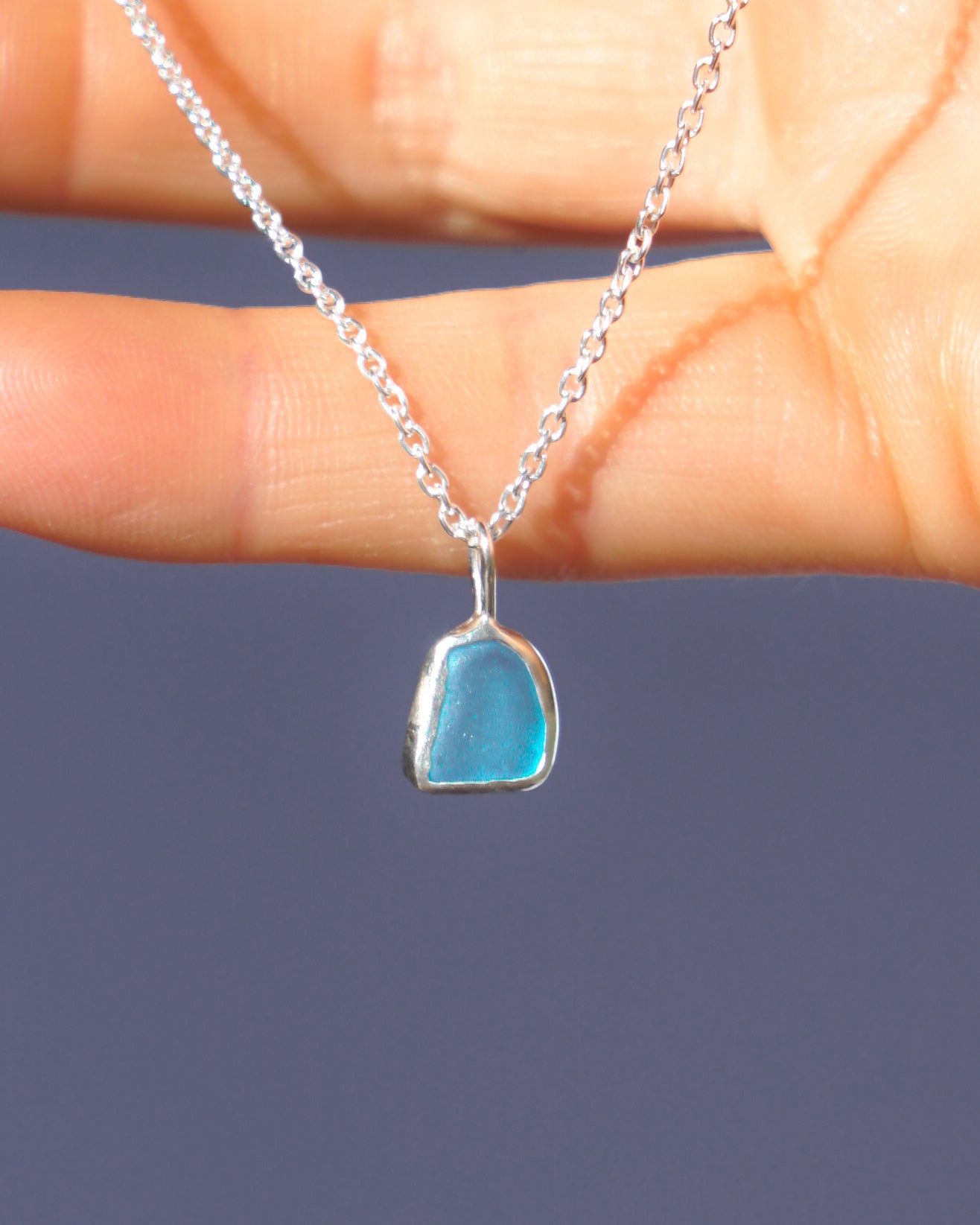 Blue Sea Glass Necklace - Handmade from 925 sterling silver