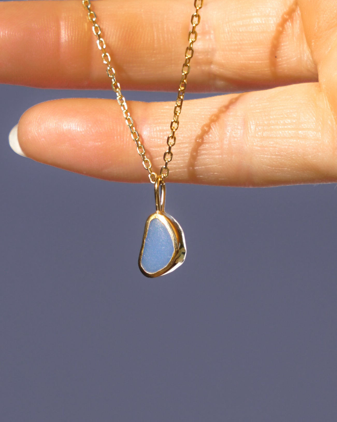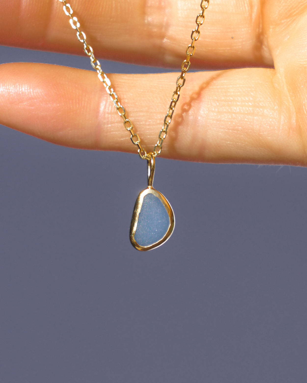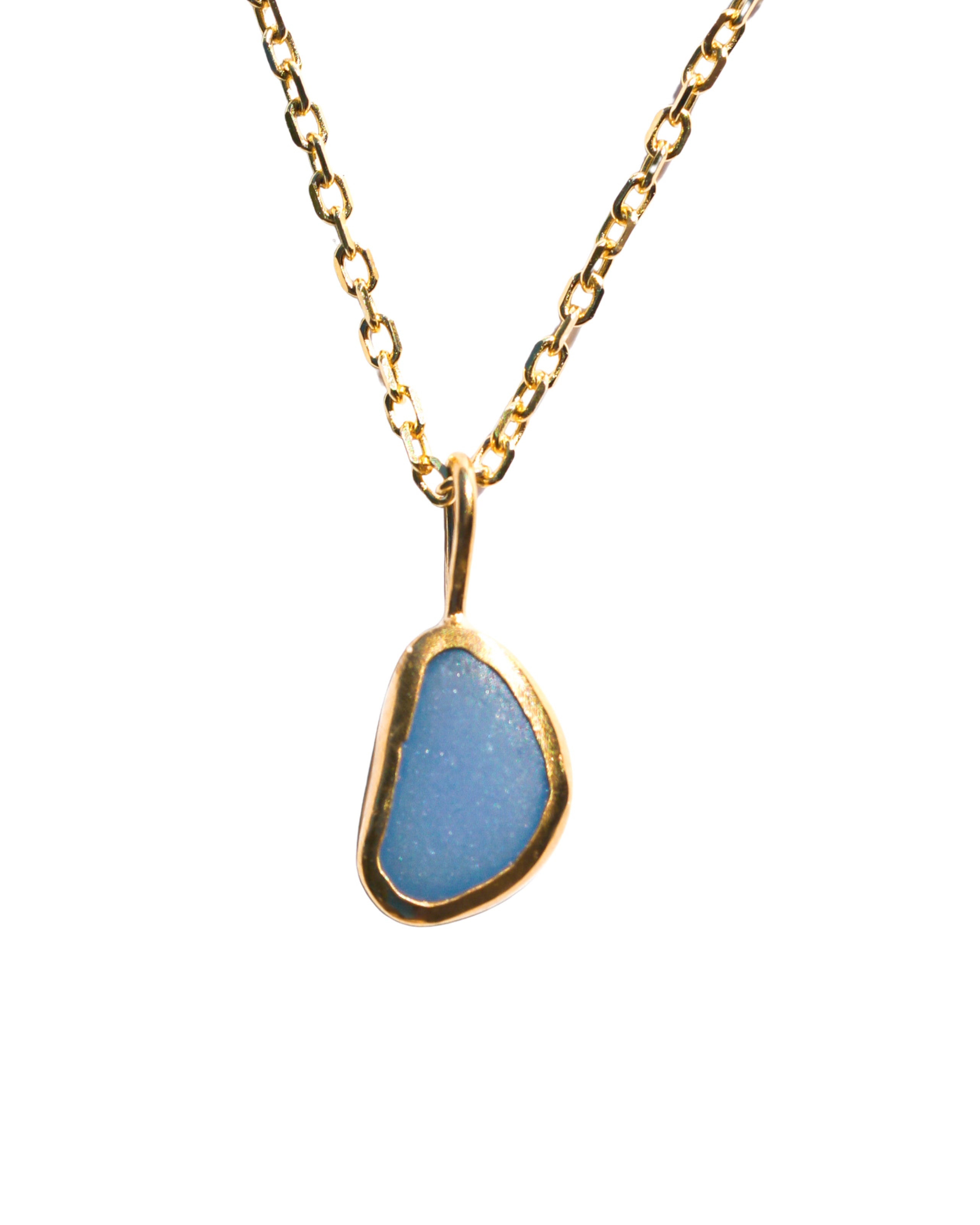 Blue Sea Glass Necklace - Gold Vermeil