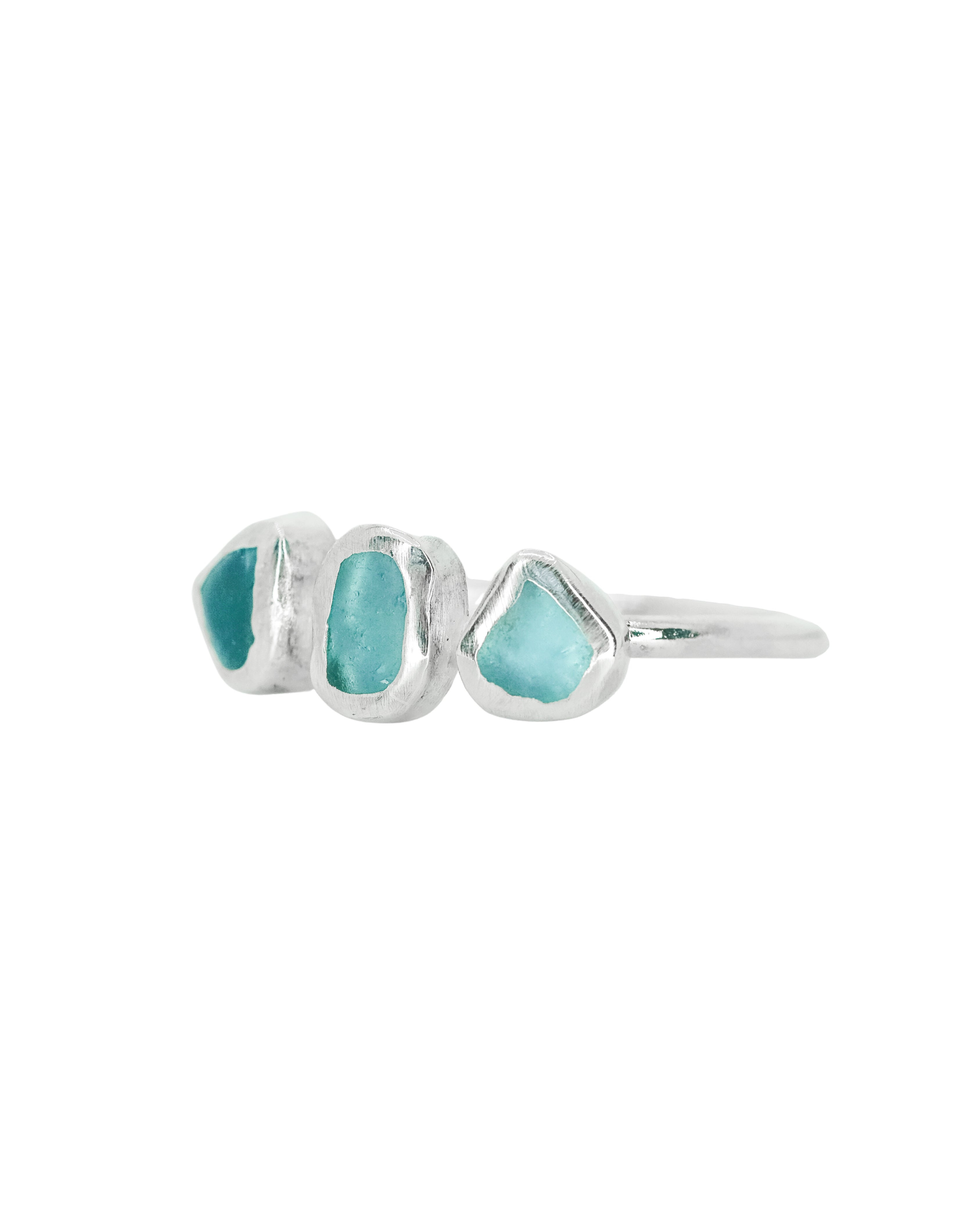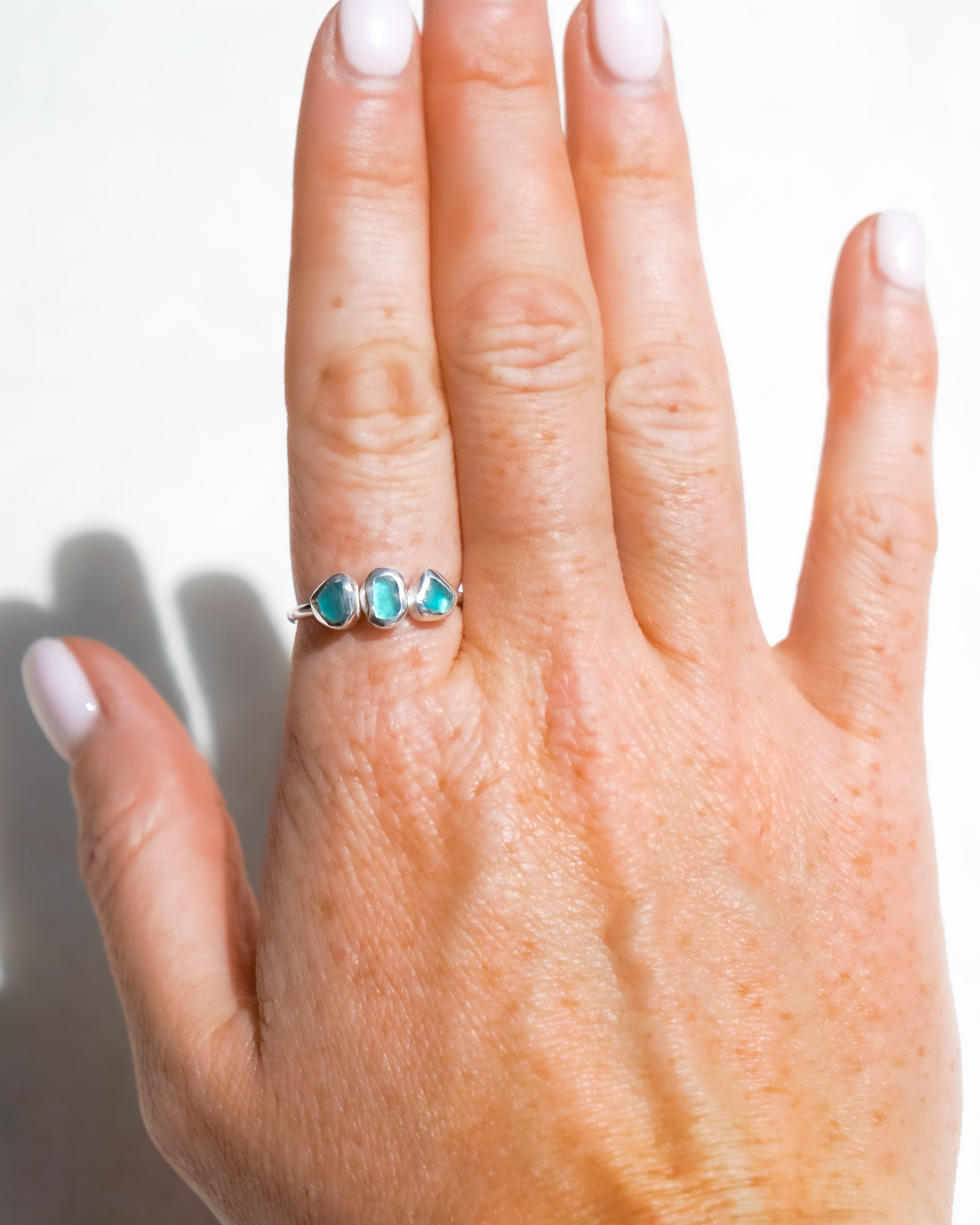 Blue Sea Glass Ring - Handmade from 925 Sterling Silver