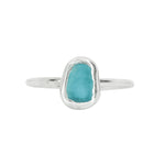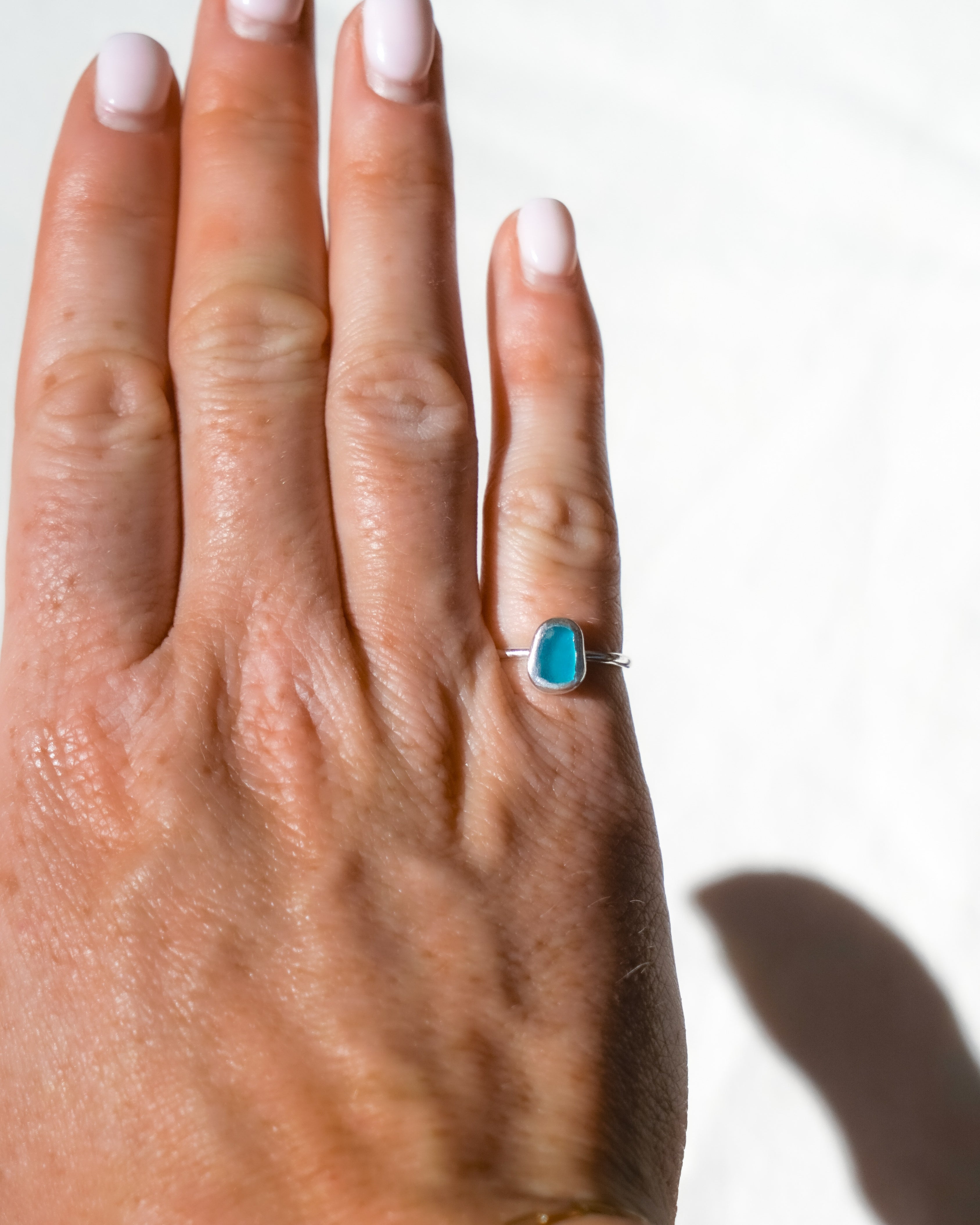 Blue Sea Glass Ring - Handmade from 925 Sterling Silver