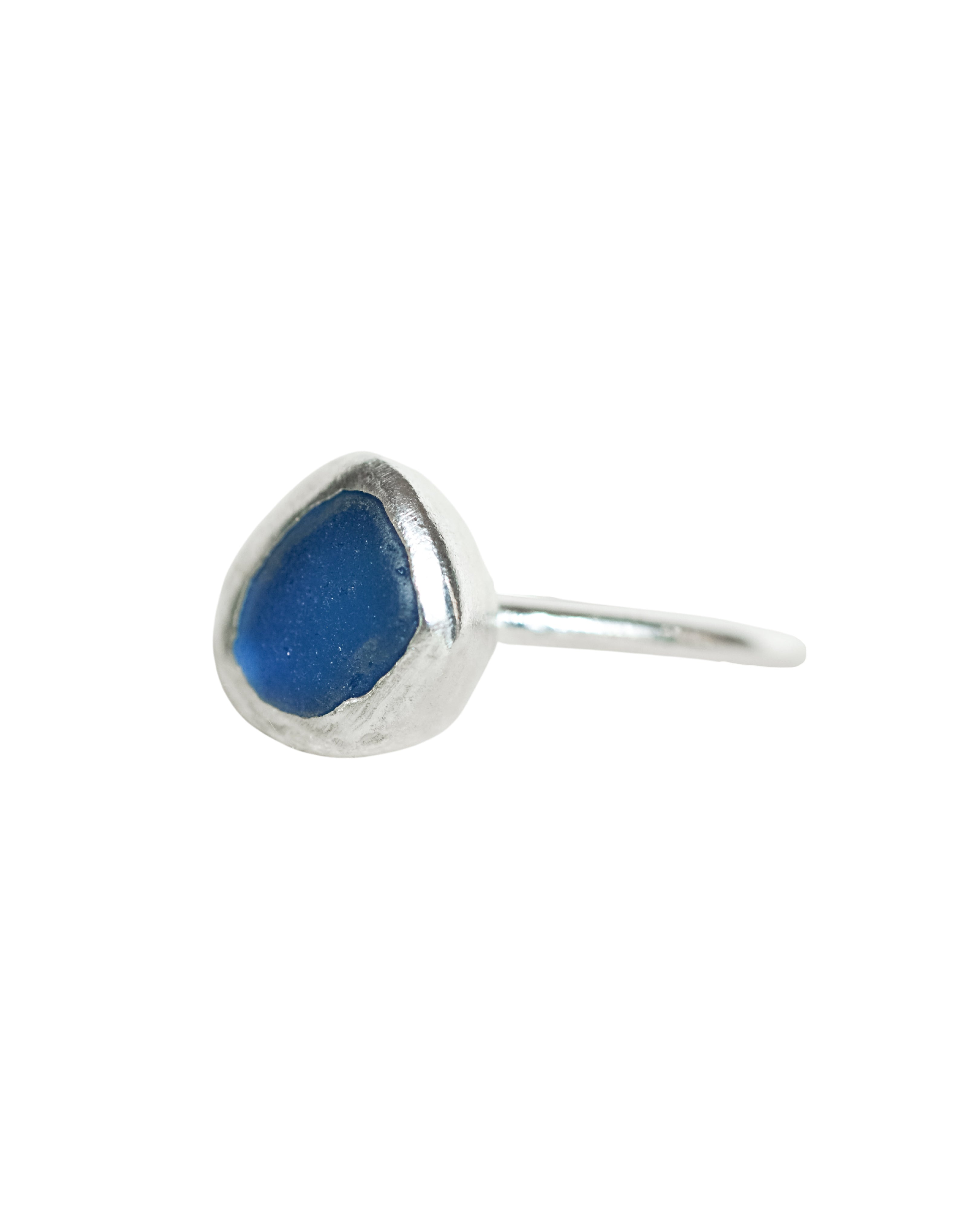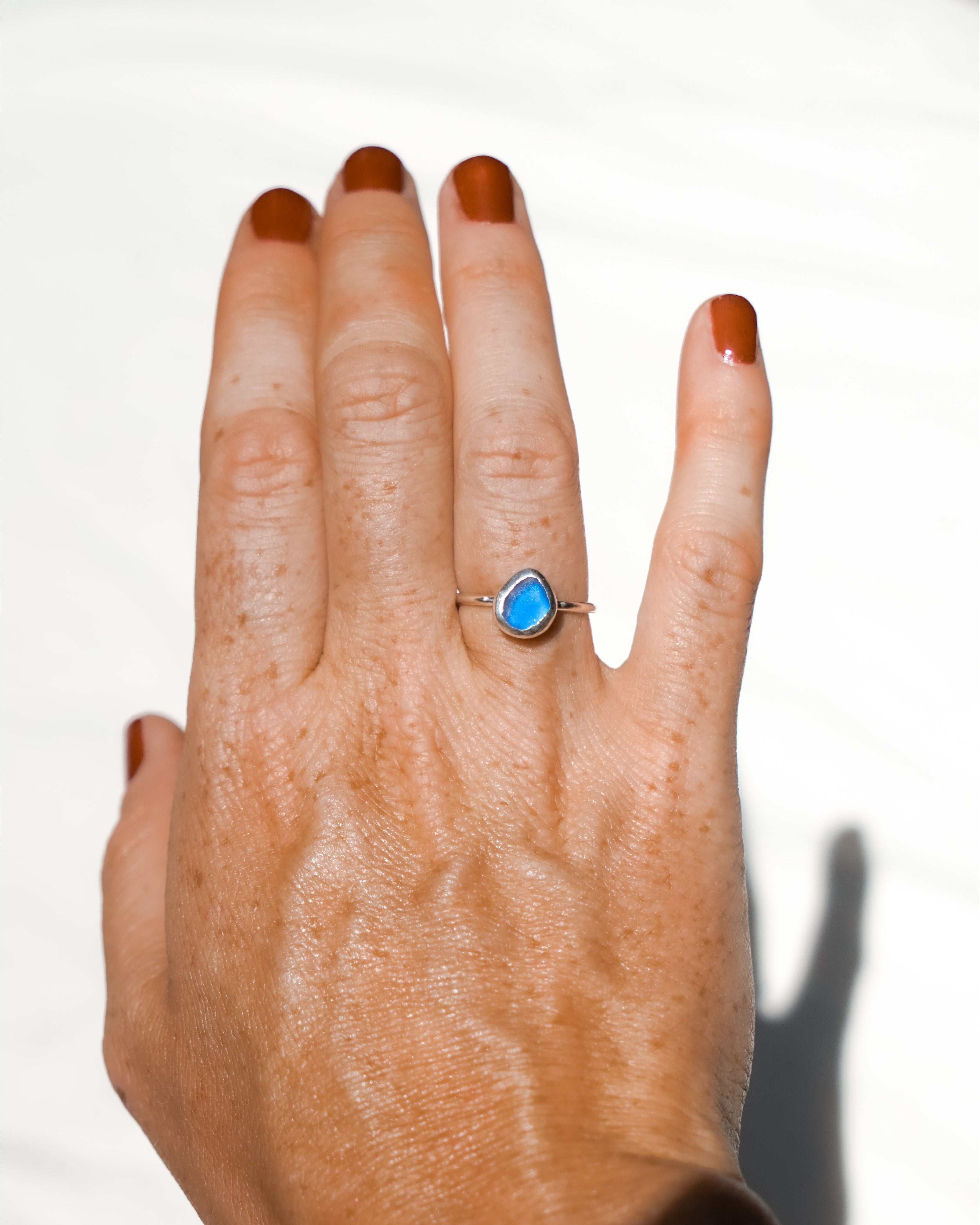 Blue Sea Glass Ring - Handmade from 925 Sterling Silver