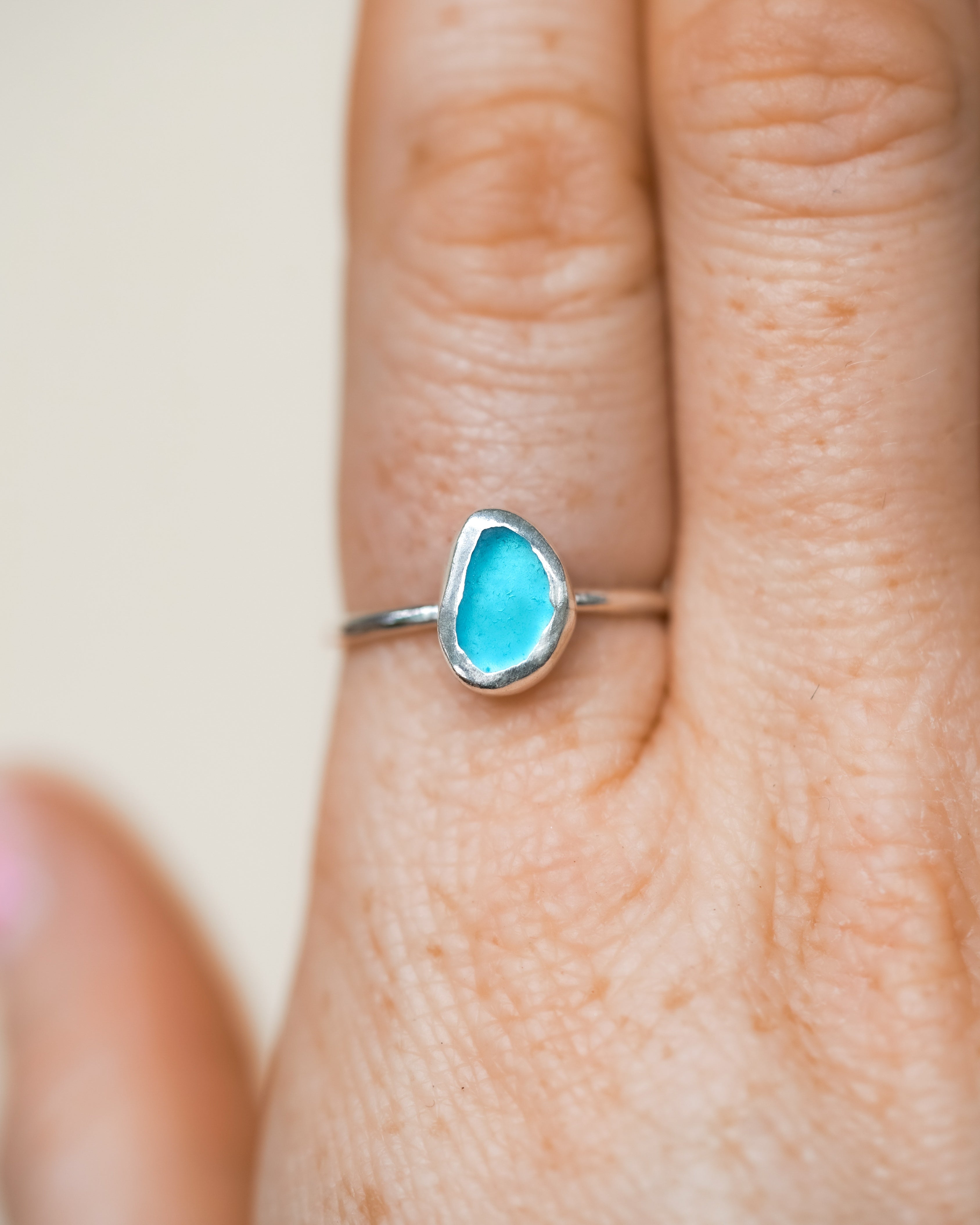 Blue Sea Glass Ring - Handmade from 925 Sterling Silver