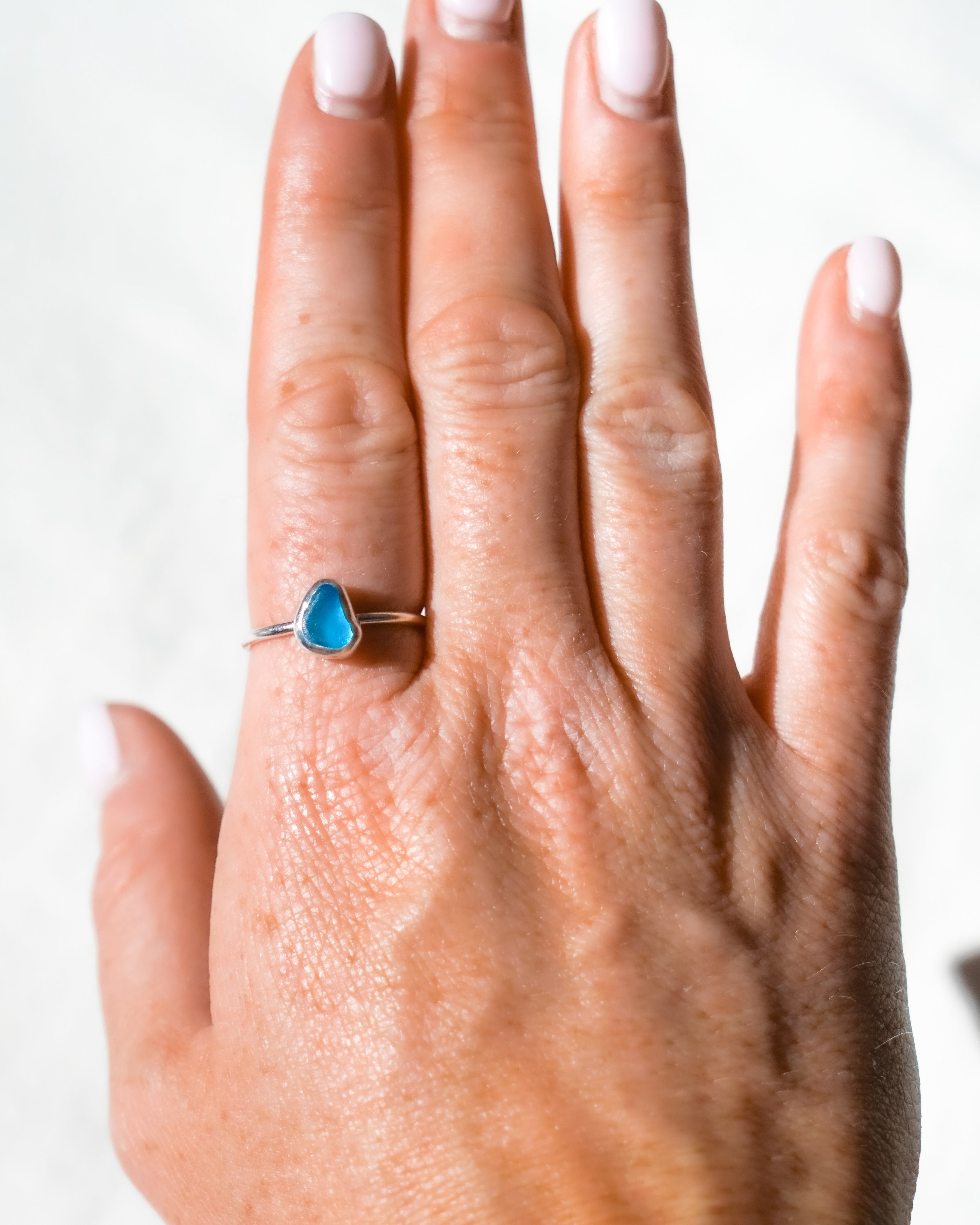Blue Sea Glass Ring - Handmade from 925 Sterling Silver
