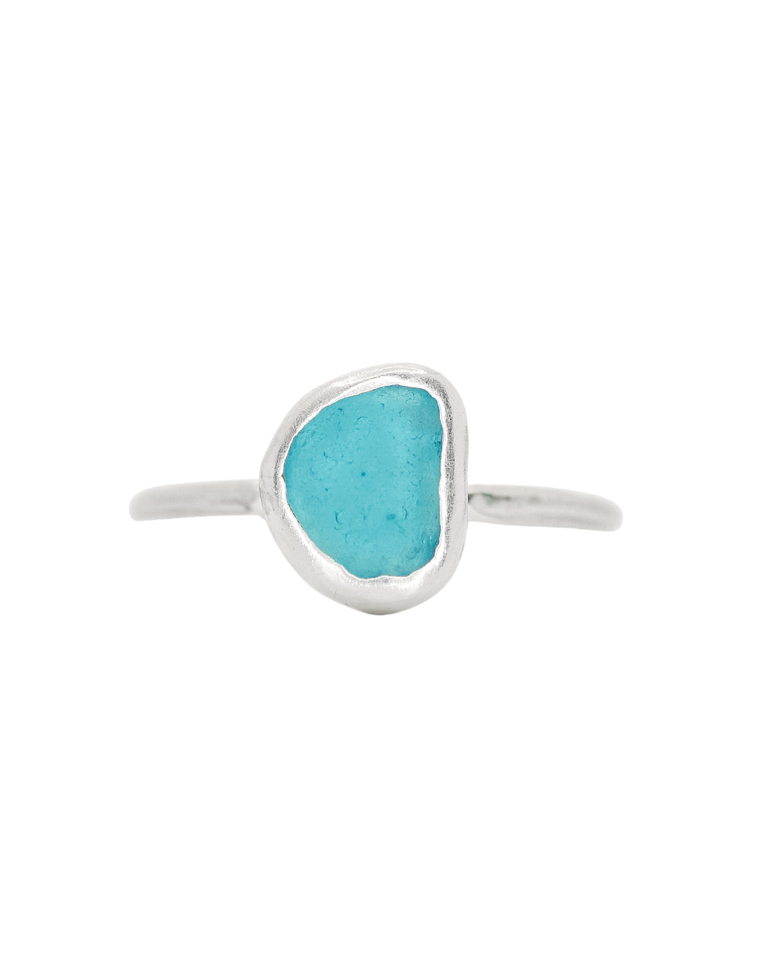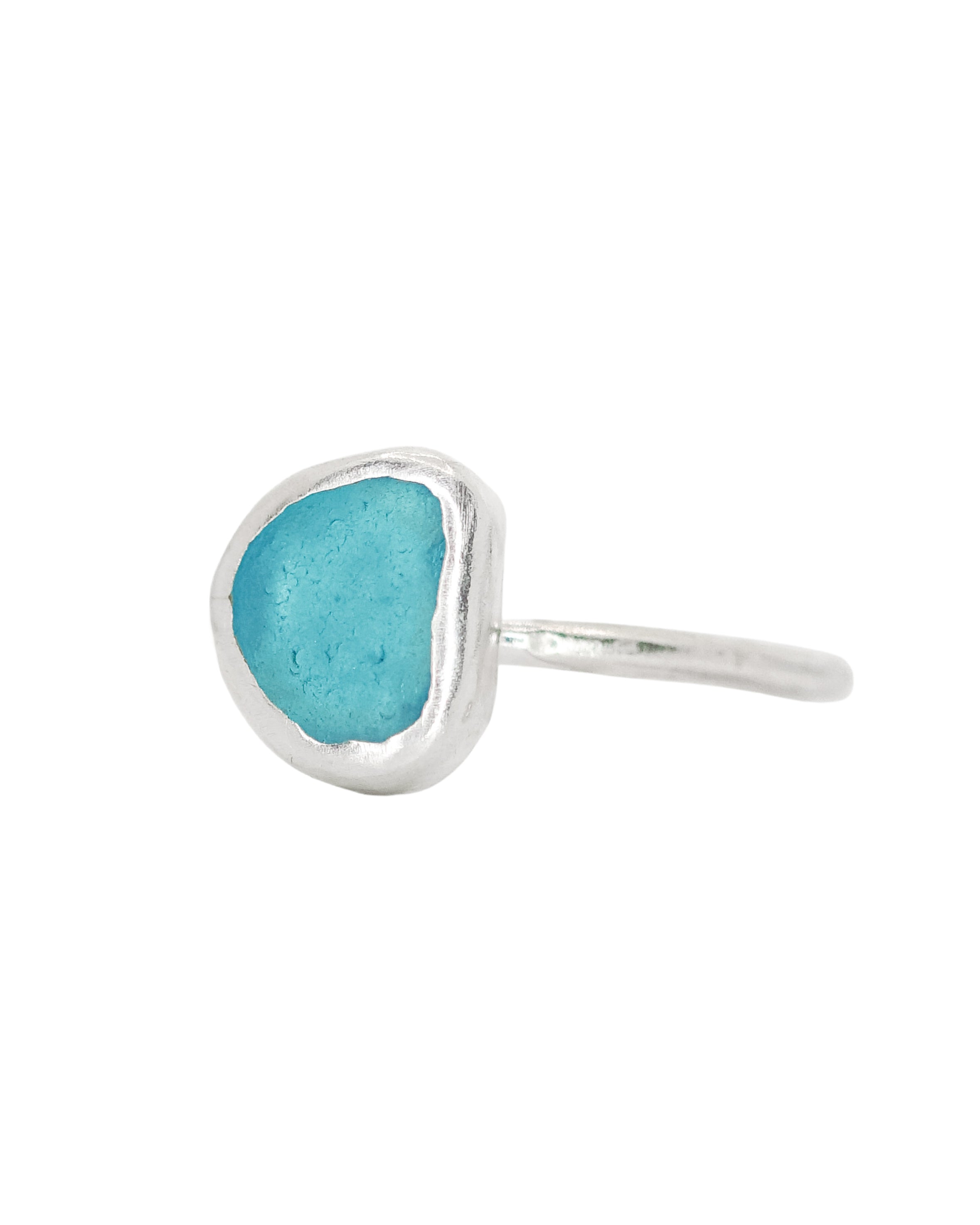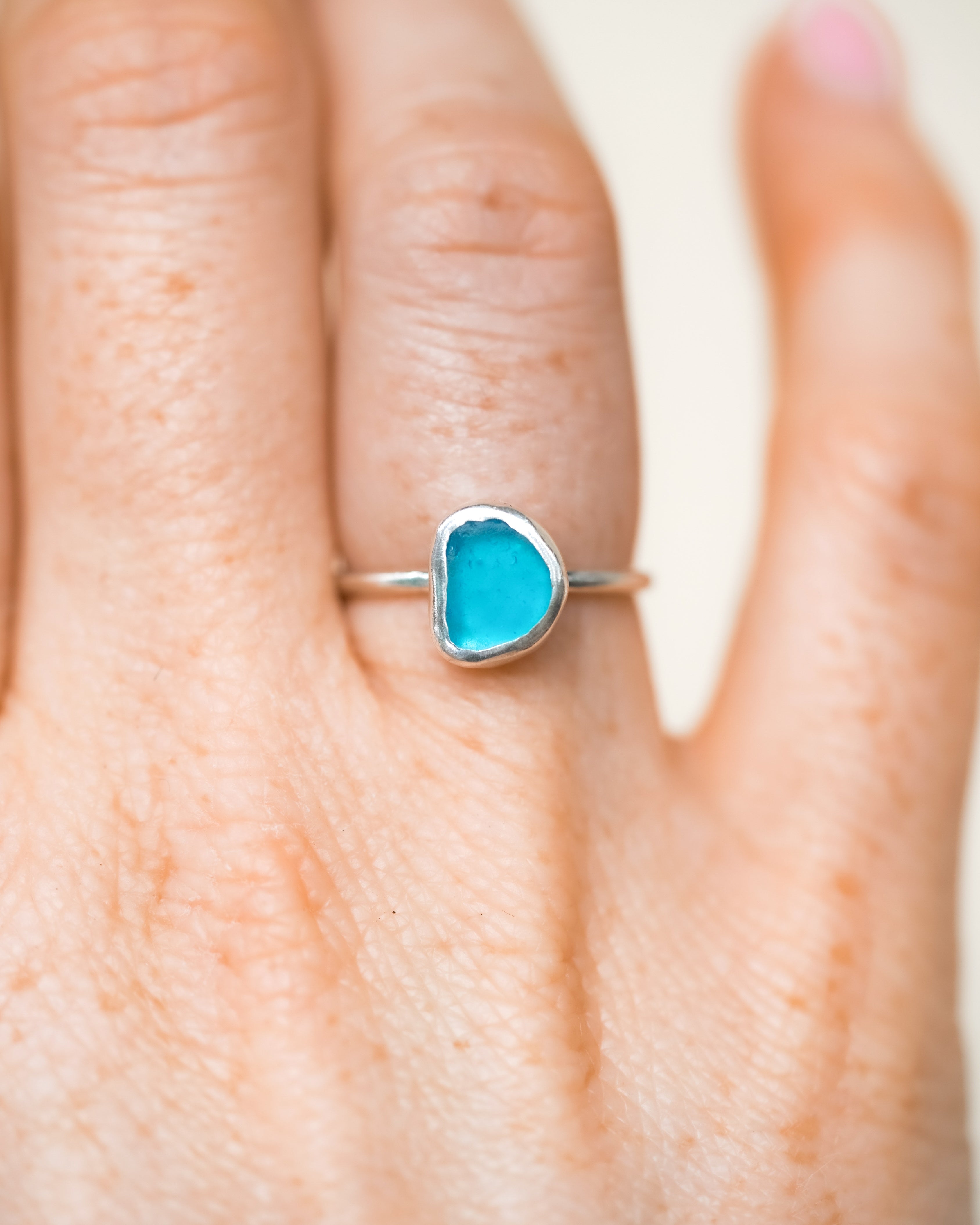 Blue Sea Glass Ring - Handmade from 925 Sterling Silver