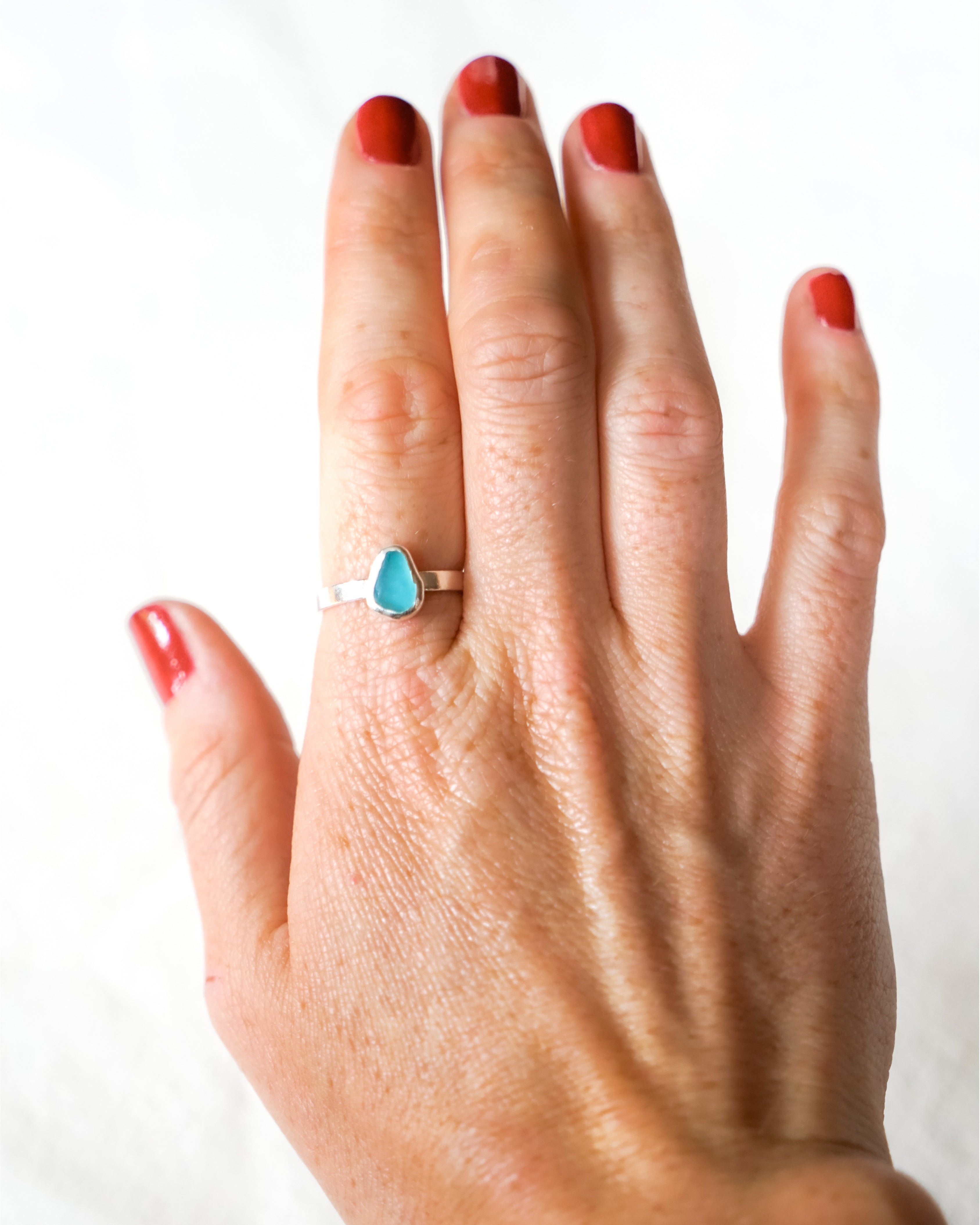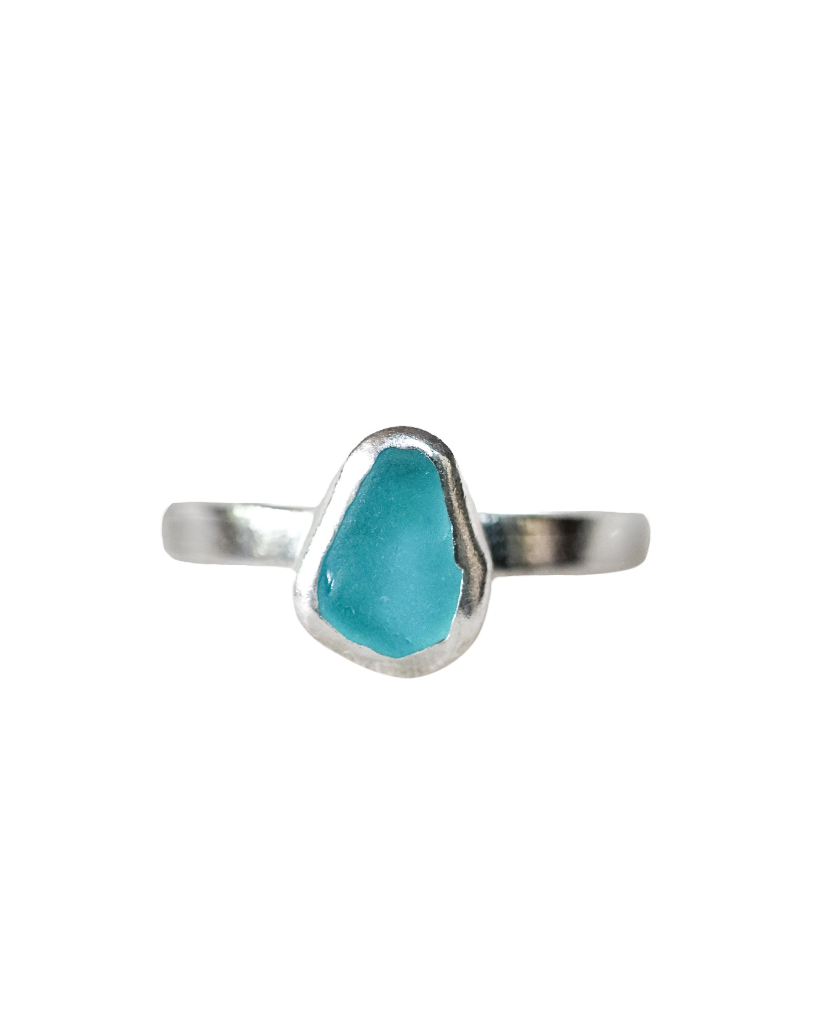 Blue Sea Glass Ring - Handmade from 925 Sterling Silver