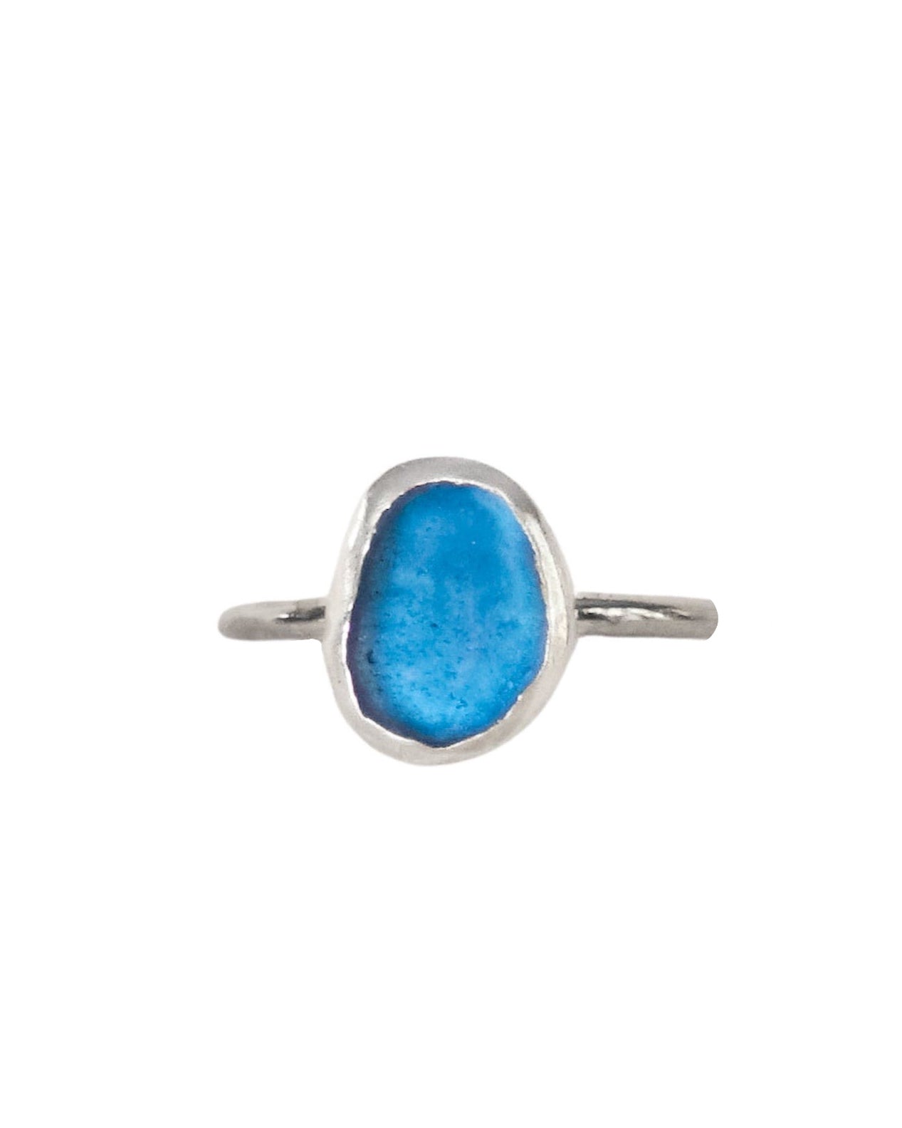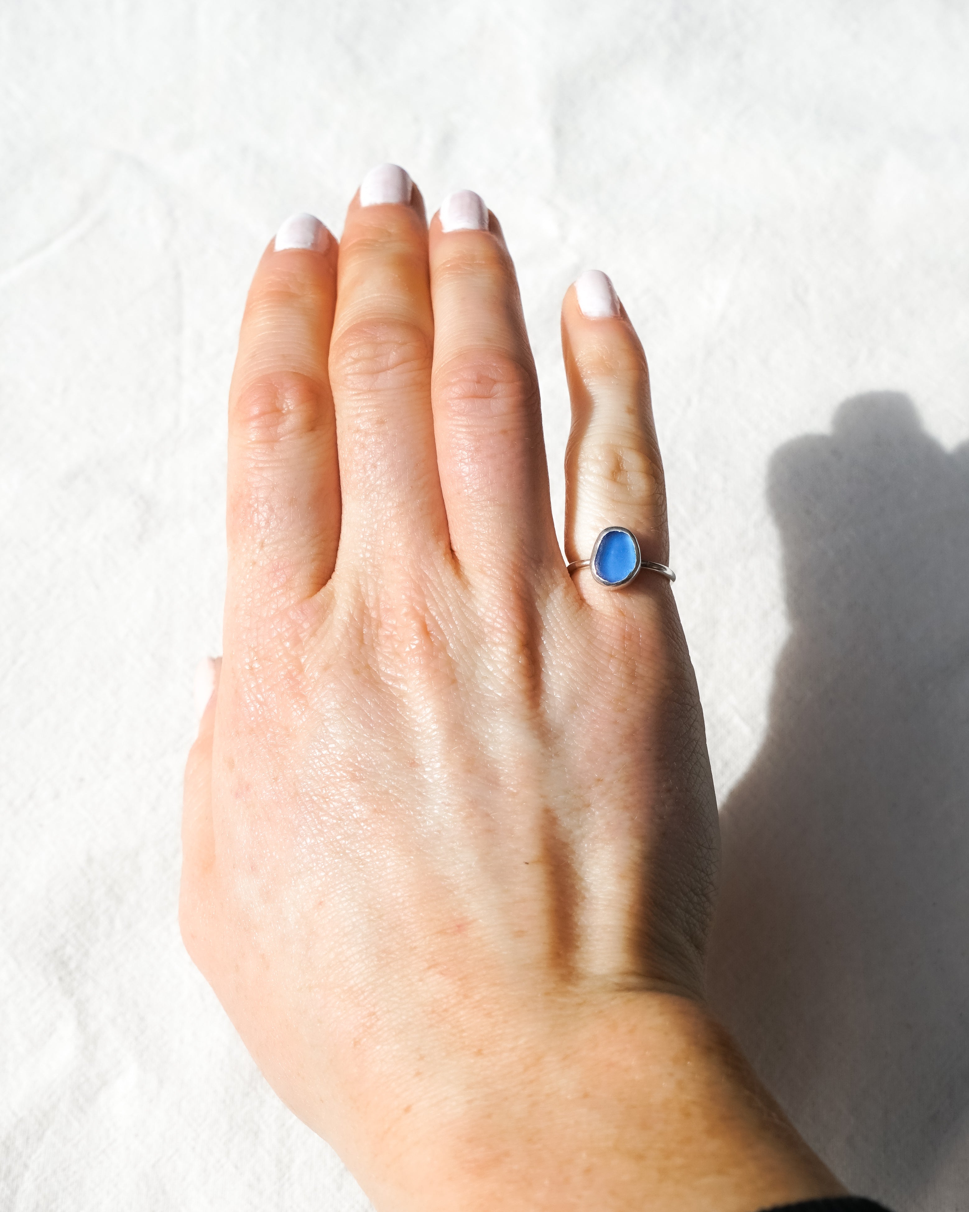 Blue Sea Glass Ring - Handmade from 925 Sterling Silver