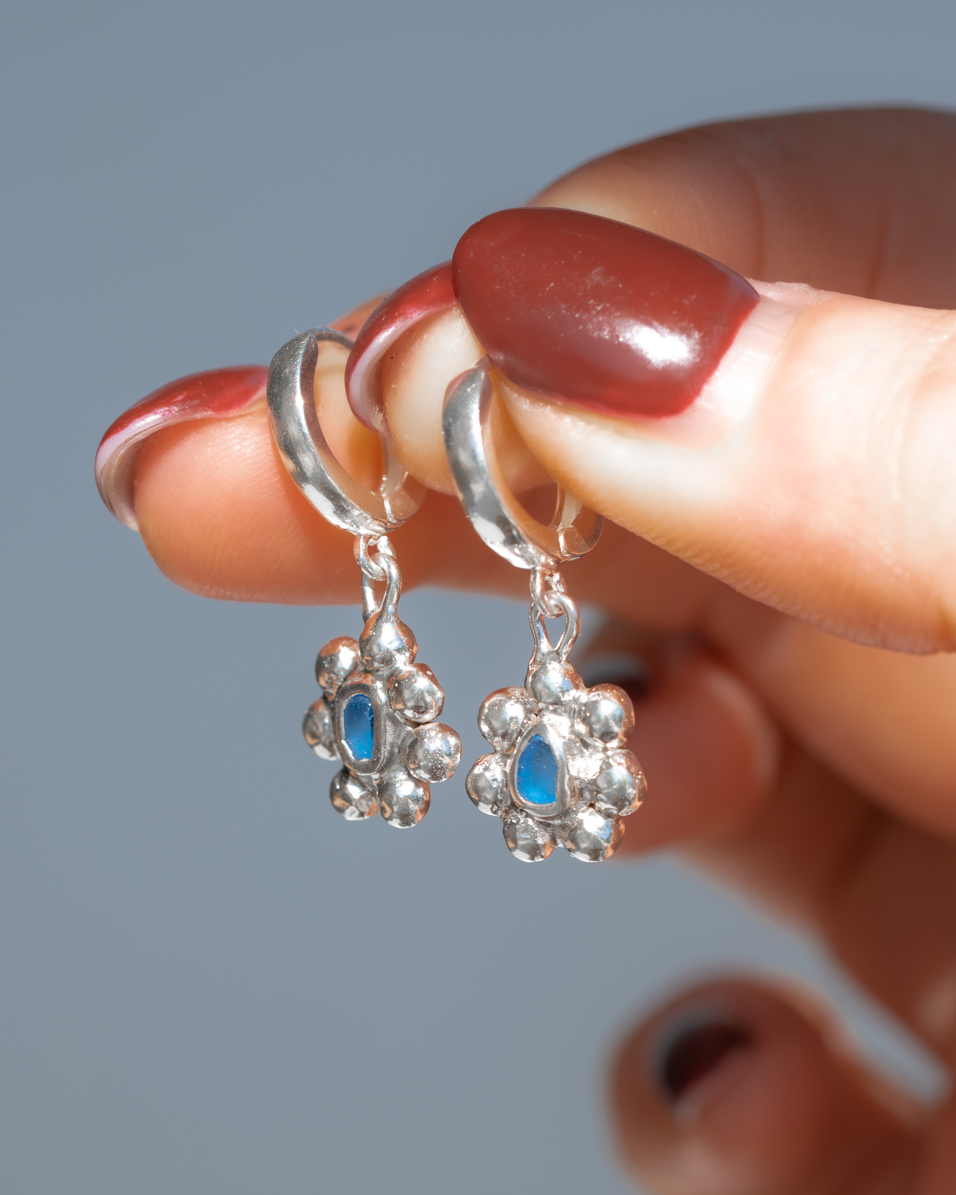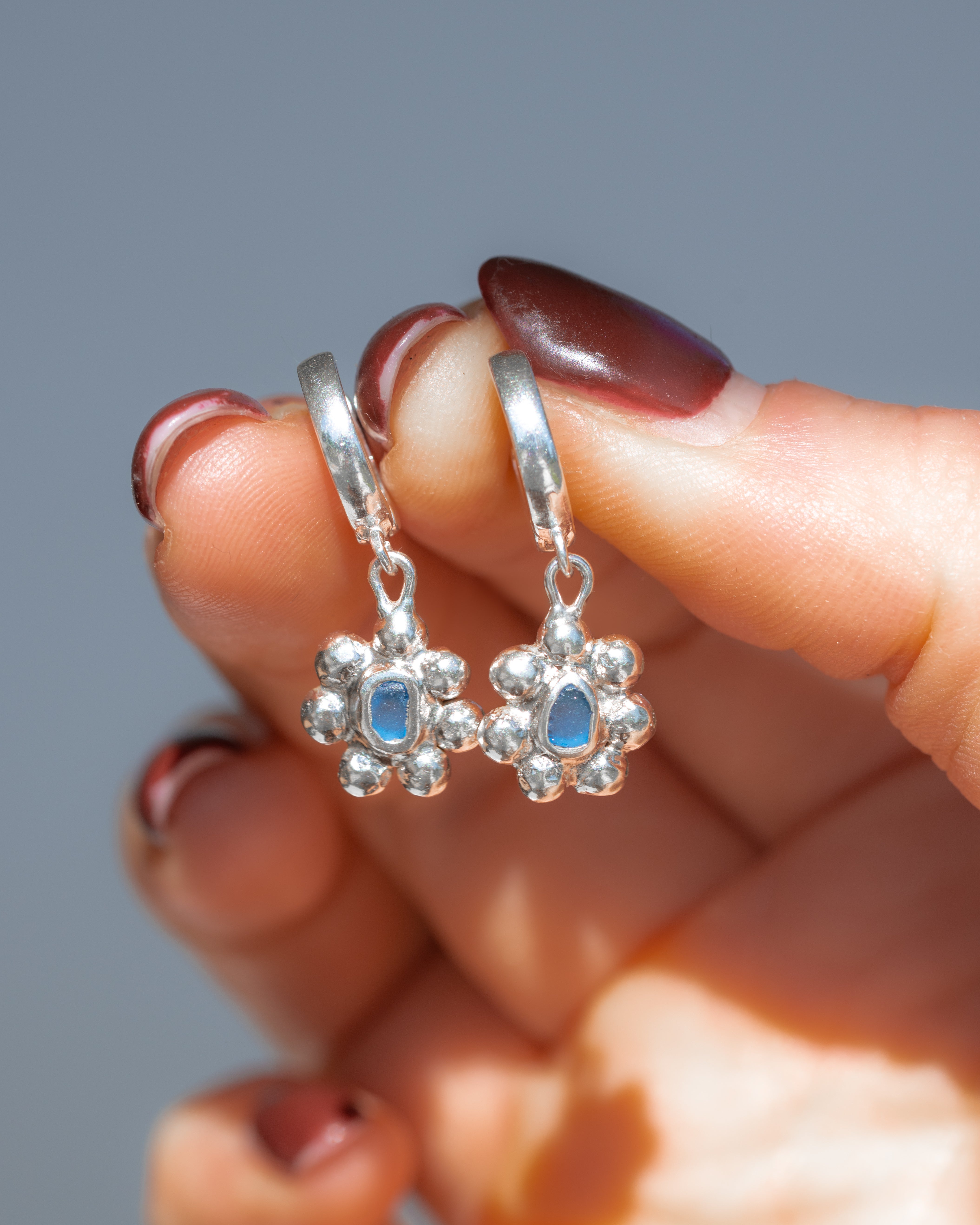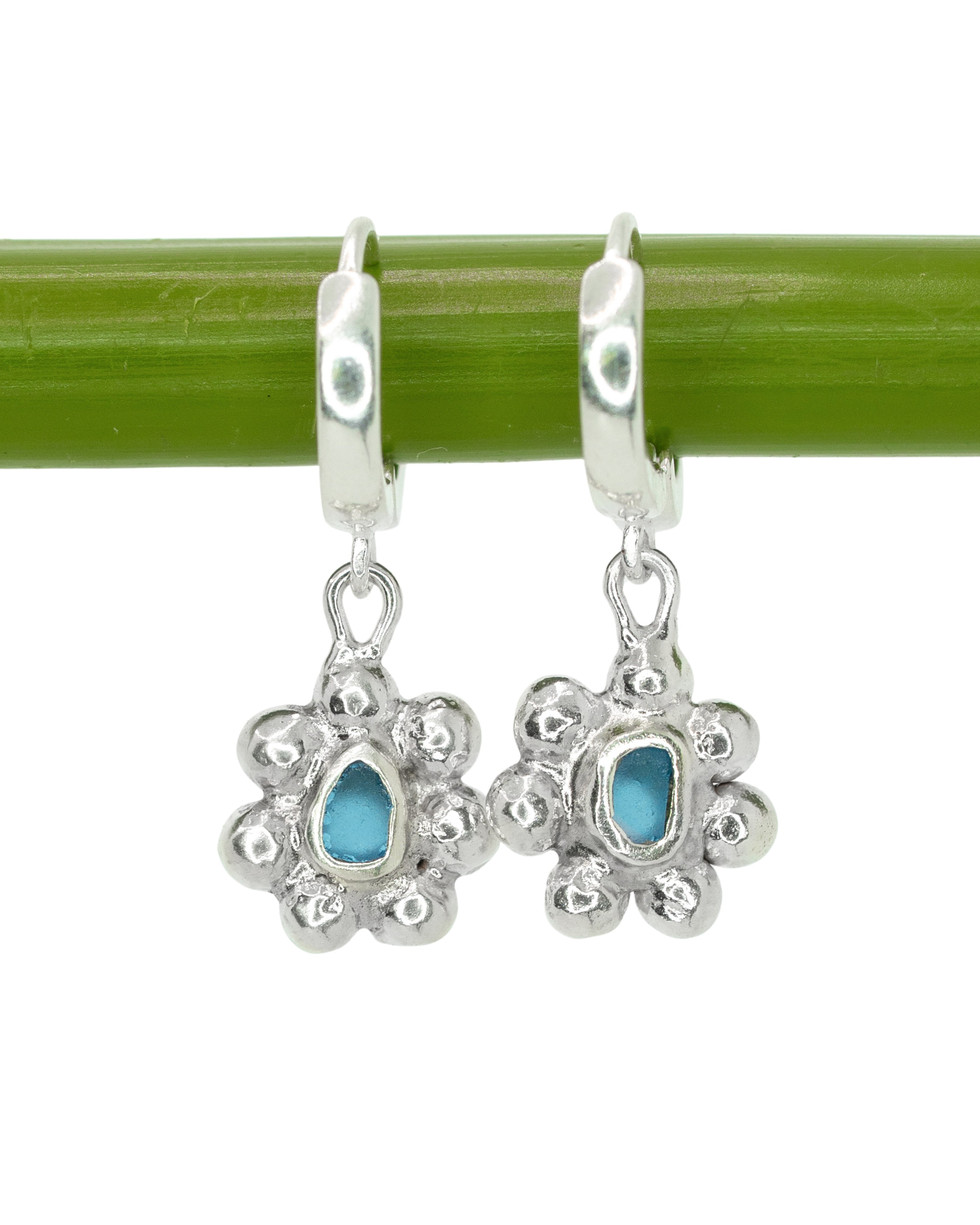 Blue Sea Glass Sun Hoops