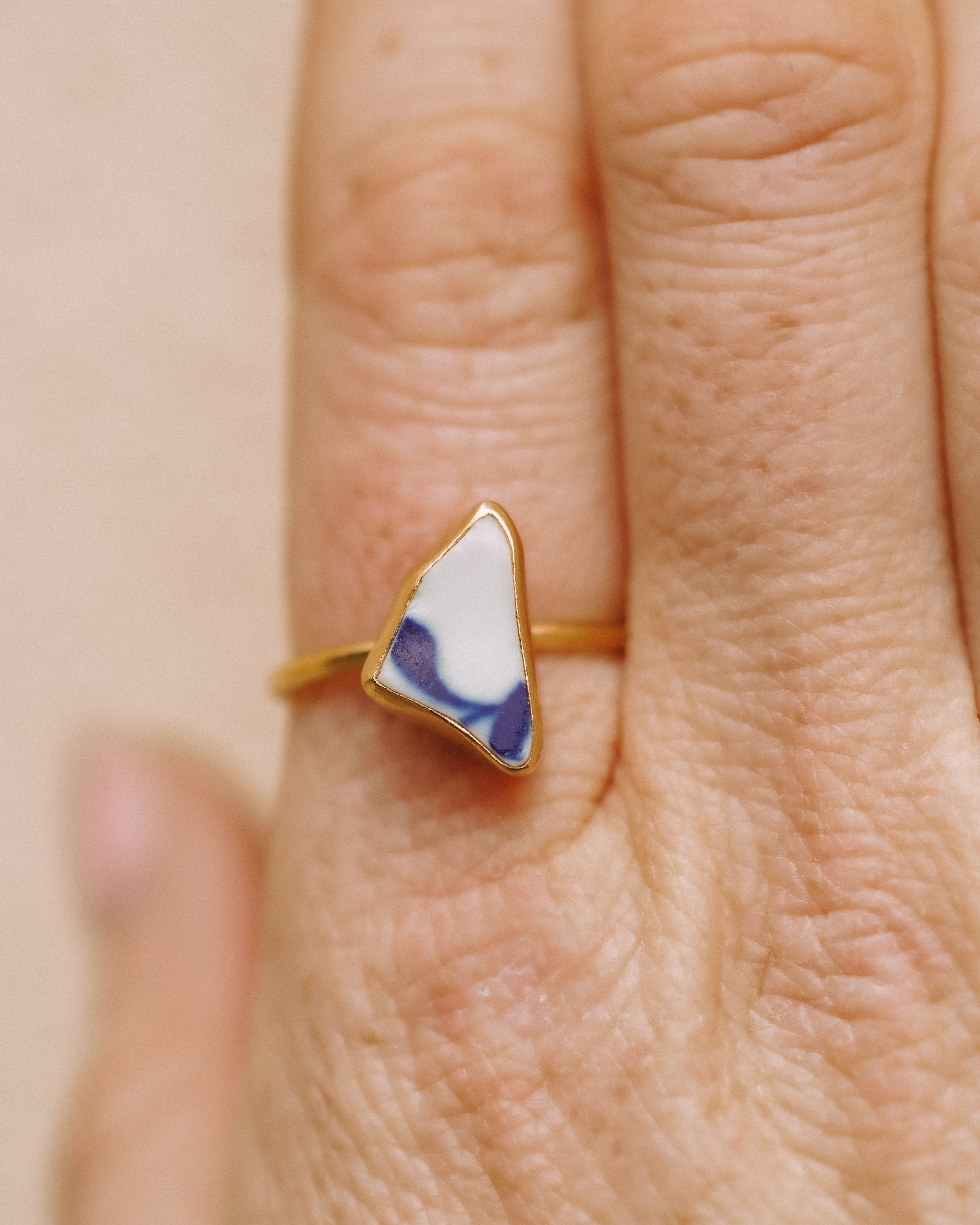This ring has been made from a fragment of ceramic that was found in the Flinders Ranges here in South Australia. It has been carefully encased, preserving its charm and beauty. Each piece tells a unique story, combining history and craftsmanship, making it a cherished accessory to be worn and admired for lifetimes to come 🤍