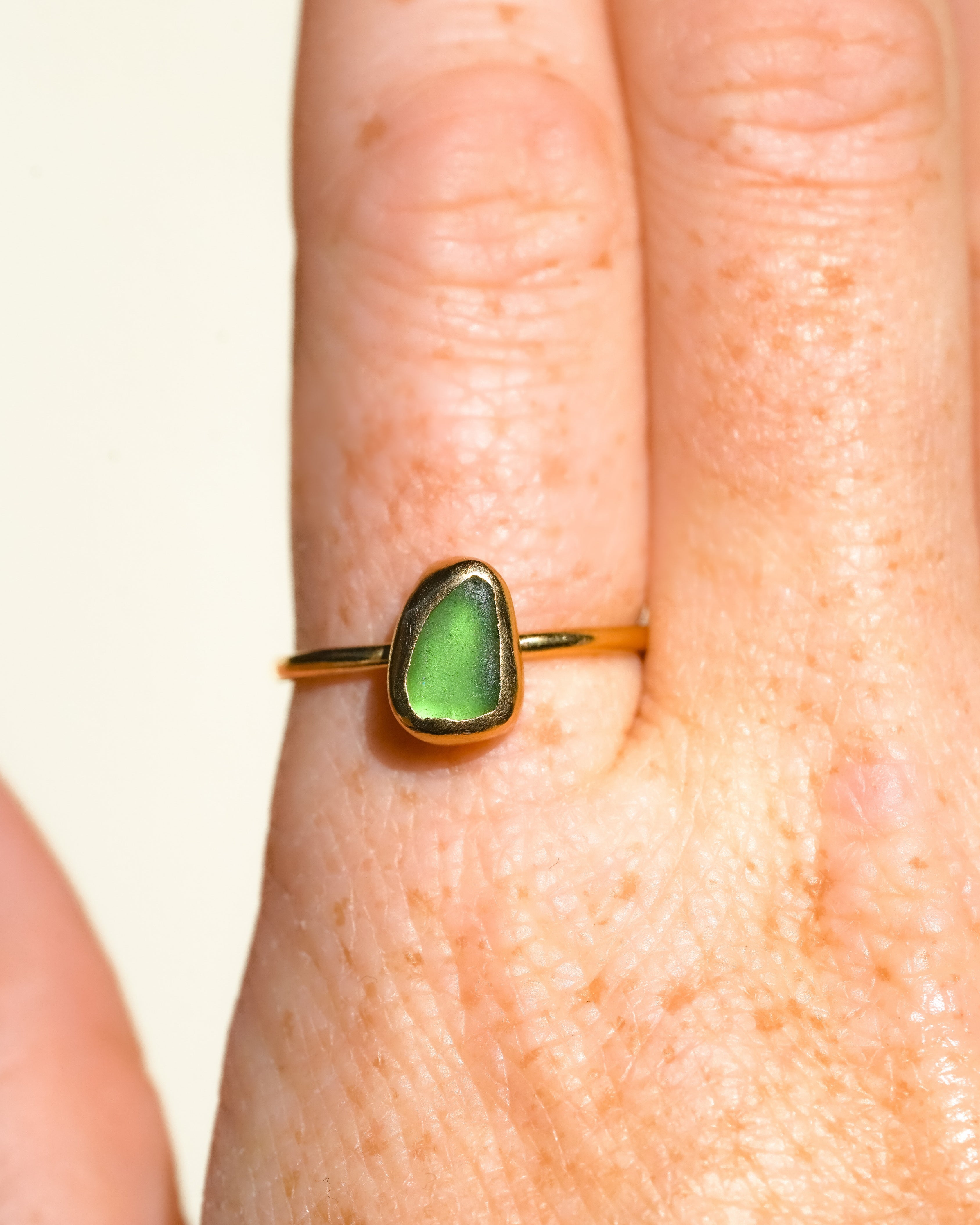 Green Sea Glass, Gold Vermeil - Size S