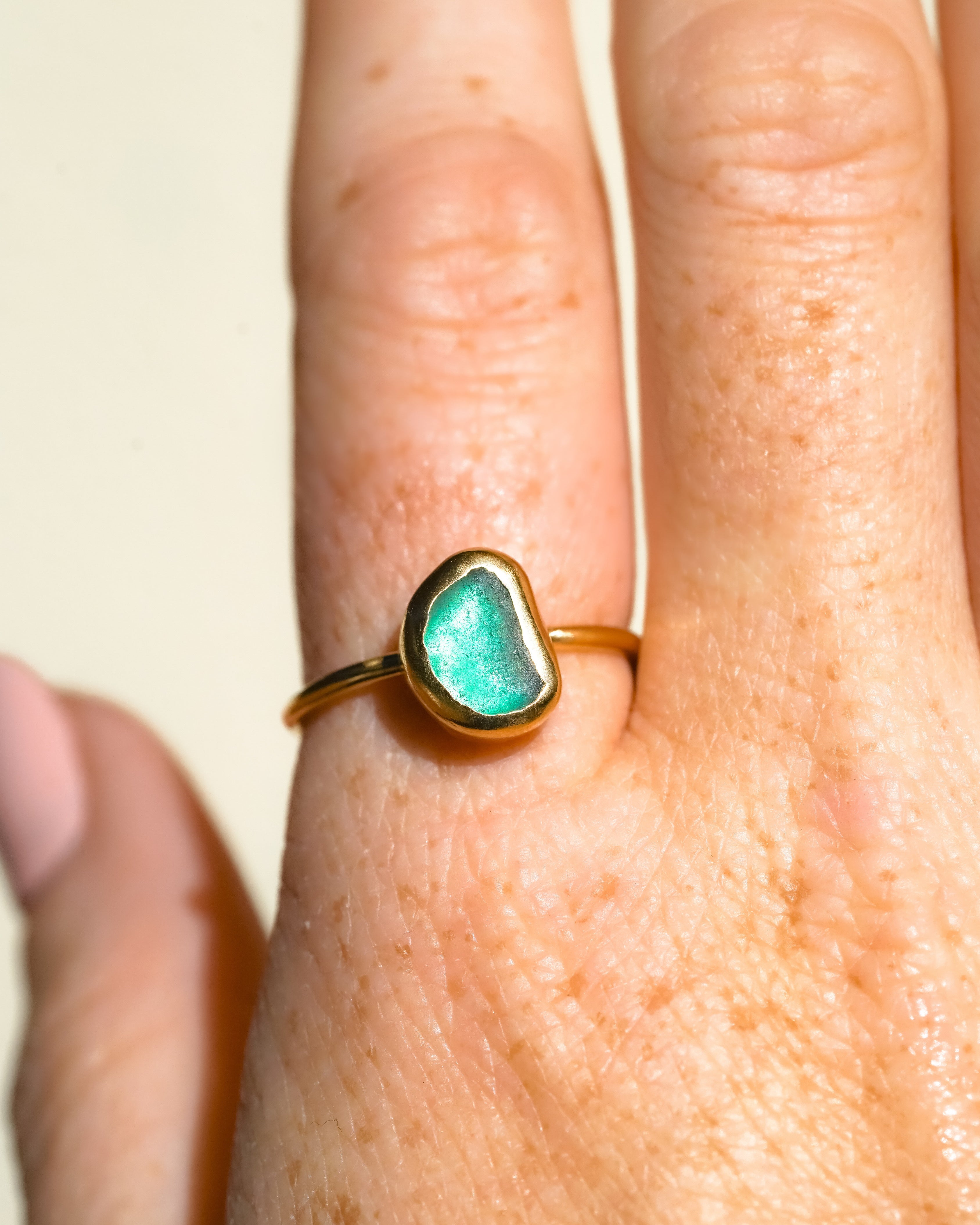 Green Sea Glass, Gold Vermeil - Size S