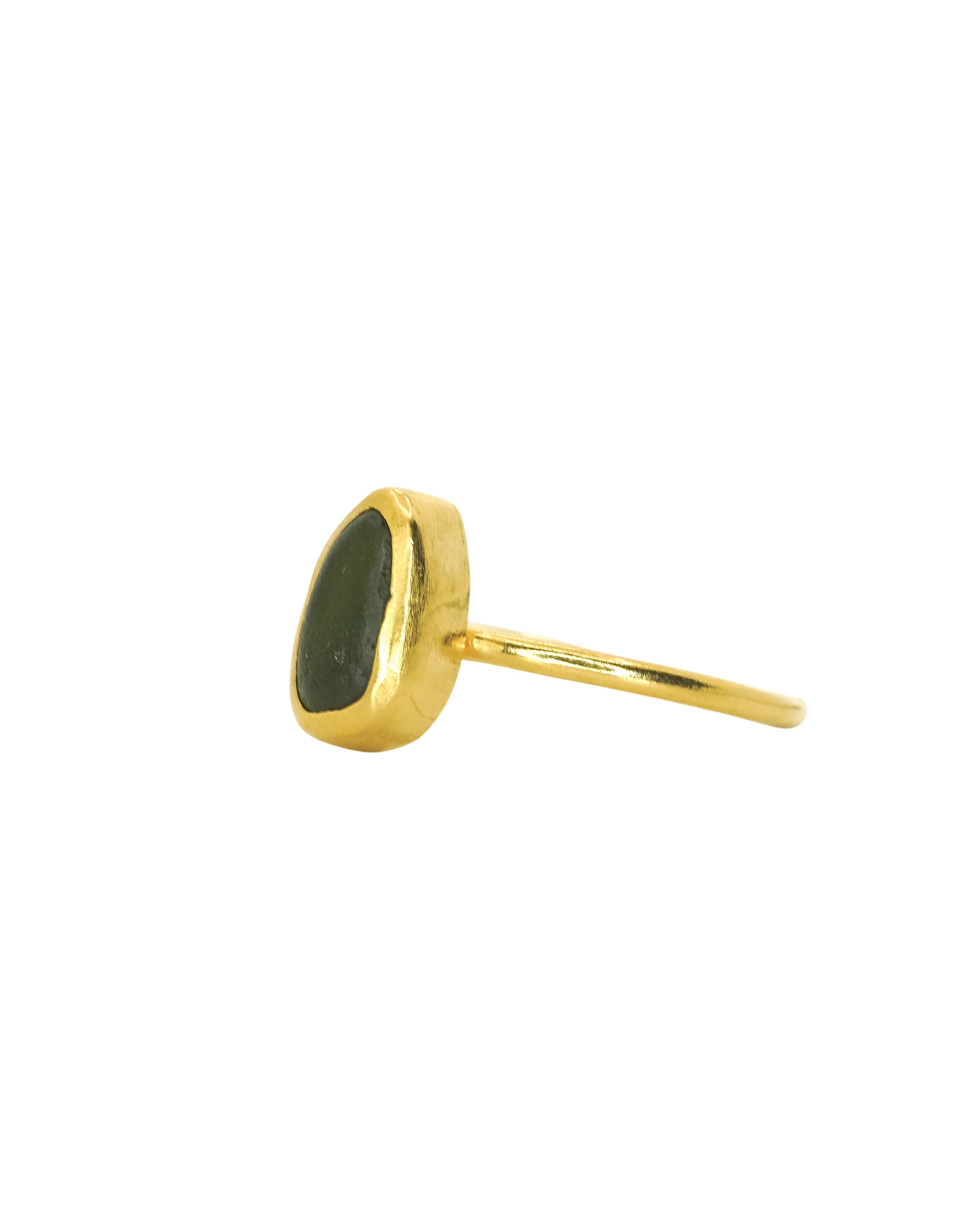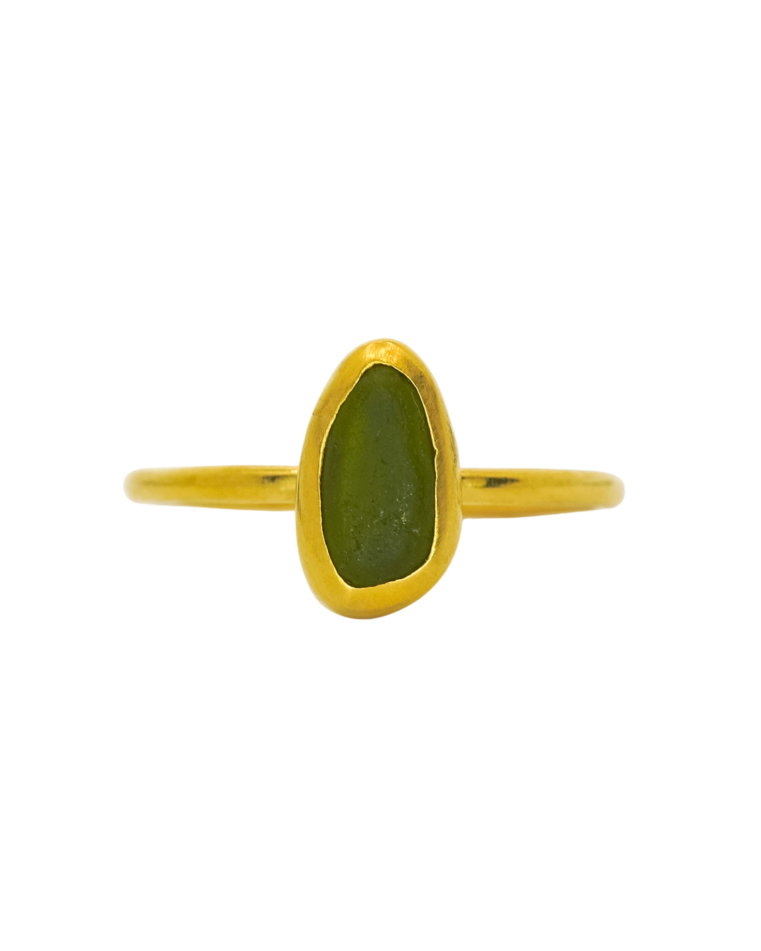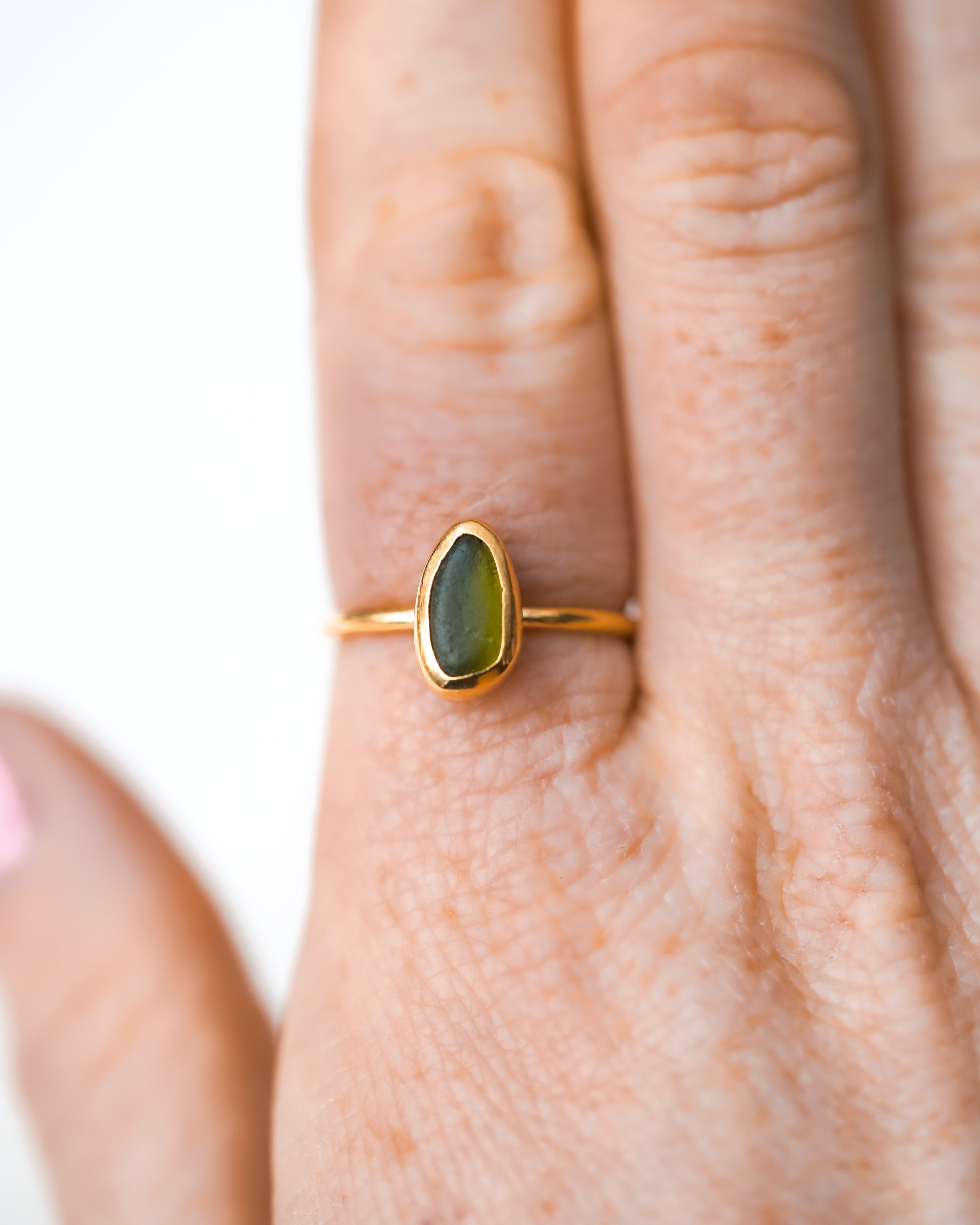 Green Sea Glass Ring - Handmade from 925 Sterling Silver plated with a 10 micron thick and hard layer of 24K (Gold Vermeil)