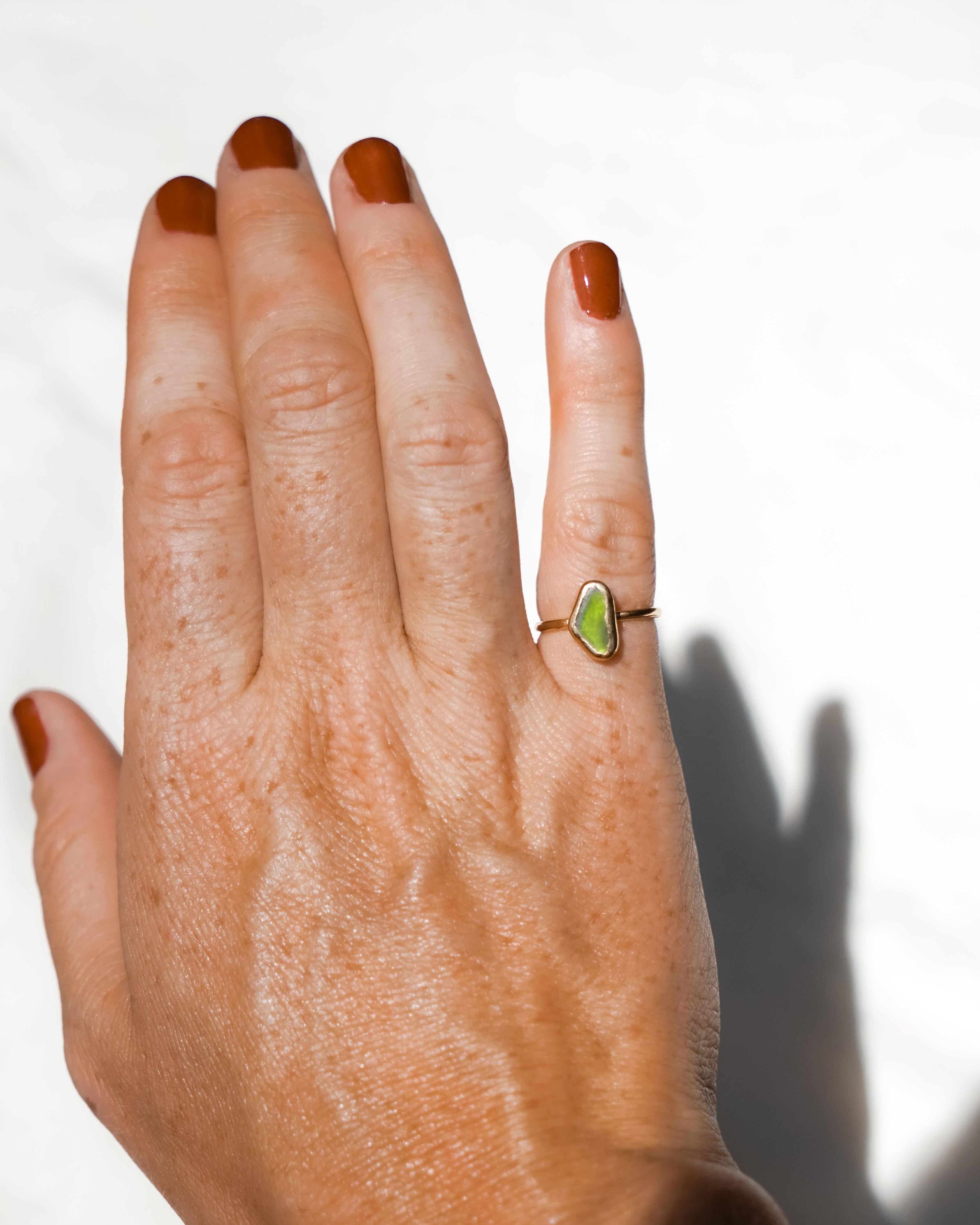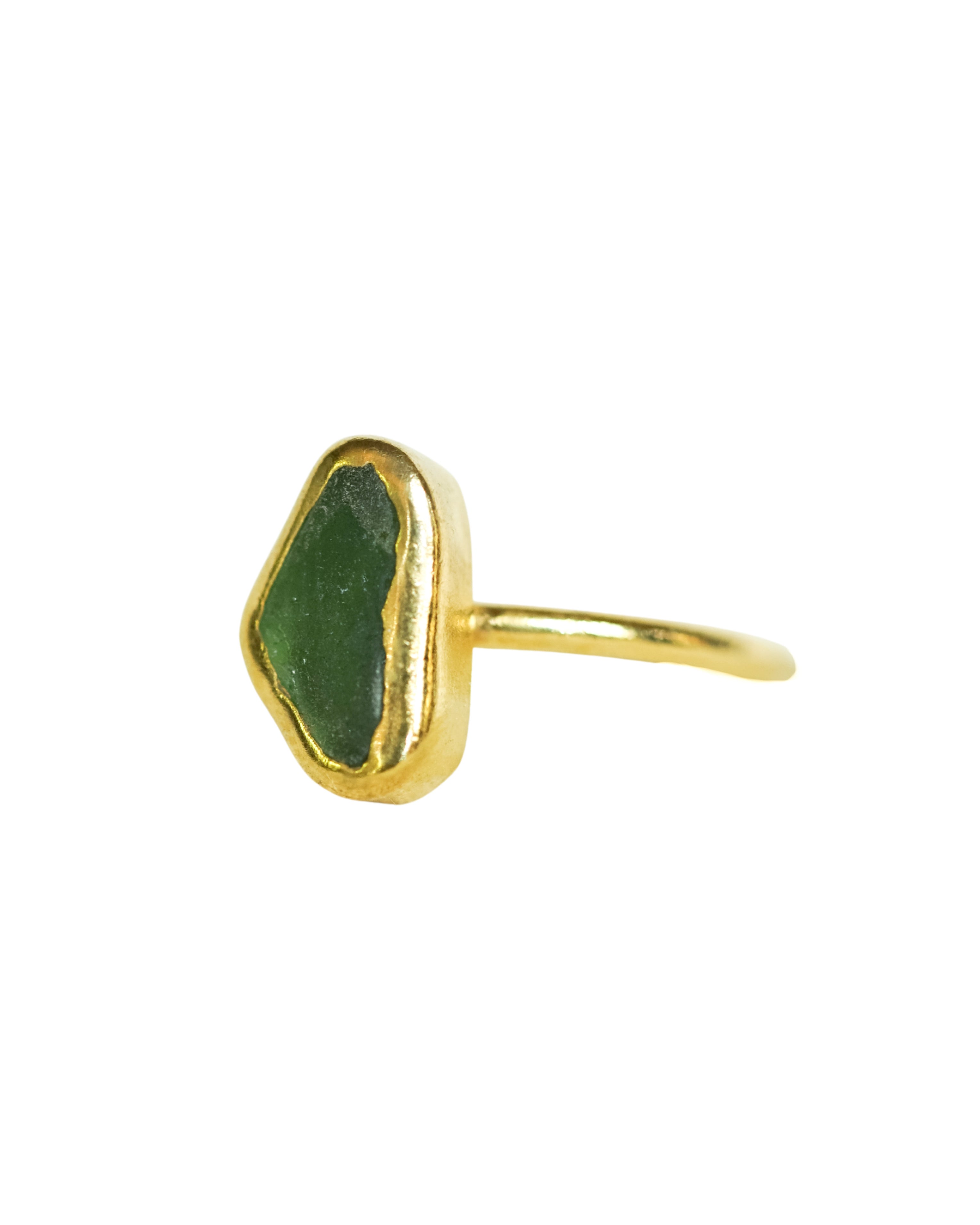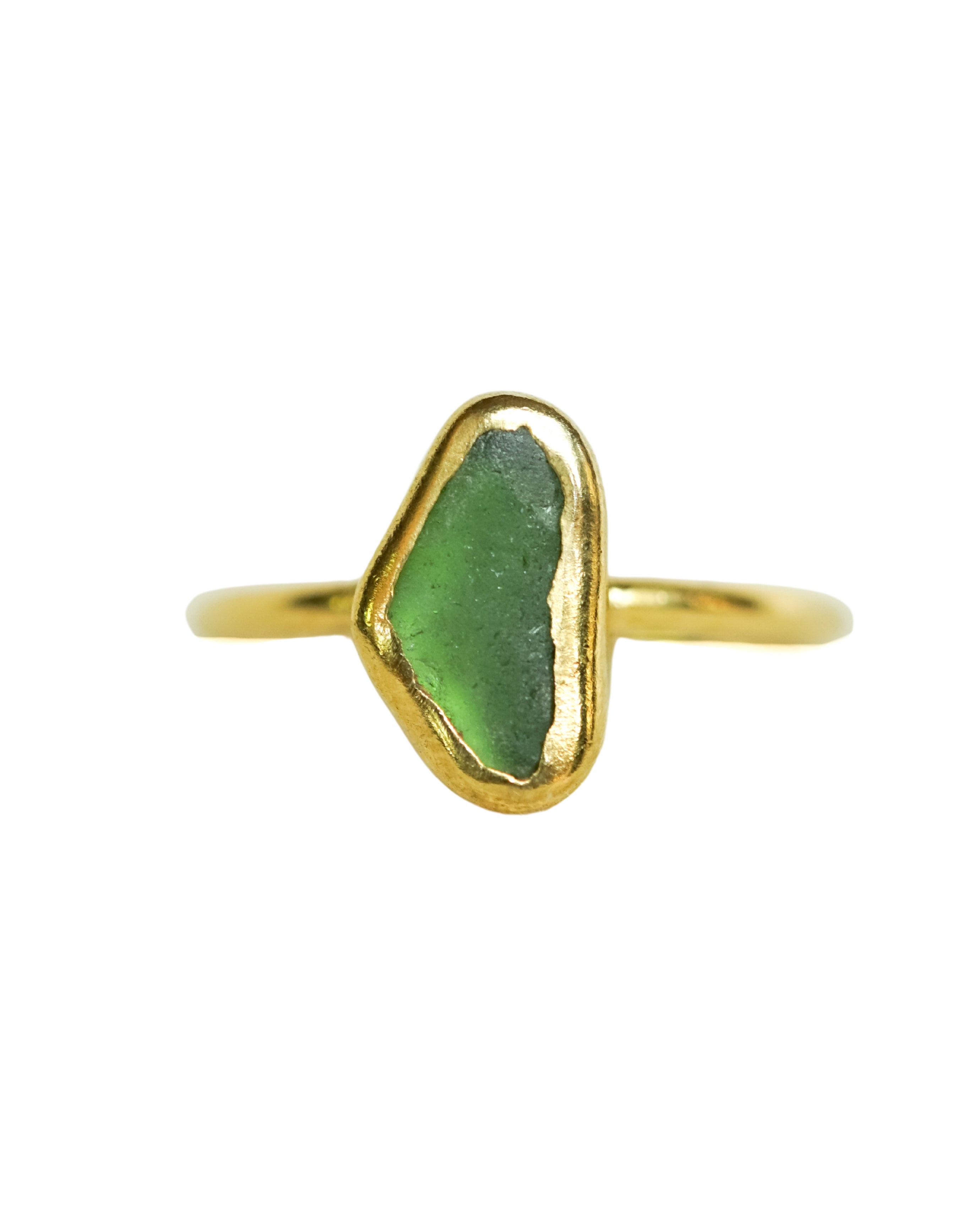 Green Sea Glass Ring - Handmade from 925 Sterling Silver plated with a 10 micron thick and hard layer of 24K (Gold Vermeil)