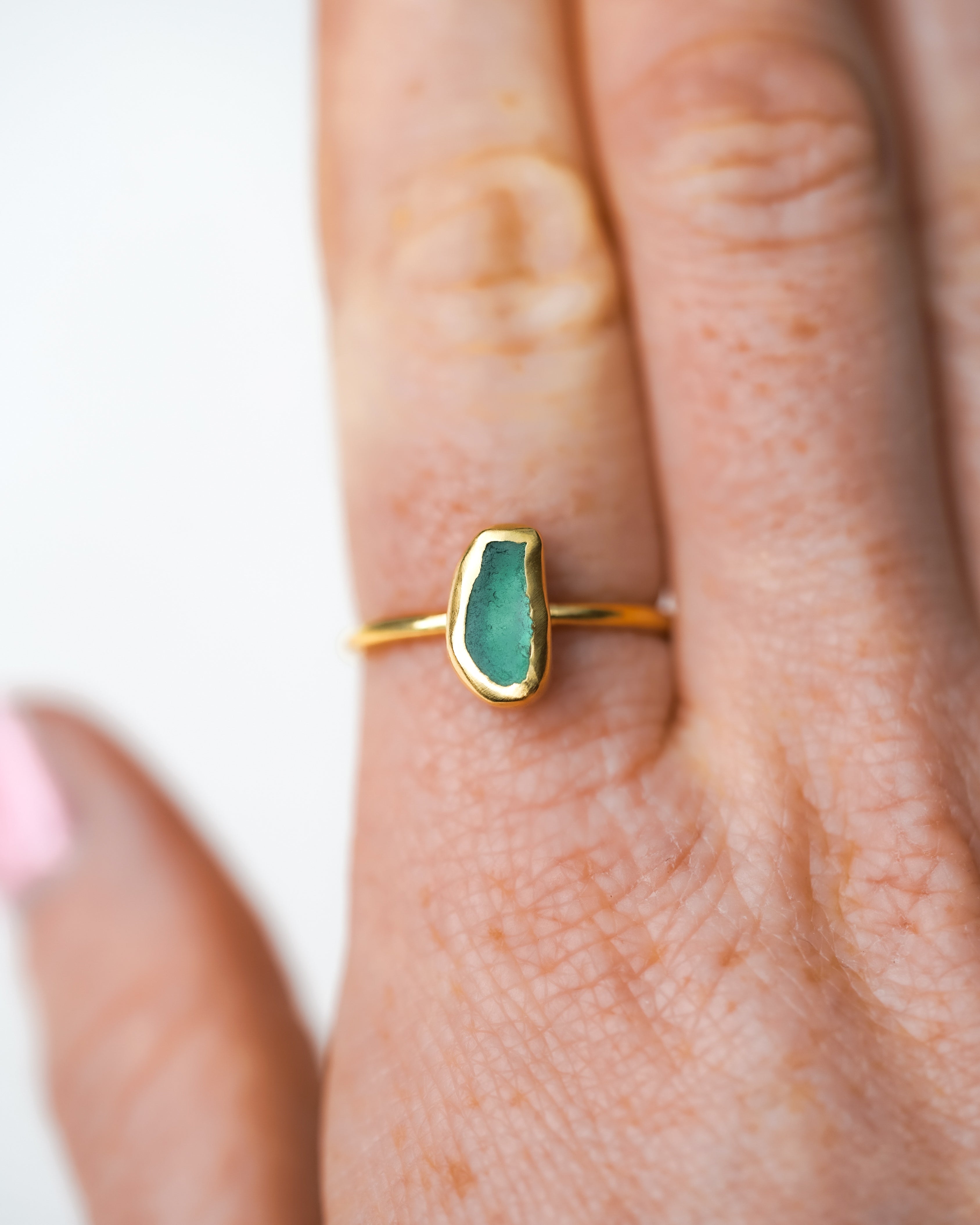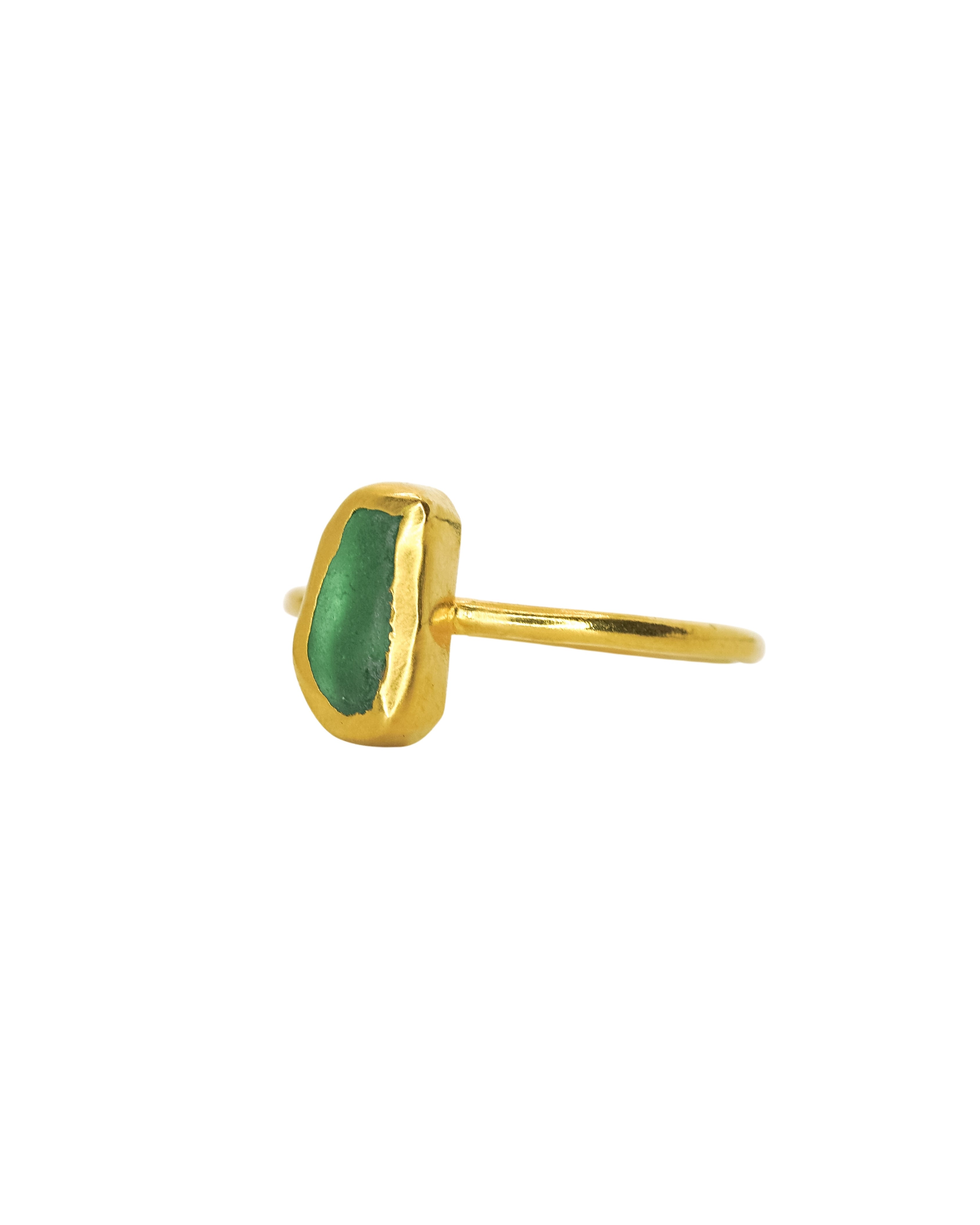 Green Sea Glass, Gold Vermeil - Size Q