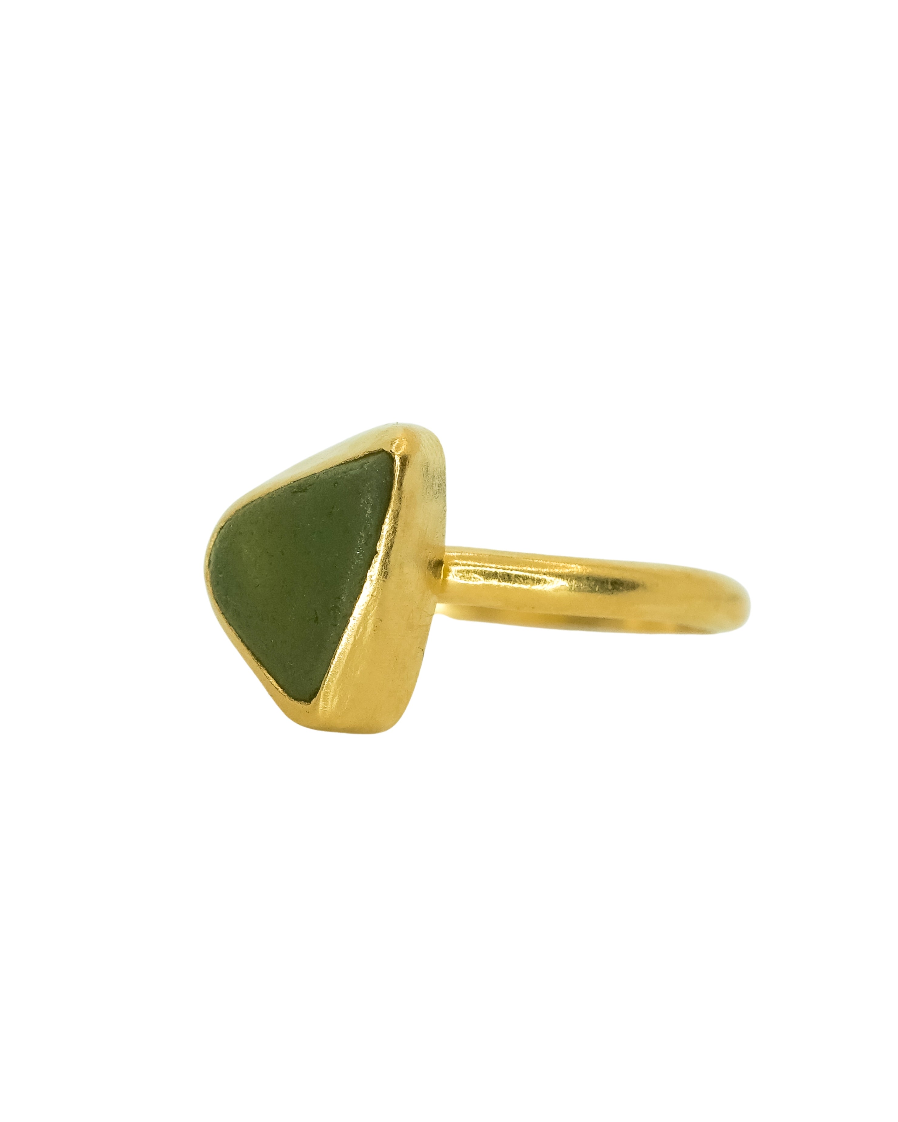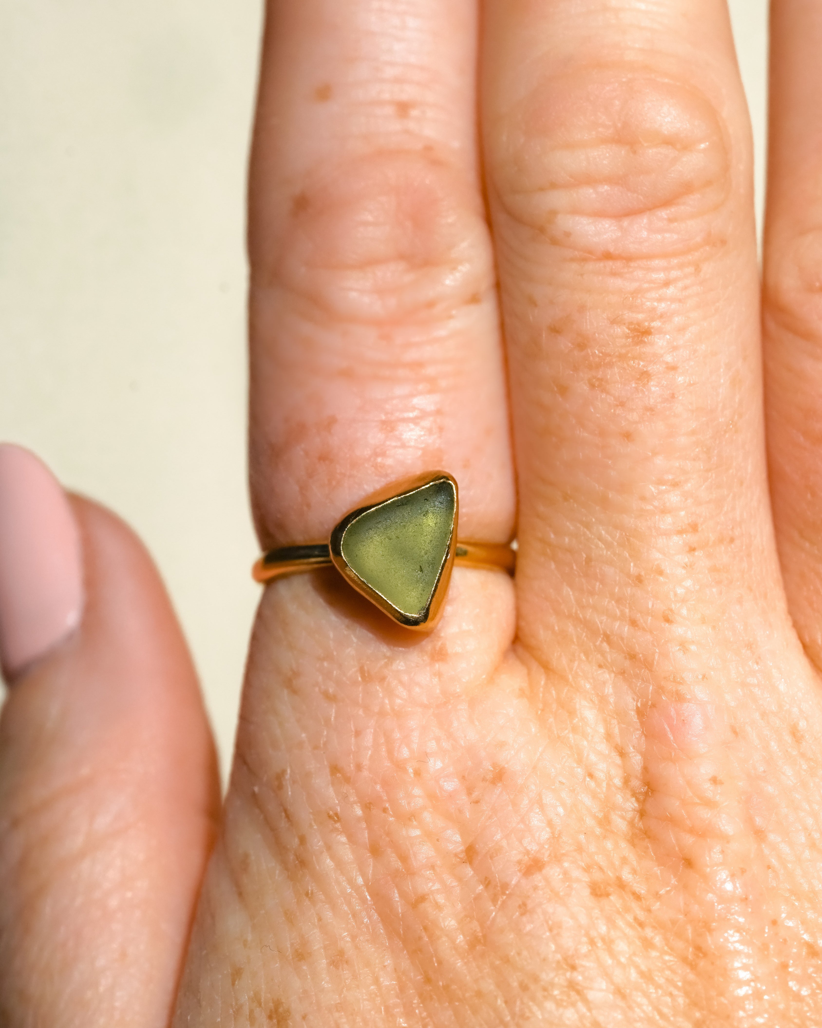 Green Sea Glass Ring - Handmade from 925 Sterling Silver plated with a 10 micron thick and hard layer of 24K (Gold Vermeil)