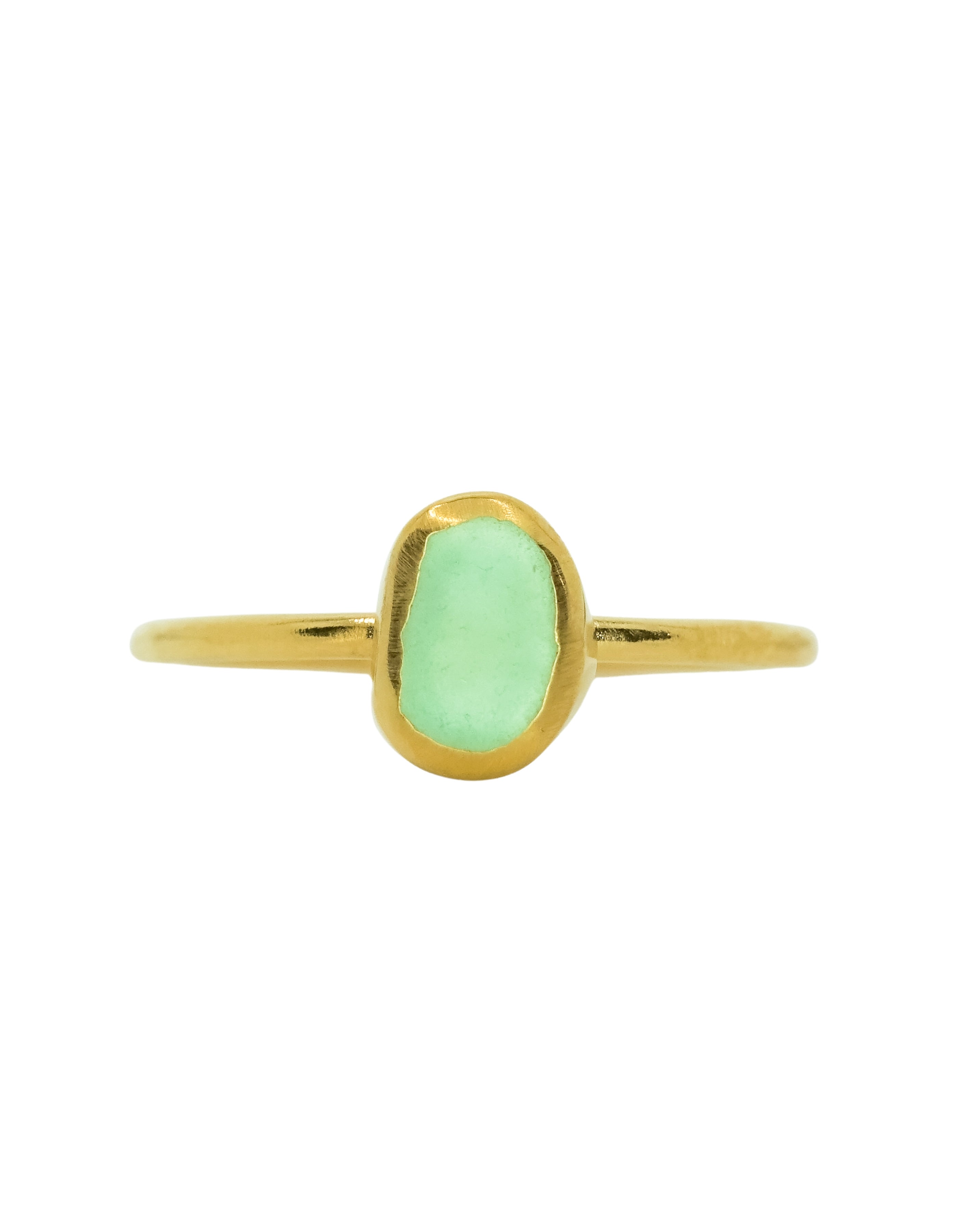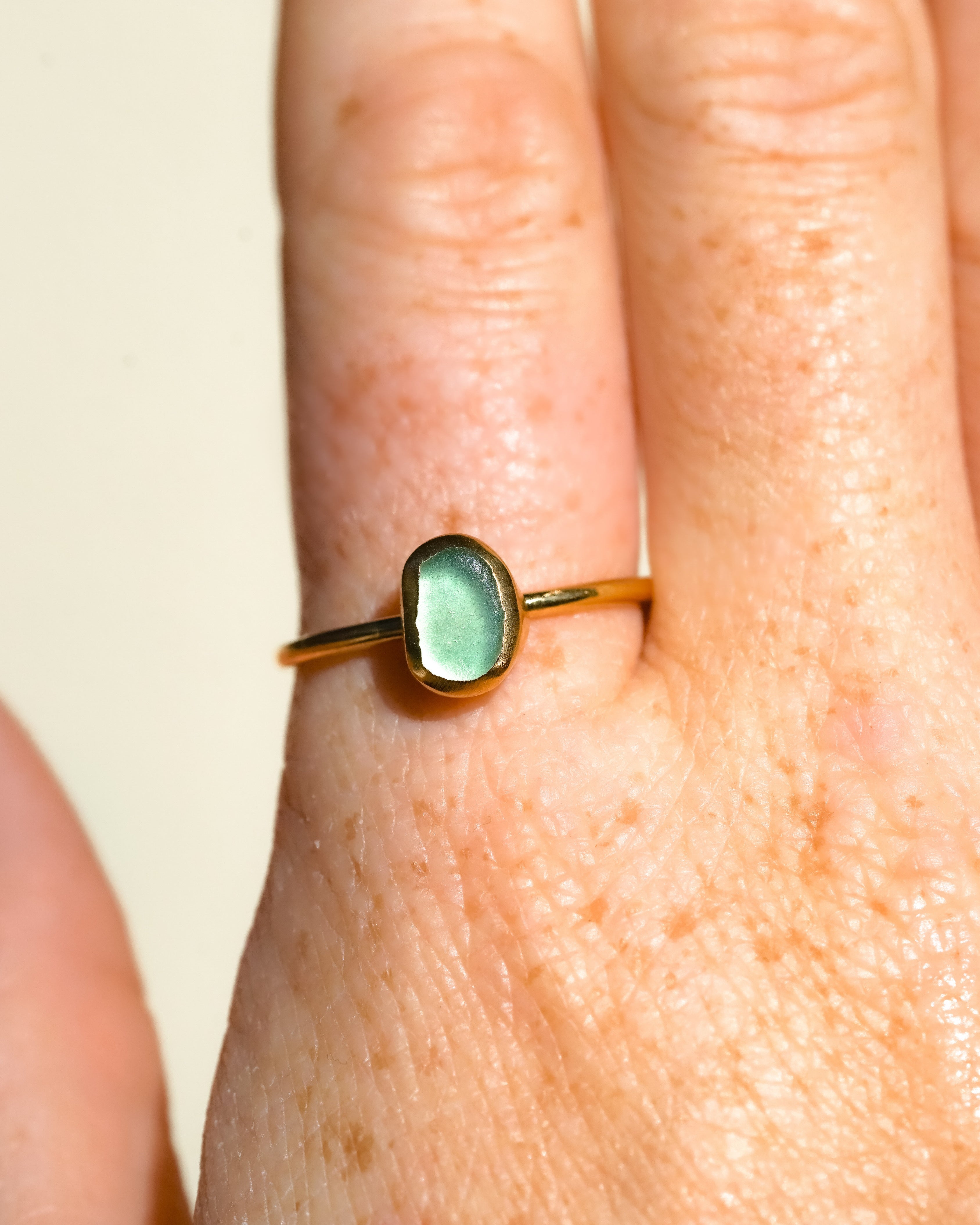 Green Sea Glass Ring - Handmade from 925 Sterling Silver plated with a 10 micron thick and hard layer of 24K (Gold Vermeil)