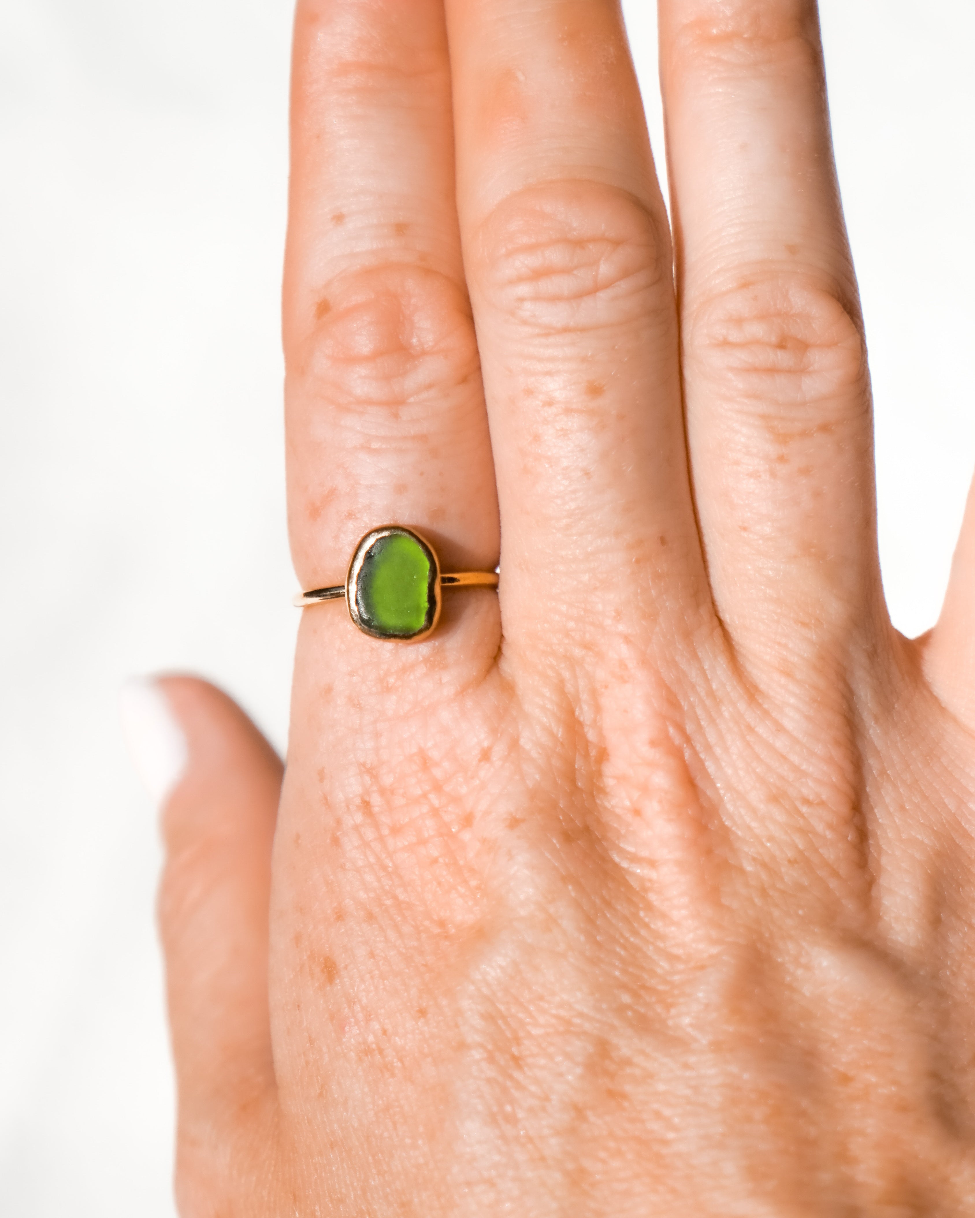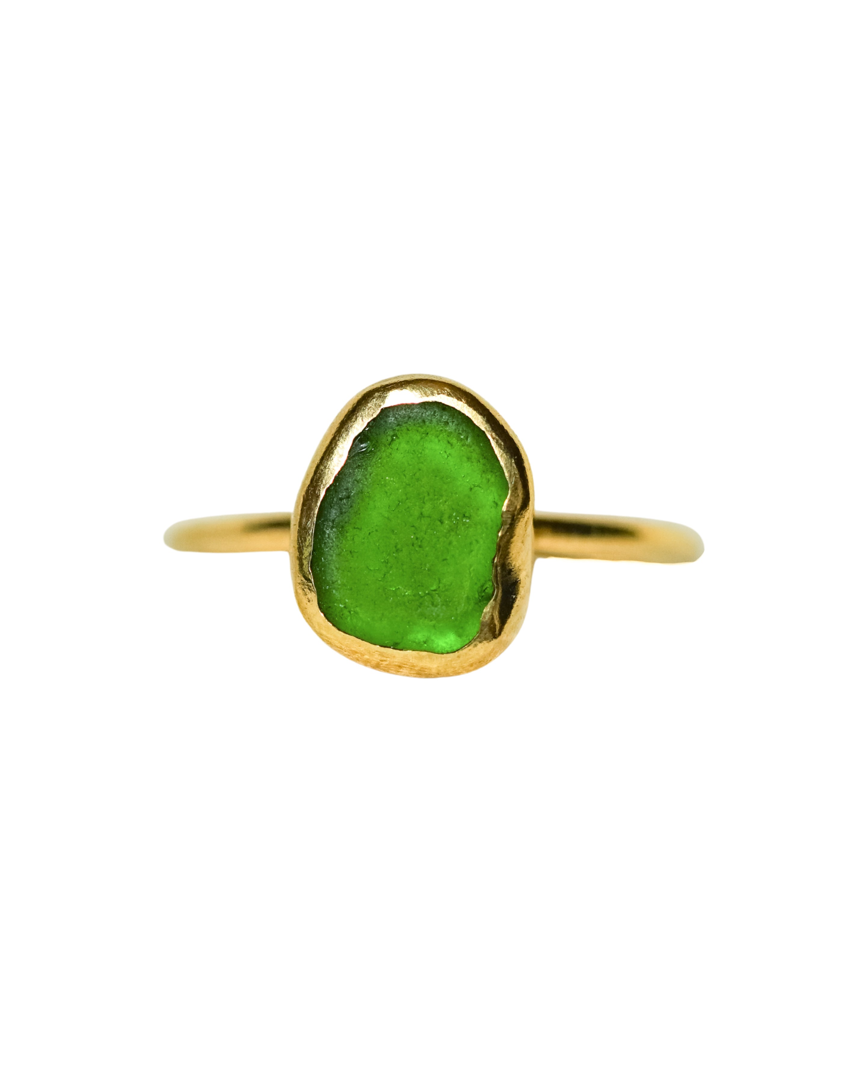 Green Sea Glass, Gold Vermeil - Size N 1/2