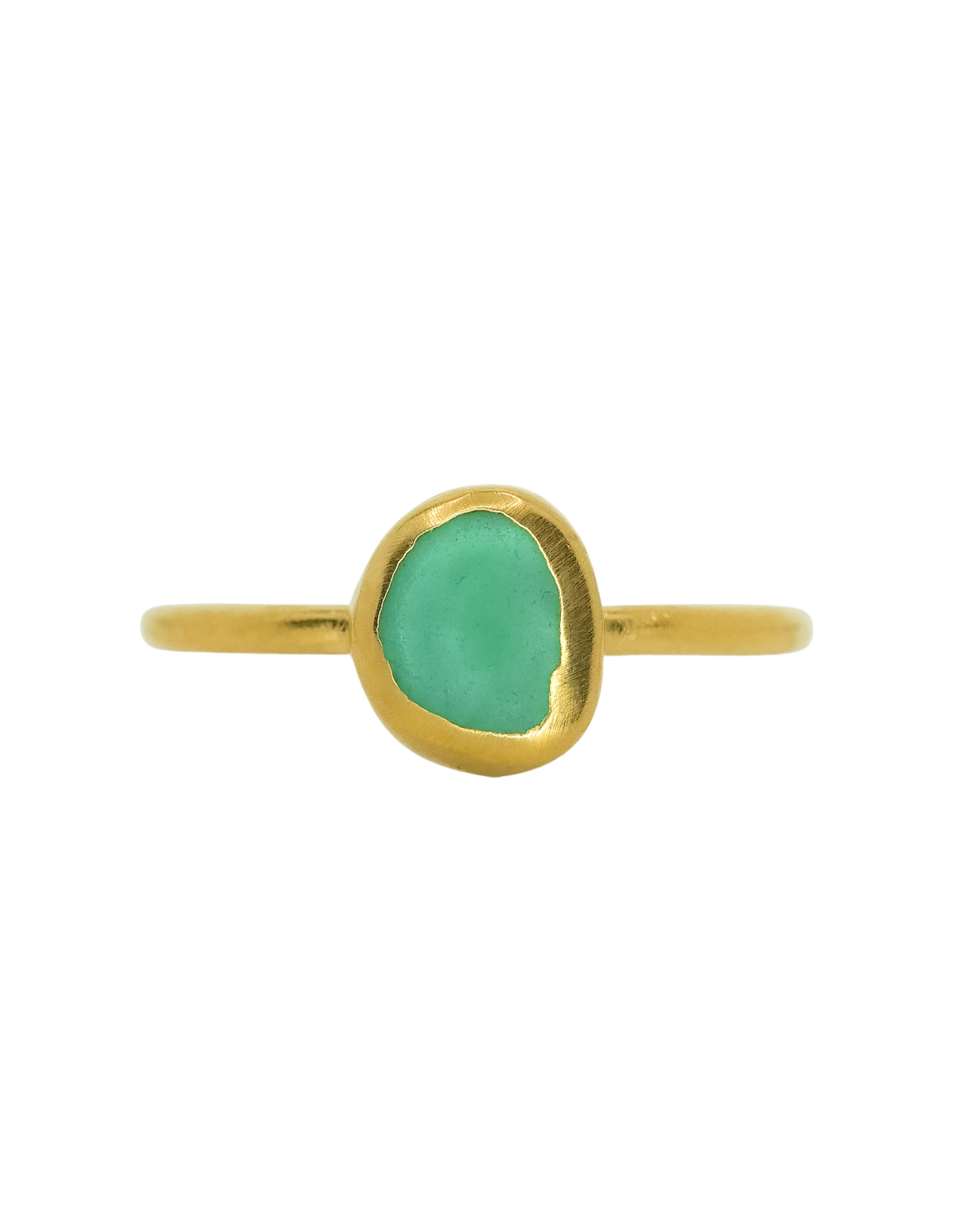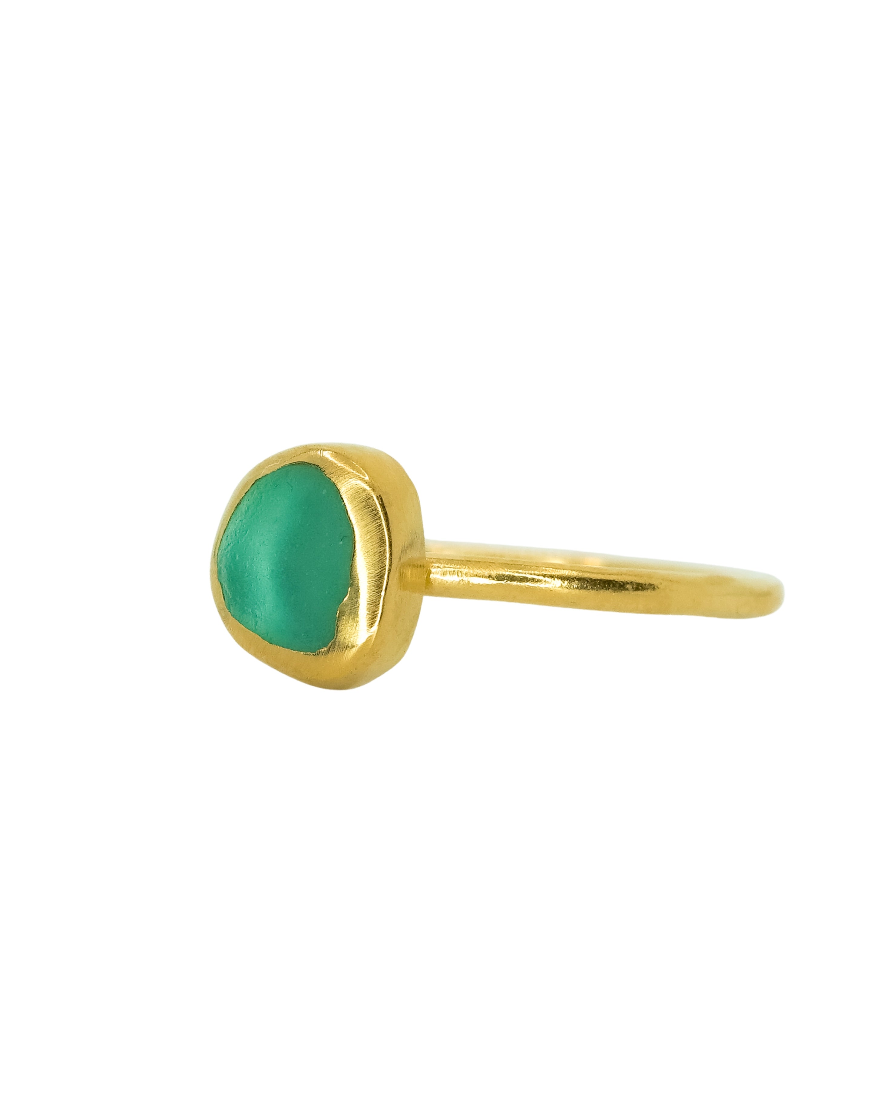 Green Sea Glass Ring - Handmade from 925 Sterling Silver plated with a 10 micron thick and hard layer of 24K (Gold Vermeil)