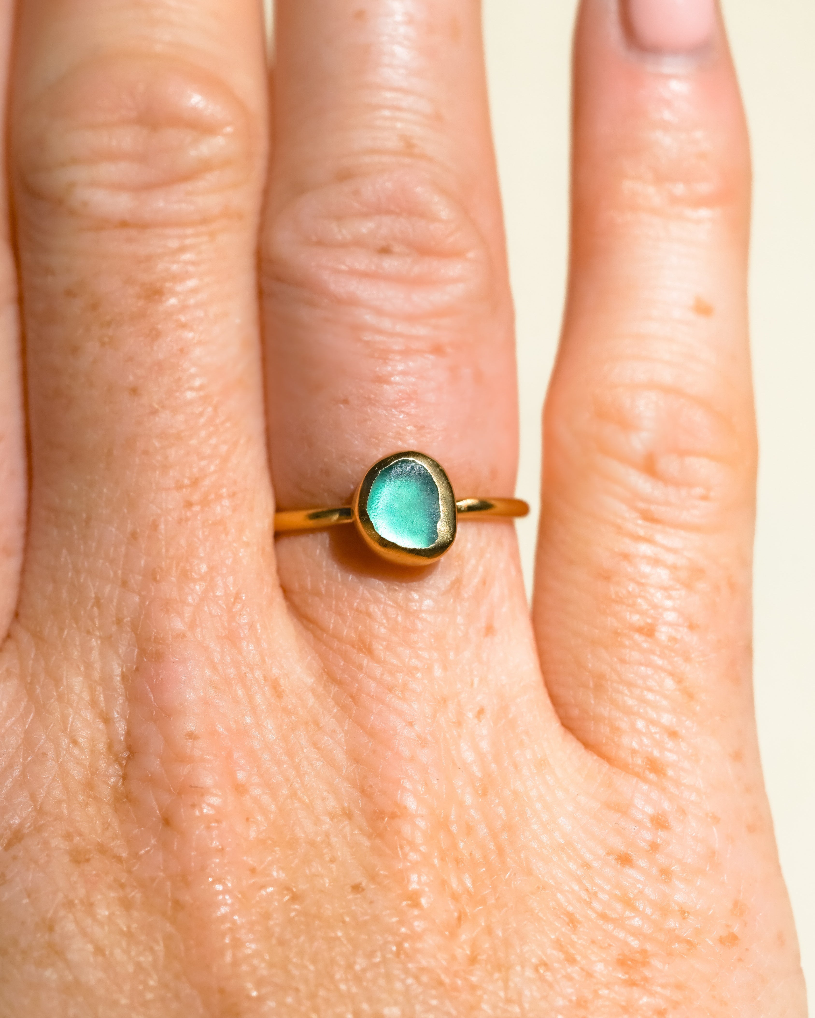 Sea Glass Jewellery (Open Back Designs) - Our open back sea glass pieces are made with an open setting to really show the true colour of the glass. This design also makes them safe to wear in water, allowing the natural beauty of the glass to shine through.