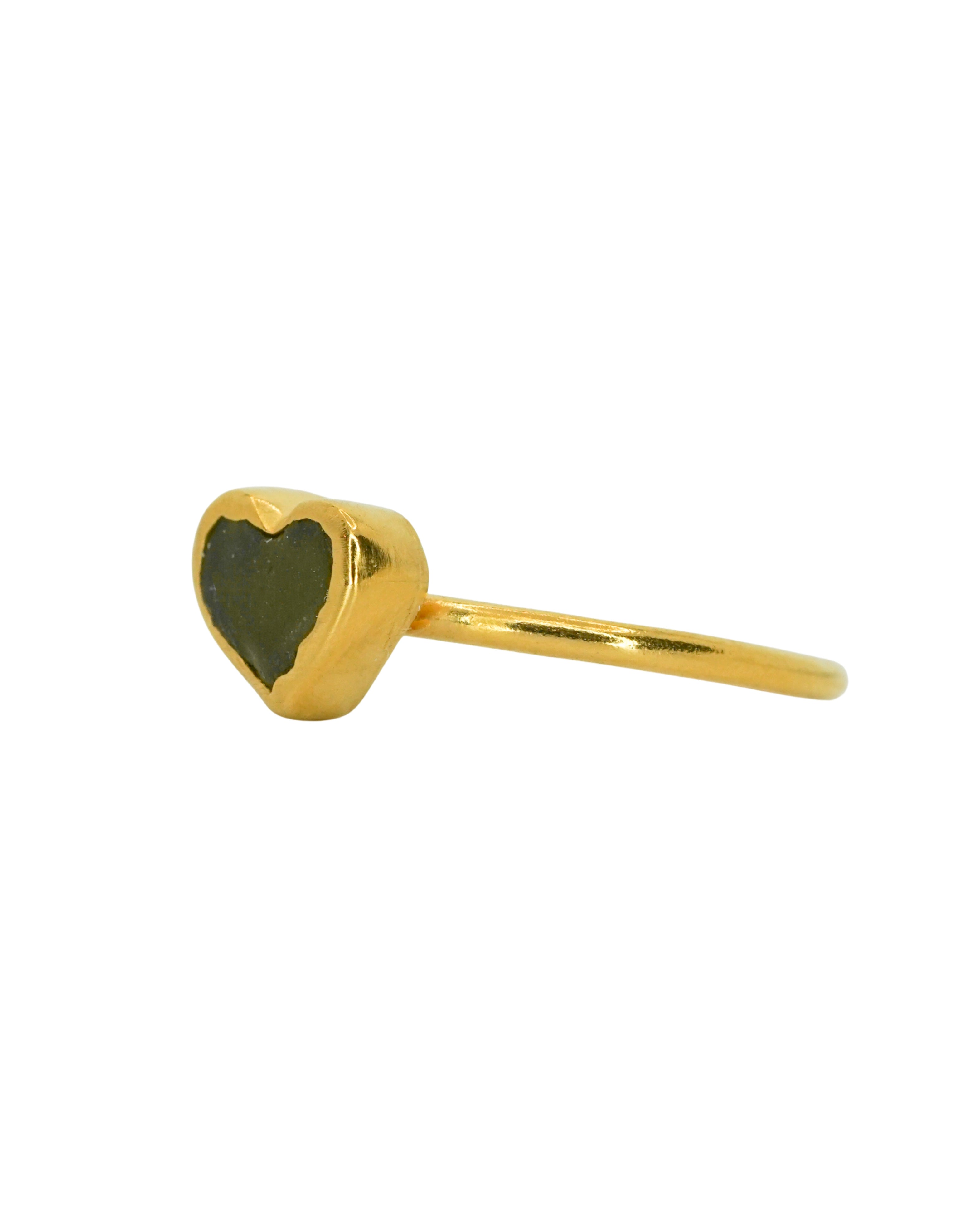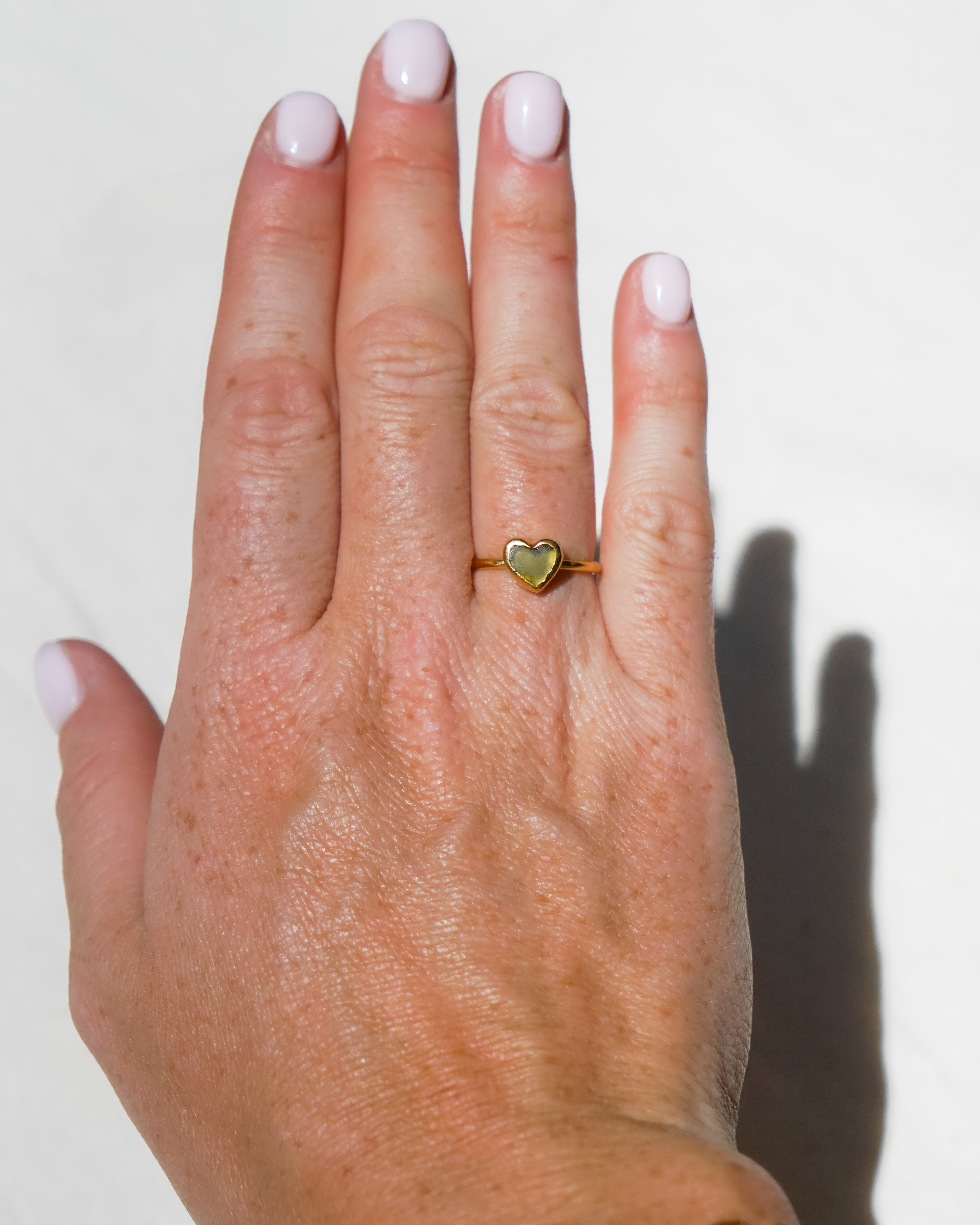Green Sea Glass Heart, Gold Vermeil - Size N