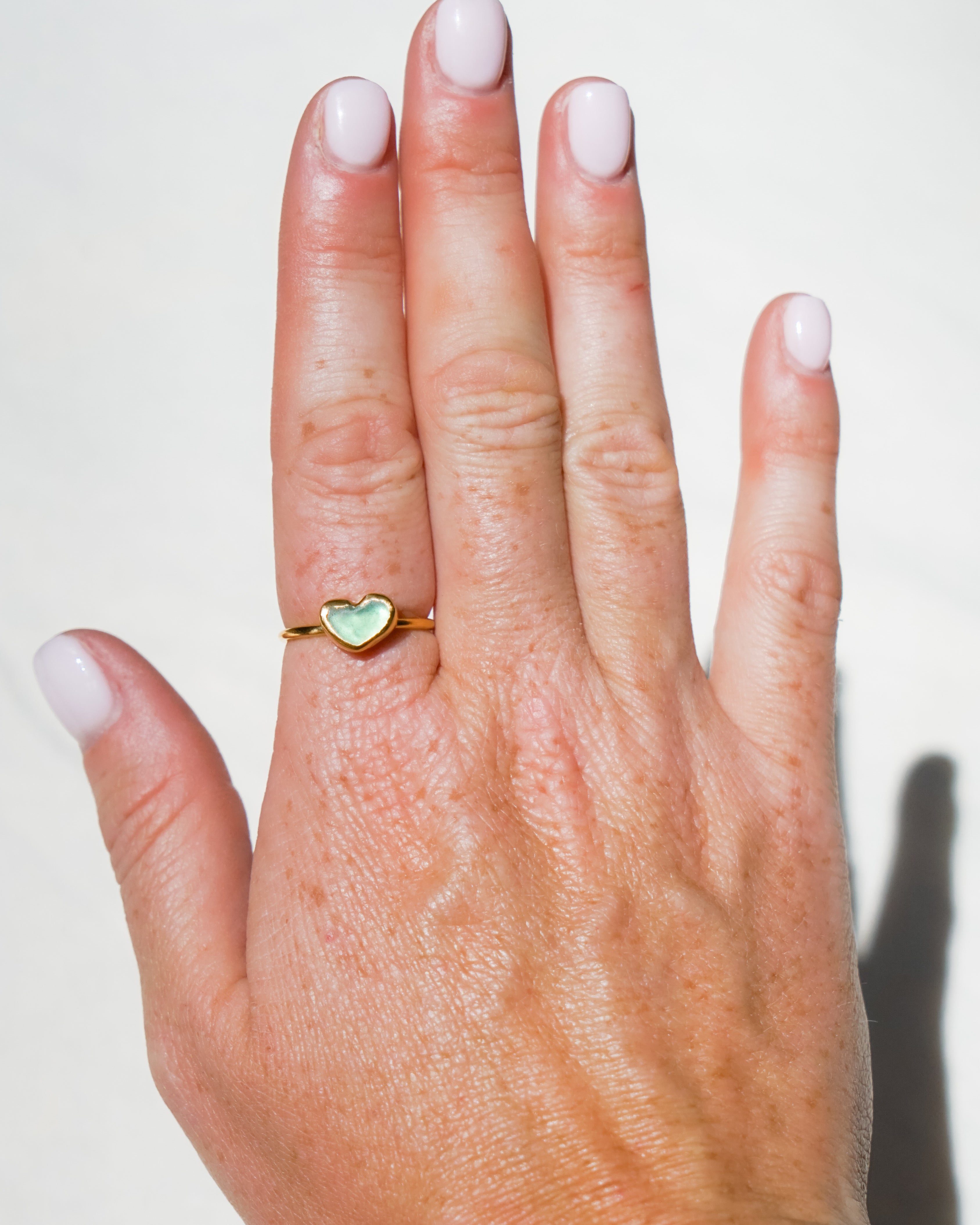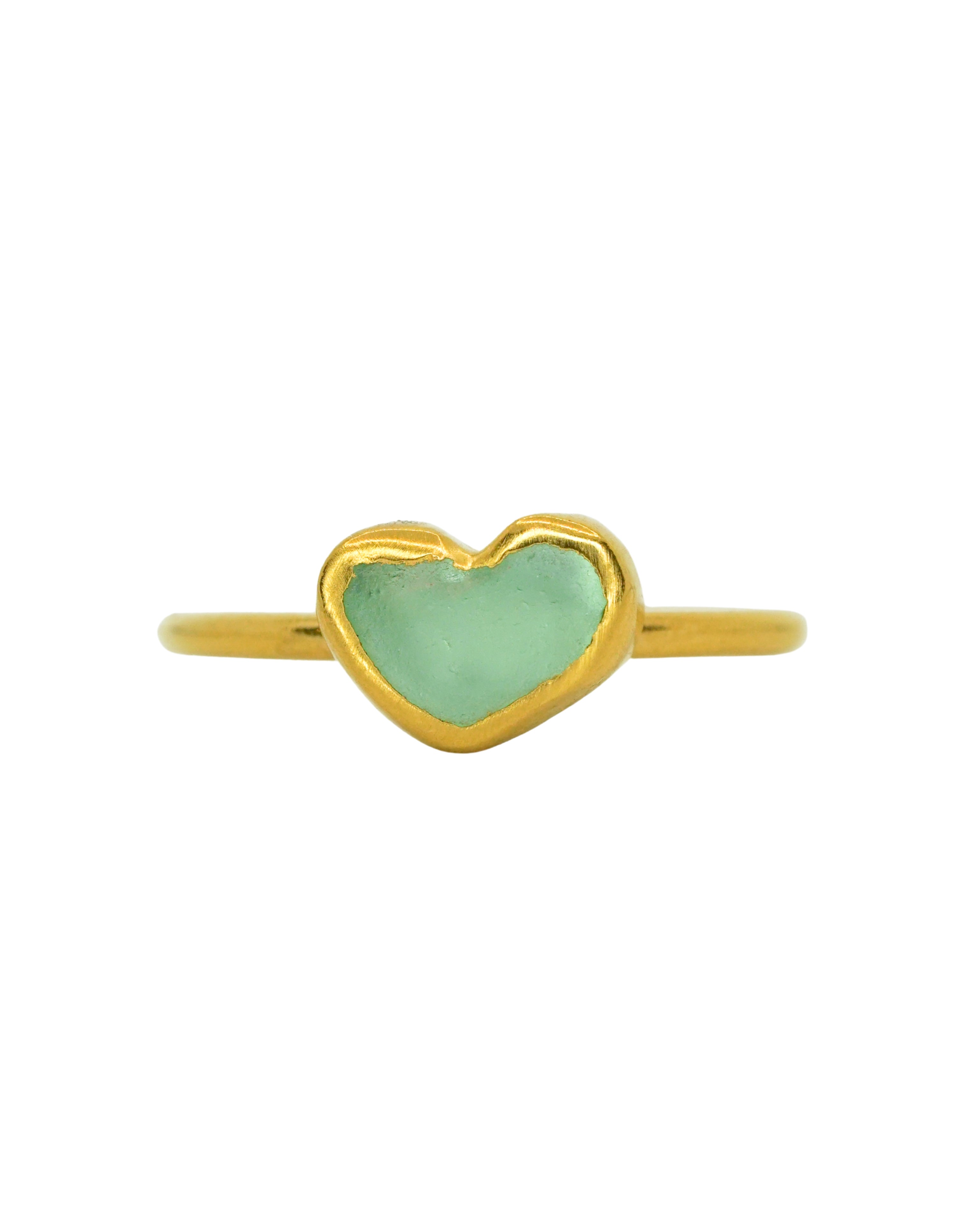 Green Sea Glass Heart, Gold Vermeil - Size O