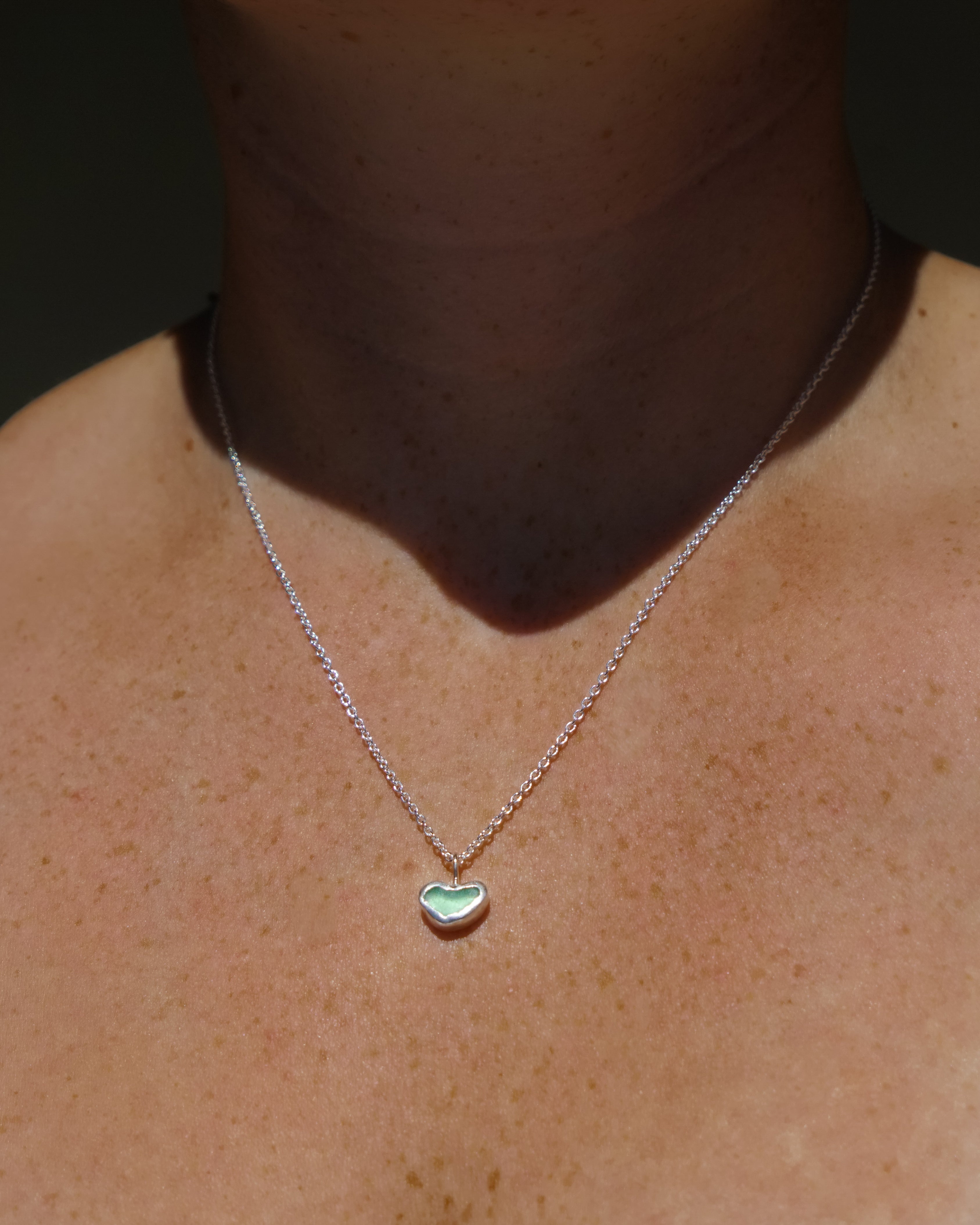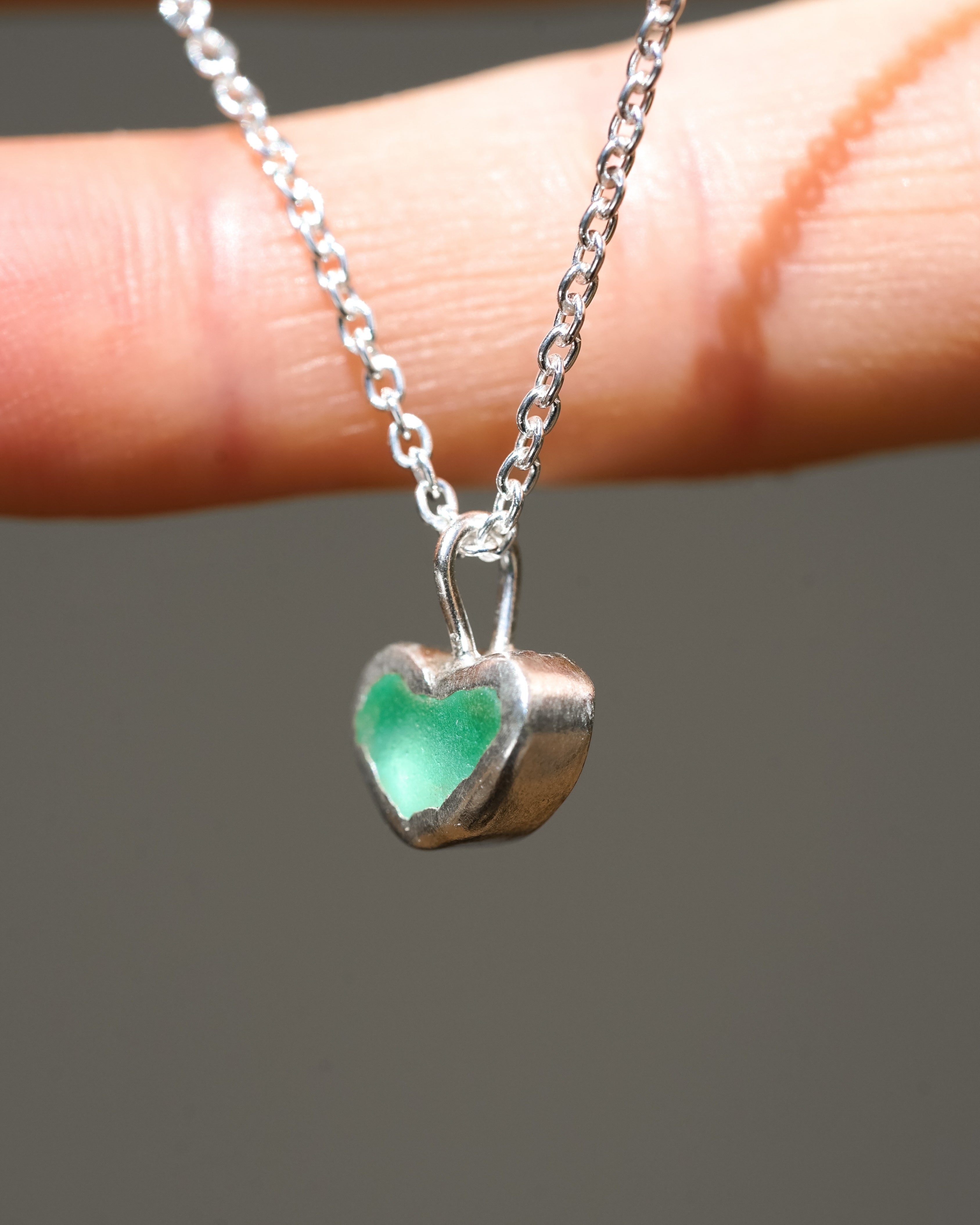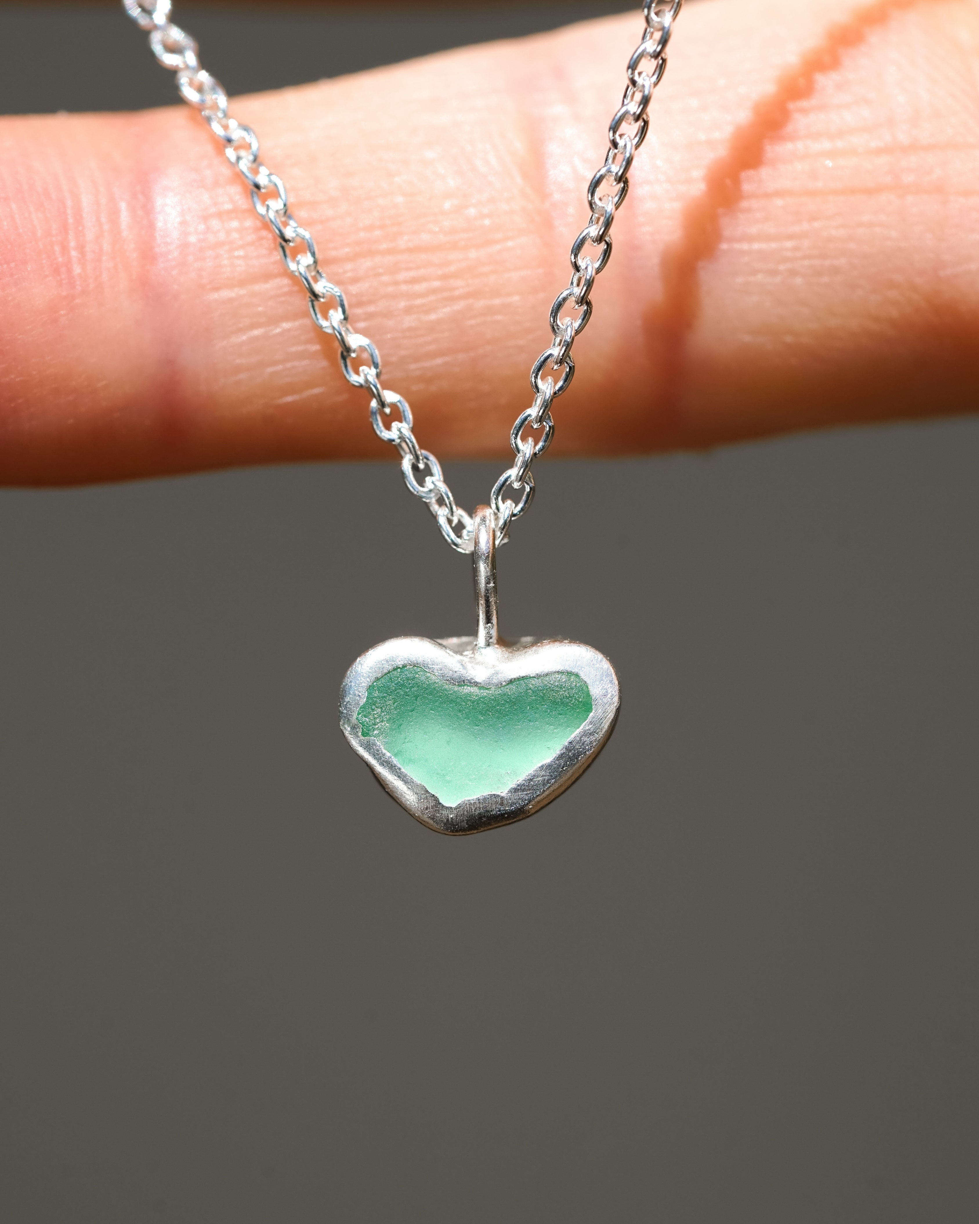 The sweetest little sea glass heart, perfect for your everyday wear 🤍 Each piece of sea glass has been washed and tumbled in the ocean giving them a smooth matte look