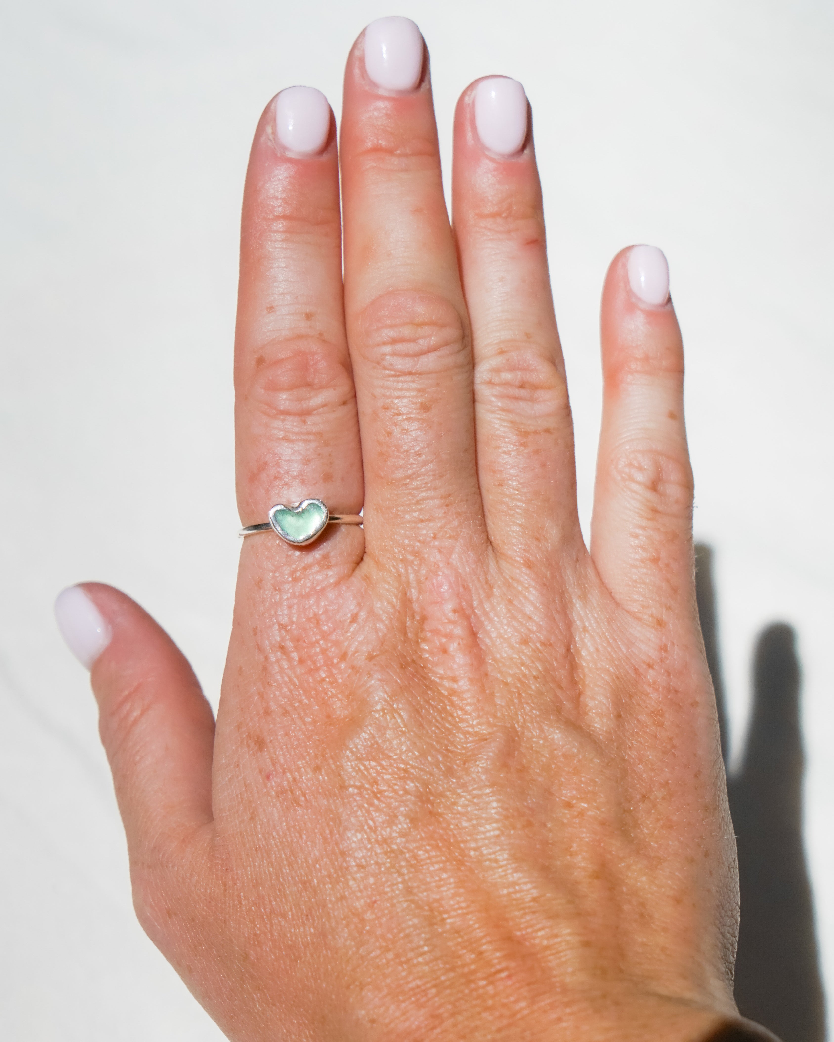 Sea Glass Heart Ring - Handmade from 925 Sterling Silver