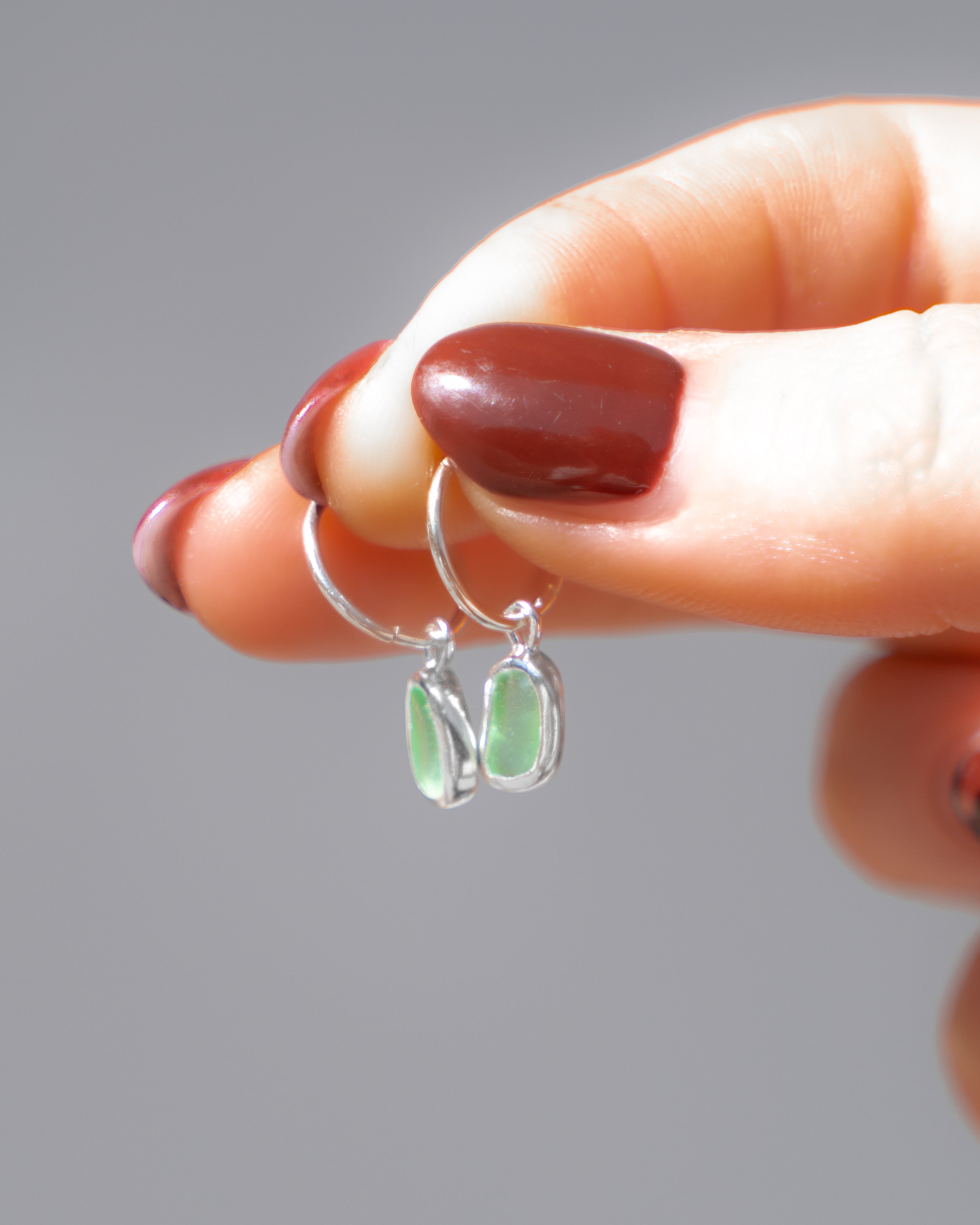 Each piece of sea glass jewellery is naturally shaped by the ocean and carefully set by hand. Every piece of glass has its own unique shape, tone and texture, making each design truly one of a kind.