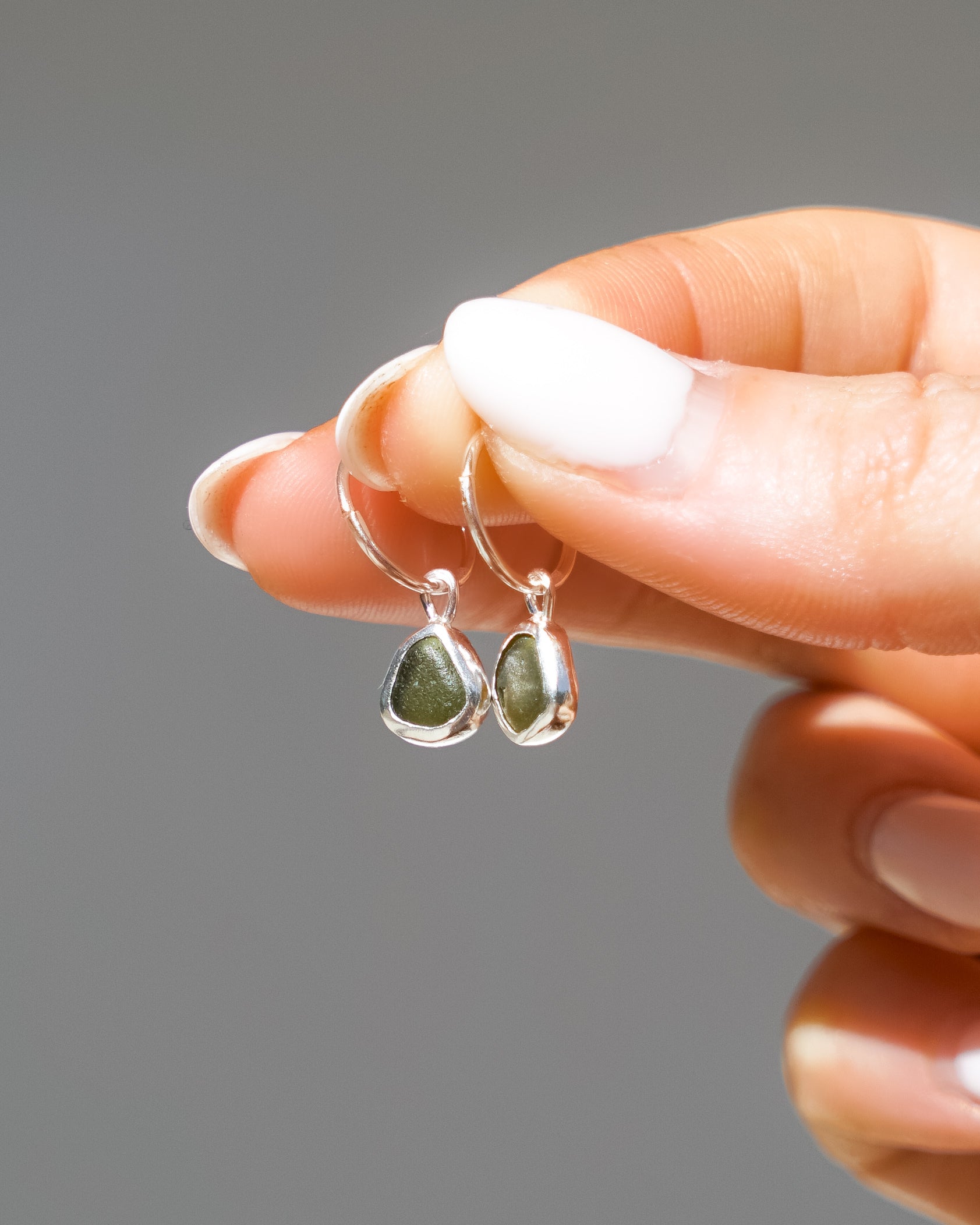 Green Sea Glass Hoops - Handmade from 925 sterling silver
