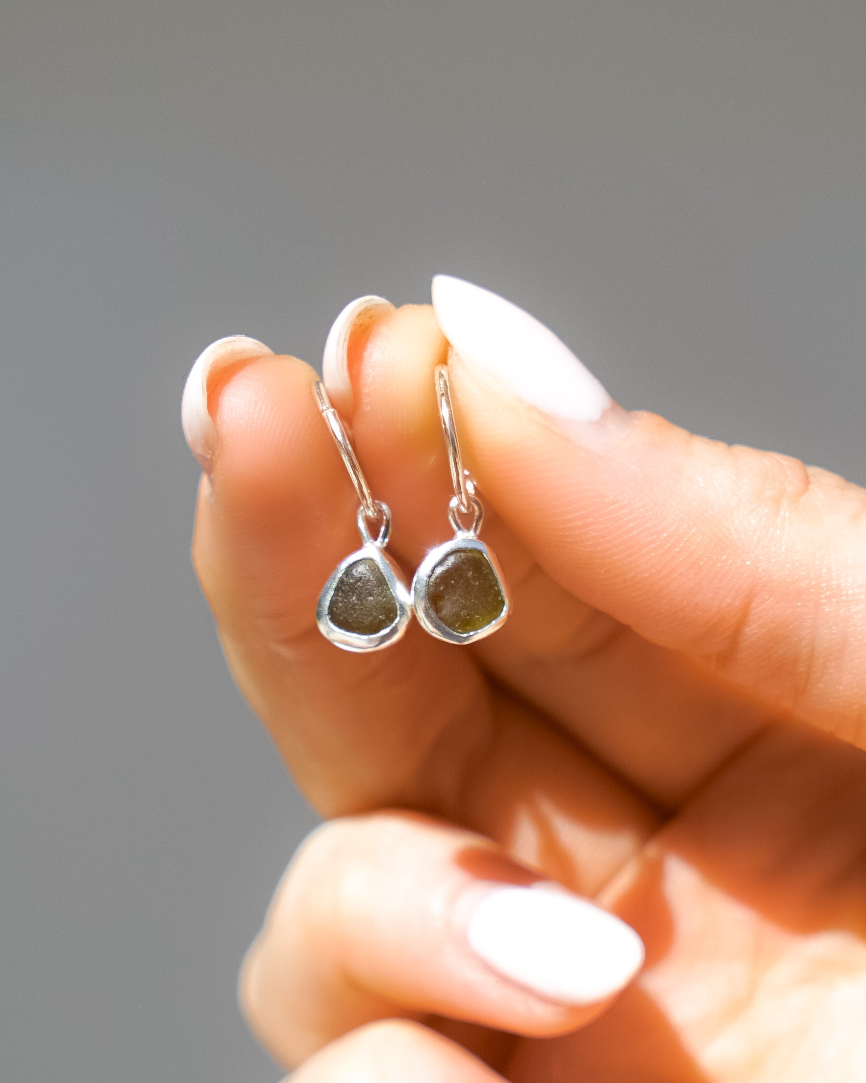 Sea Glass Jewellery (Closed Back Designs) - Closed back sea glass pieces should be kept out of water whenever possible. As the glass is transparent, moisture may affect the colouring due to the silver underneath, mainly the lighter shades. To help preserve their beauty, we recommend removing them before showering or swimming.
