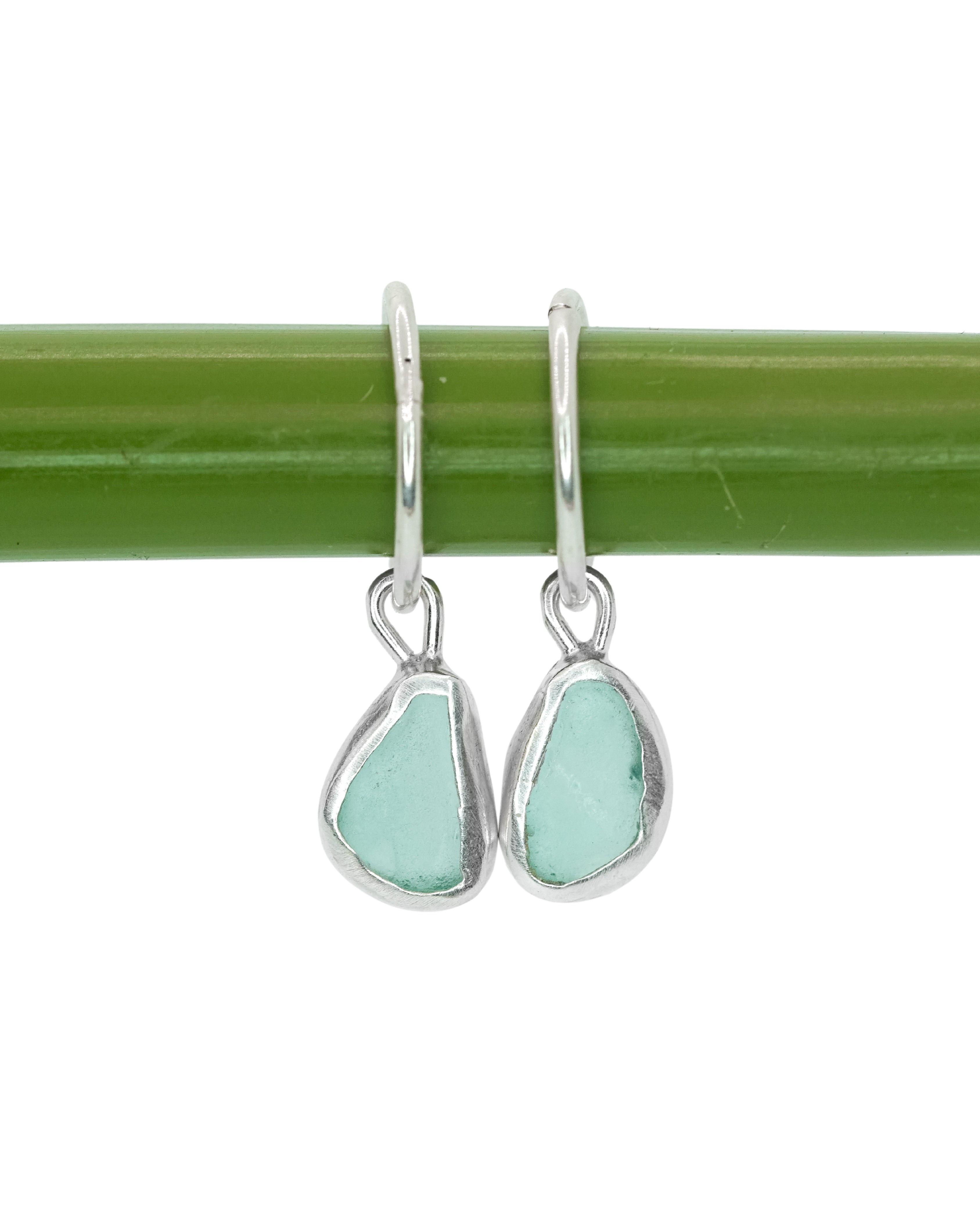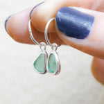 Green Sea Glass Hoops - Handmade from 925 sterling silver
