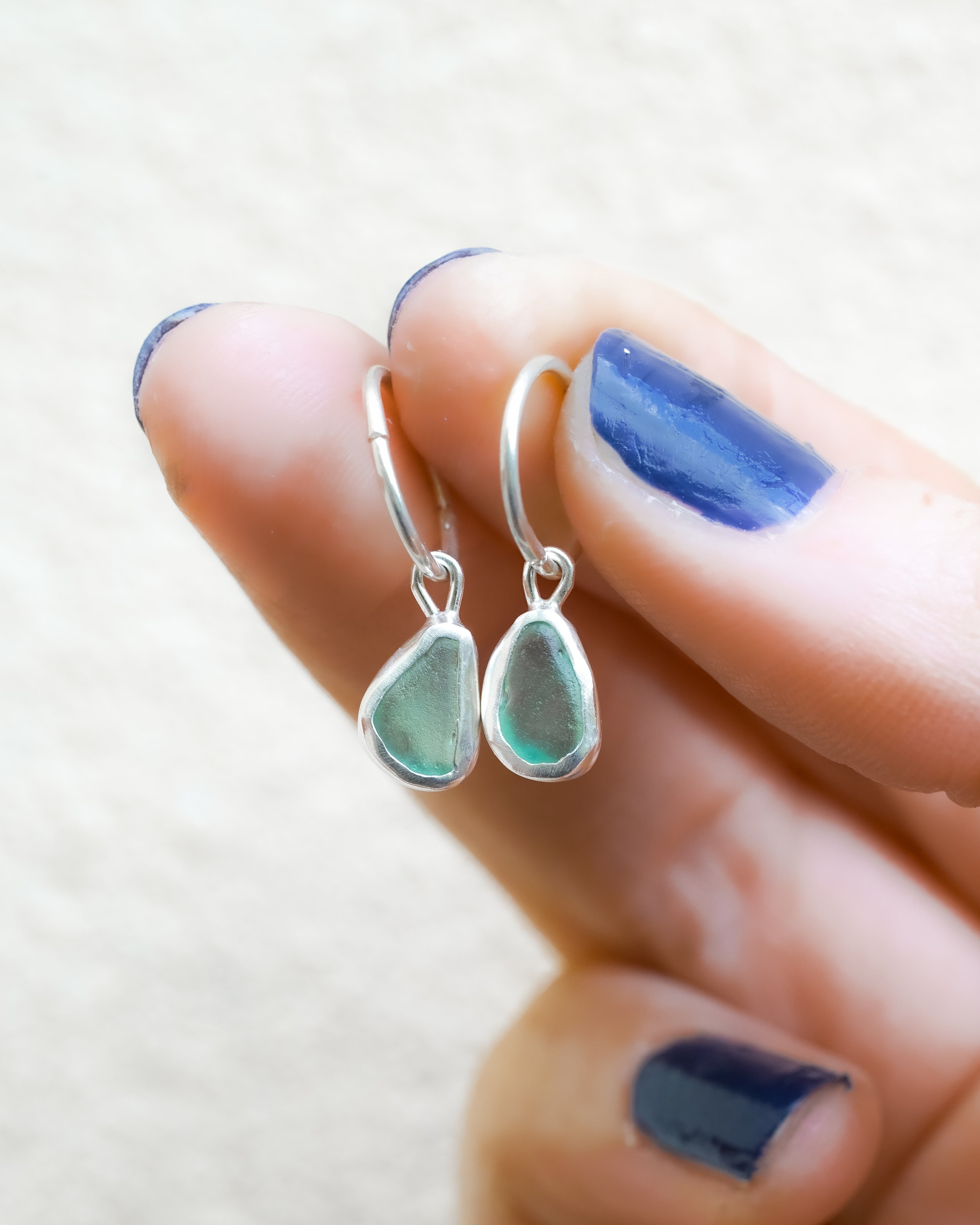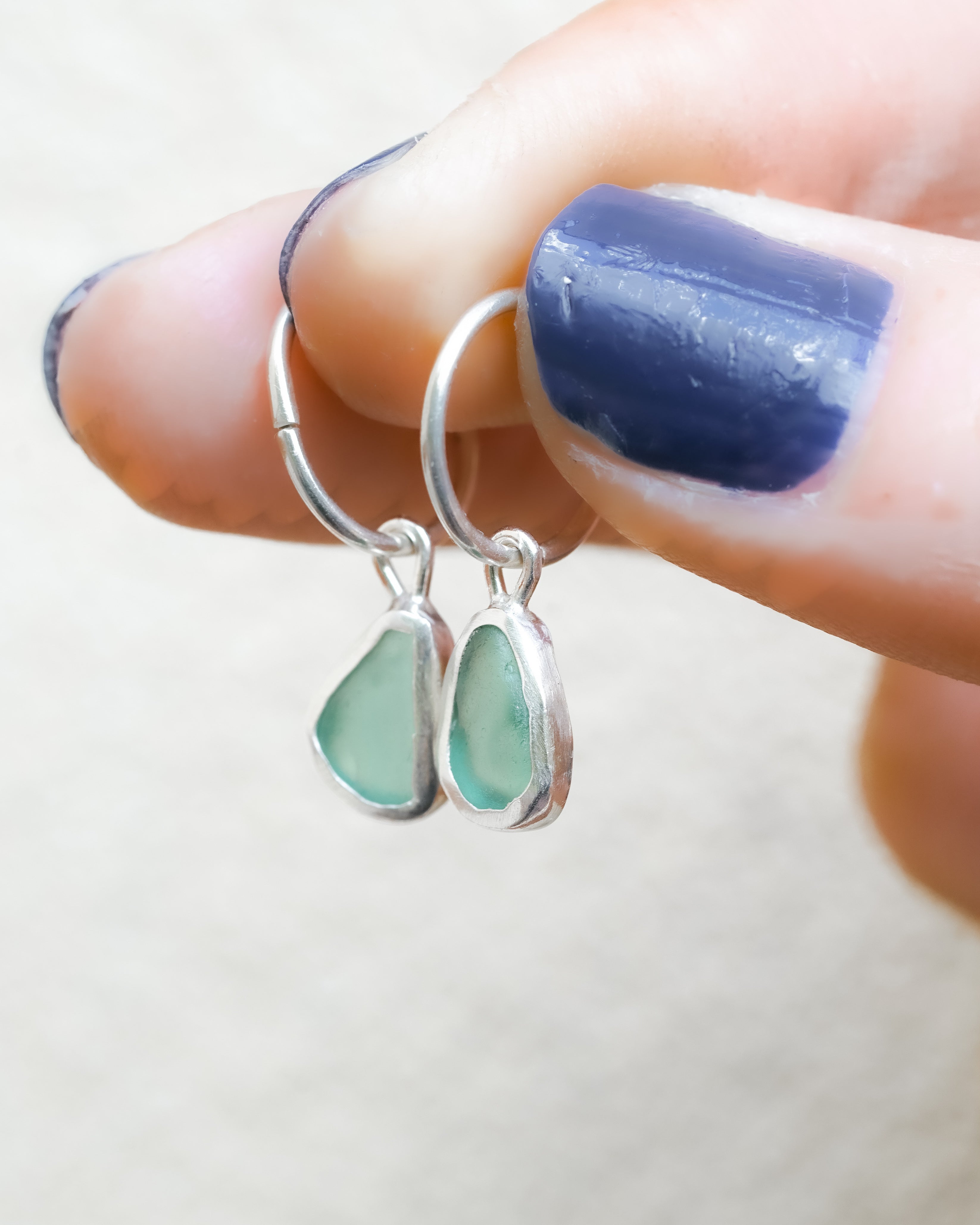 Sea Glass Jewellery (Closed Back Designs) - Closed back sea glass pieces should be kept out of water whenever possible. As the glass is transparent, moisture may affect the colouring due to the silver underneath, mainly the lighter shades. To help preserve their beauty, we recommend removing them before showering or swimming.
