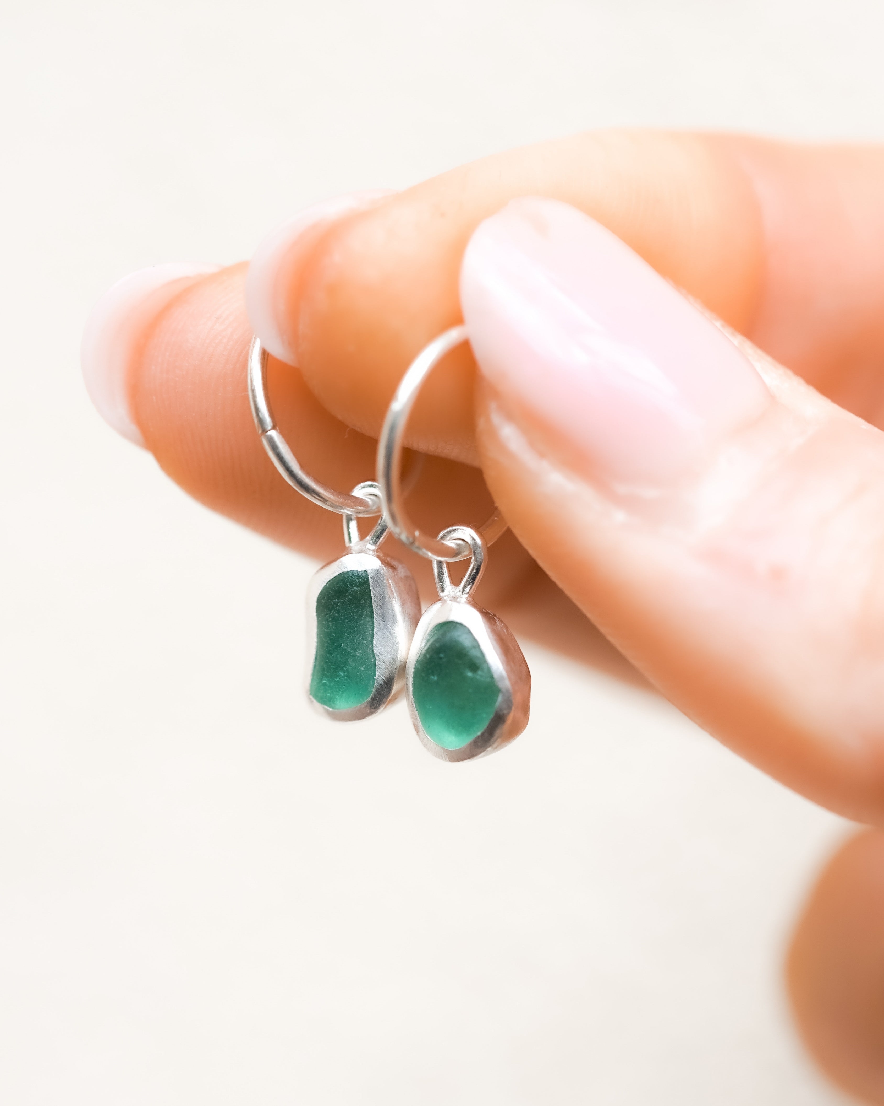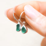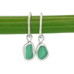 Green Sea Glass Hoops - Handmade from 925 sterling silver