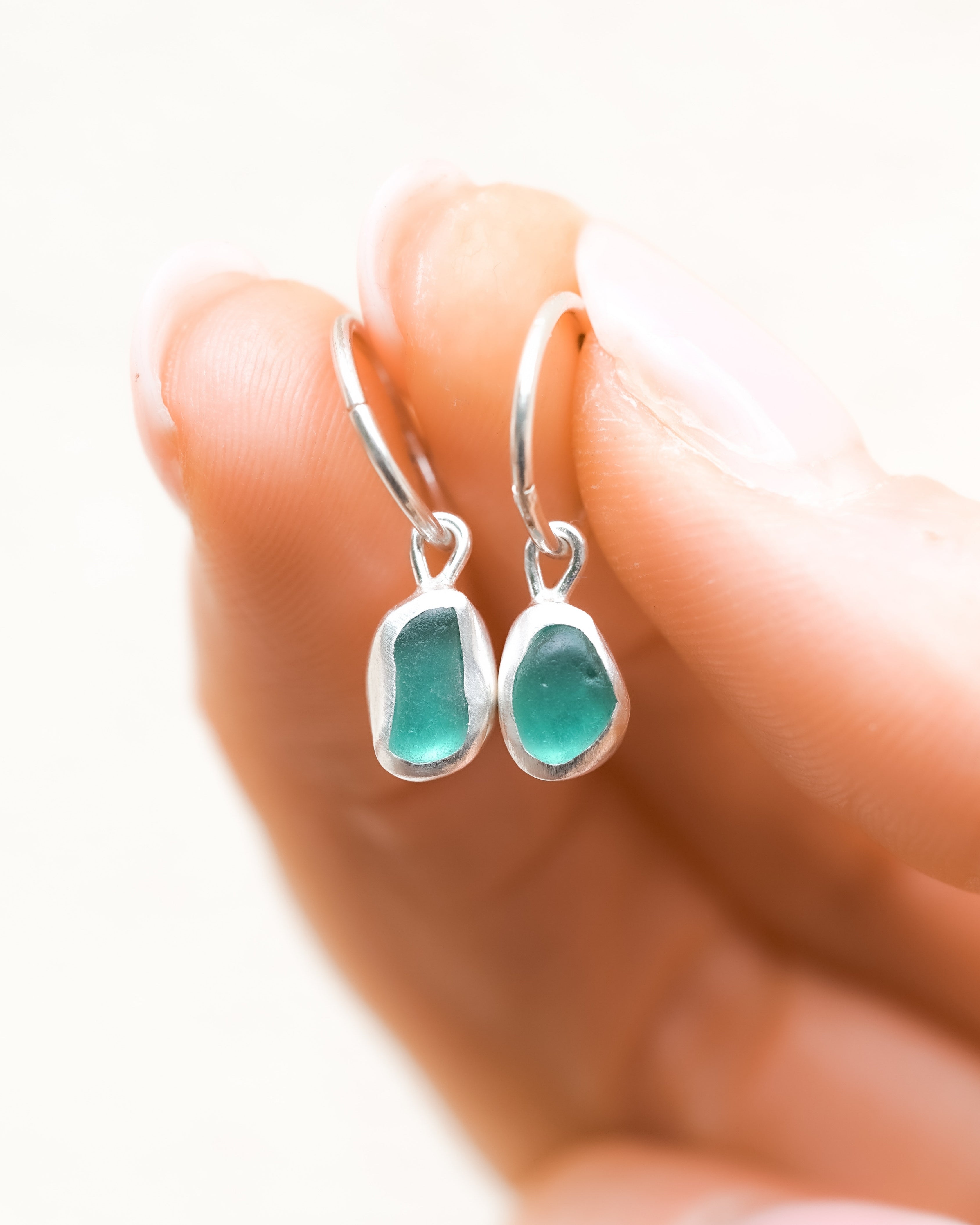 Sea Glass Jewellery (Closed Back Designs) - Closed back sea glass pieces should be kept out of water whenever possible. As the glass is transparent, moisture may affect the colouring due to the silver underneath, mainly the lighter shades. To help preserve their beauty, we recommend removing them before showering or swimming.